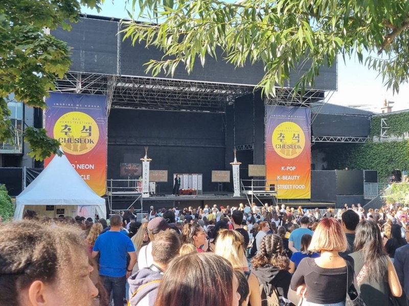 Anlässlich des koreanischen Erntedankfests "Chuseok" veranstaltete das Korea Kulturzentrum am 1. Oktober ein Musik- und Kulturfest in der Arena Wien. Diese Feierlichkeit diente gleichzeitig als Würdigung der Eröffnung des Korea Kulturzentrums im Frühjahr des Jahres. Das Fest versprach ein vielfältiges Kulturprogramm und Auftritte von Künstler:innen aus Korea, die ein spannendes Bühnenprogramm für das Publikum vorbereiteten. Auch Botschafter Sang Wook Ham besuchte die Veranstaltung und sprach einige Worte auf der Bühne, um den Besucher:innen für das Kommen zu danken und ihnen ein schönes Chuseok zu wünschen.