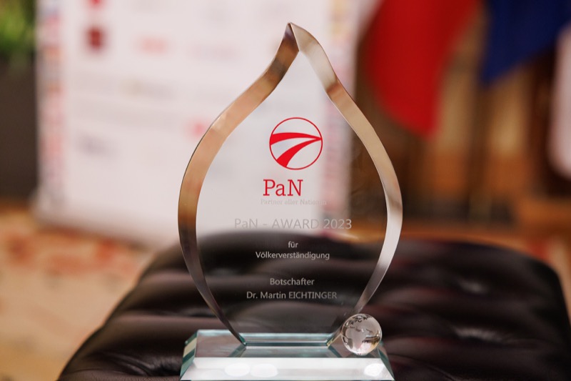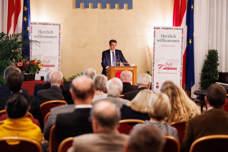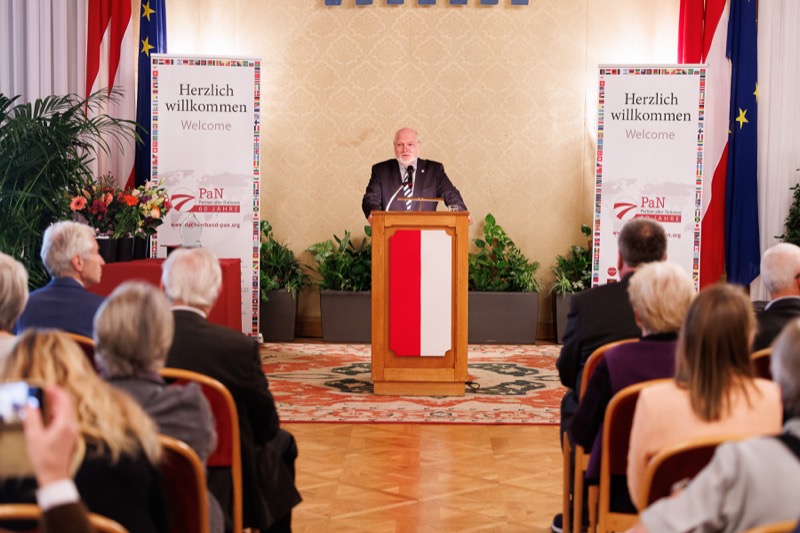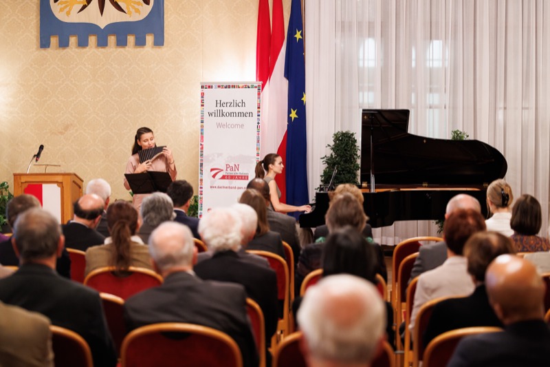 Der Dachverband aller österreichisch-ausländischen Gesellschaften – PaN lud am 3. November 2023 zu »PaN-Gesellschaften vor den Vorhang« in den Wappensaal des Wiener Rathauses. Dabei wurden die Preisträgerinnen der PaN-Projektunterstützungspreise 2023 – Austrian-Indonesian Society, Österreichisch-Rumänische Gesellschaft, Österreich–Südafrika (SADOCC – Dokumentationszentrum für das Südliche Afrika) – vorgestellt, die ihre ausgezeichneten Projekte präsentierten. In Vertretung des Wiener Bürgermeisters begrüßte die Vorstände der bilateralen Freundschaftsgesellschaften LAbg. GR Mag. Michael Aichinger. Die Keynote »Wie wirkt die österreichische Entwicklungszusammenarbeit?« hielt Dr. Gunther Schall, der Leiter der Presseabteilung der Austrian Development Agency (ADA). PaN-Präsident Univ.-Prof. Dr. Hermann Mückler würdige die Preisträgerinnen und dankte allen Bewerberinnen. Andreea Chira (Panflöte) und Mitra Kotte (Klavier) gestalteten den Abend musikalisch, der mit einem Buffetempfang auf Einladung der Stadt Wien ausklang.