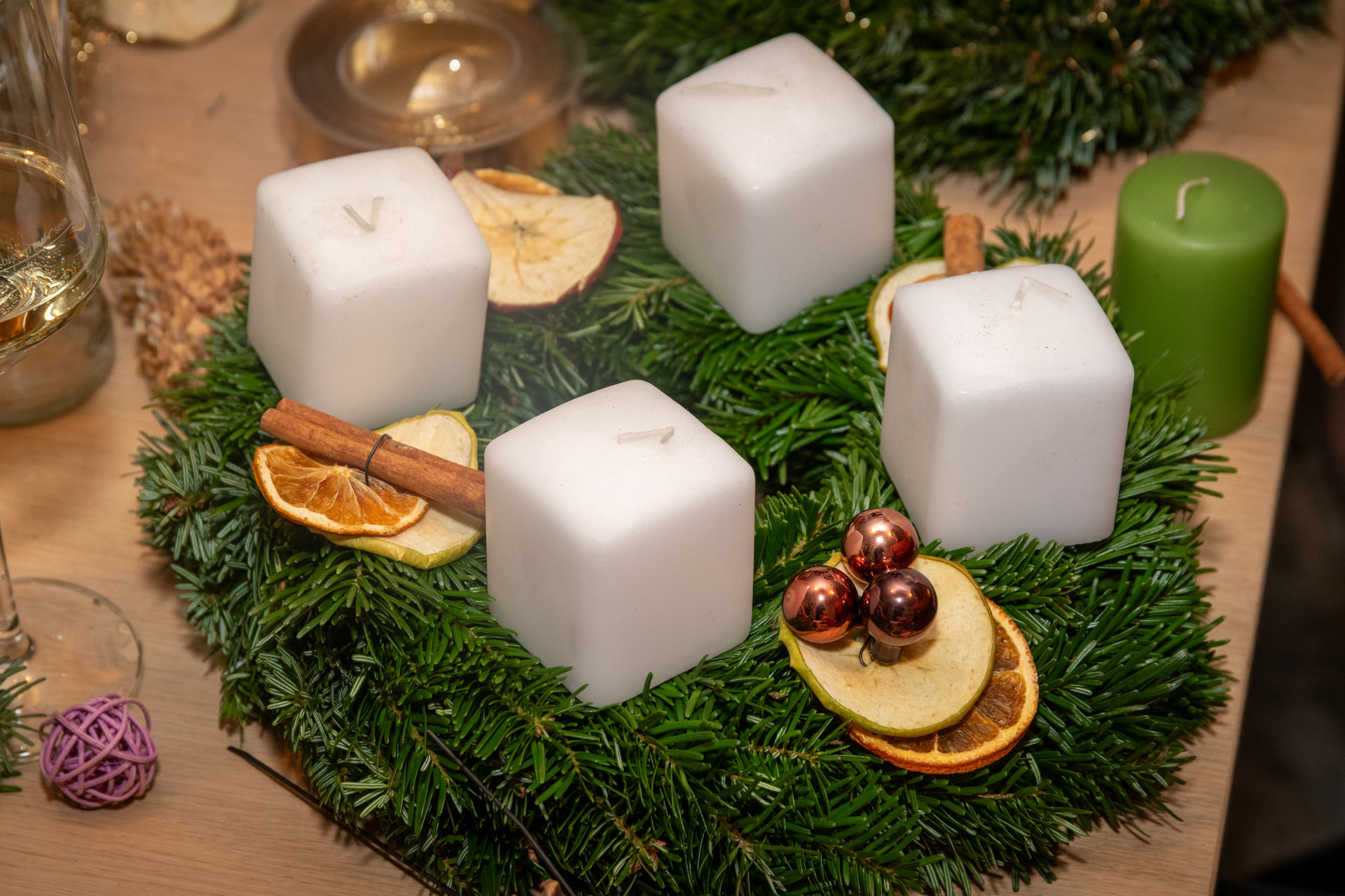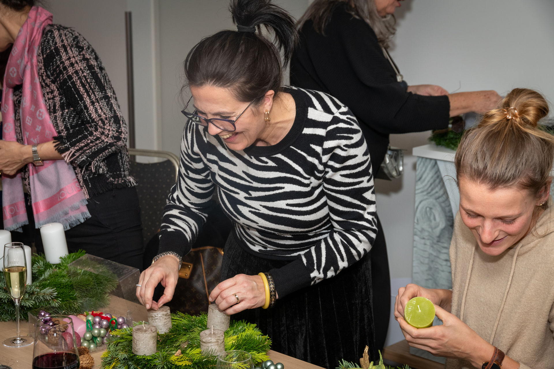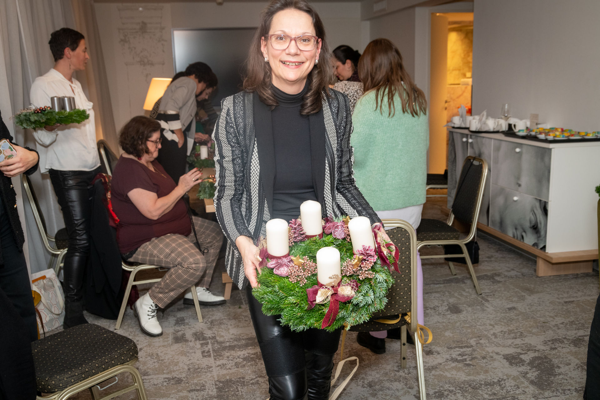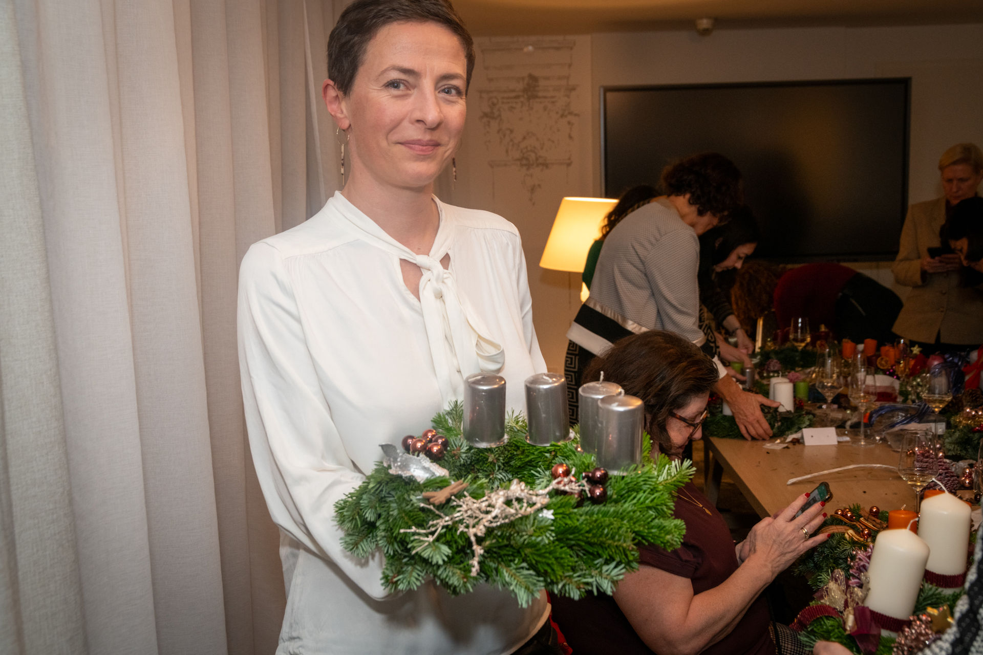 Danach wurden die Damen in zwei kleinere Gruppe aufgeteilt. Während die eine mit der Kuratorin des Museums Gugging, Elisabeth Mühlbacher, eine exklusive NFT-Ausstellung im Hotel besuchte und alles über digitale Kunst erfuhr, zeigte sich die andere Gruppe beim Schmücken eines Adventkranzes sehr kreativ – danach wurden die Gruppen getauscht. Im Anschluss wurde die Runde mit Köstlichkeiten der hoteleigenen Küche verwöhnt und zum Abschluss gab es noch einen Drink an der Bar.