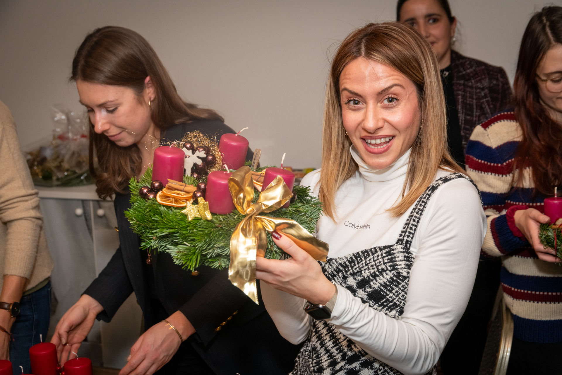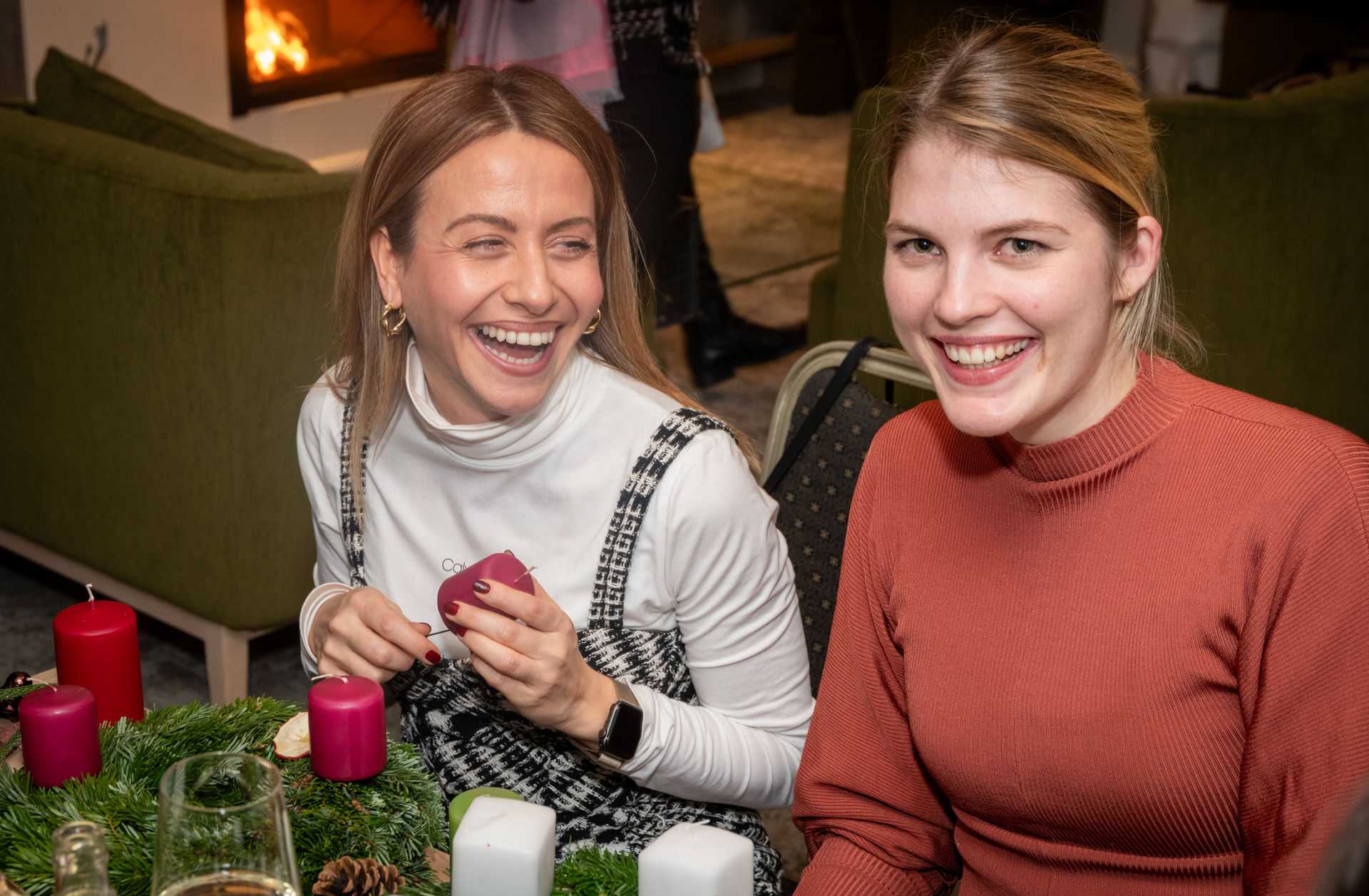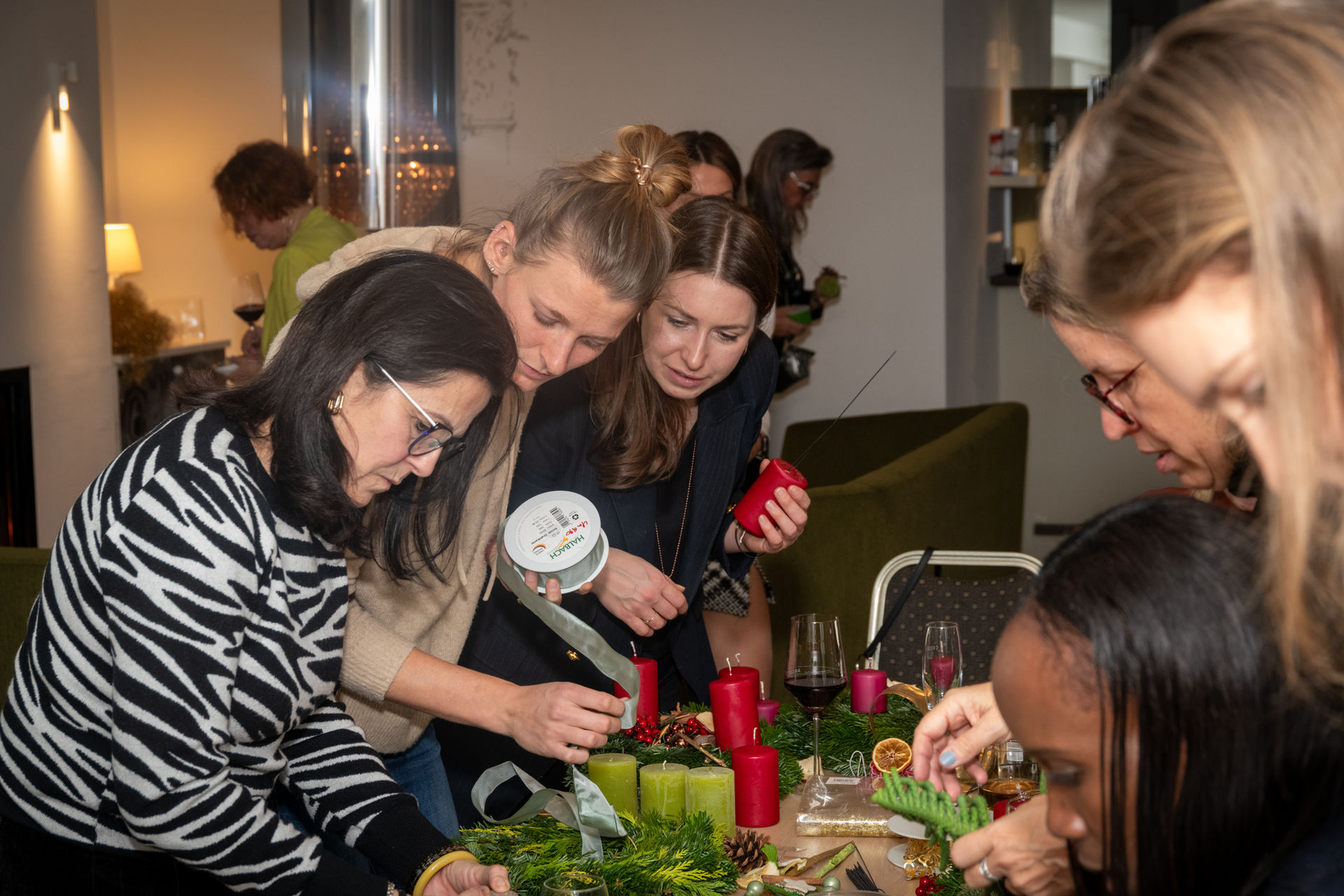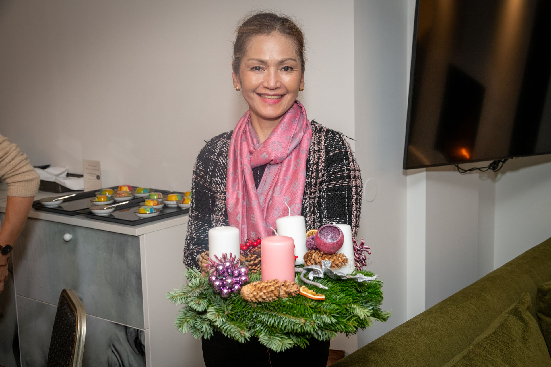 Danach wurden die Damen in zwei kleinere Gruppe aufgeteilt. Während die eine mit der Kuratorin des Museums Gugging, Elisabeth Mühlbacher, eine exklusive NFT-Ausstellung im Hotel besuchte und alles über digitale Kunst erfuhr, zeigte sich die andere Gruppe beim Schmücken eines Adventkranzes sehr kreativ – danach wurden die Gruppen getauscht. Im Anschluss wurde die Runde mit Köstlichkeiten der hoteleigenen Küche verwöhnt und zum Abschluss gab es noch einen Drink an der Bar.