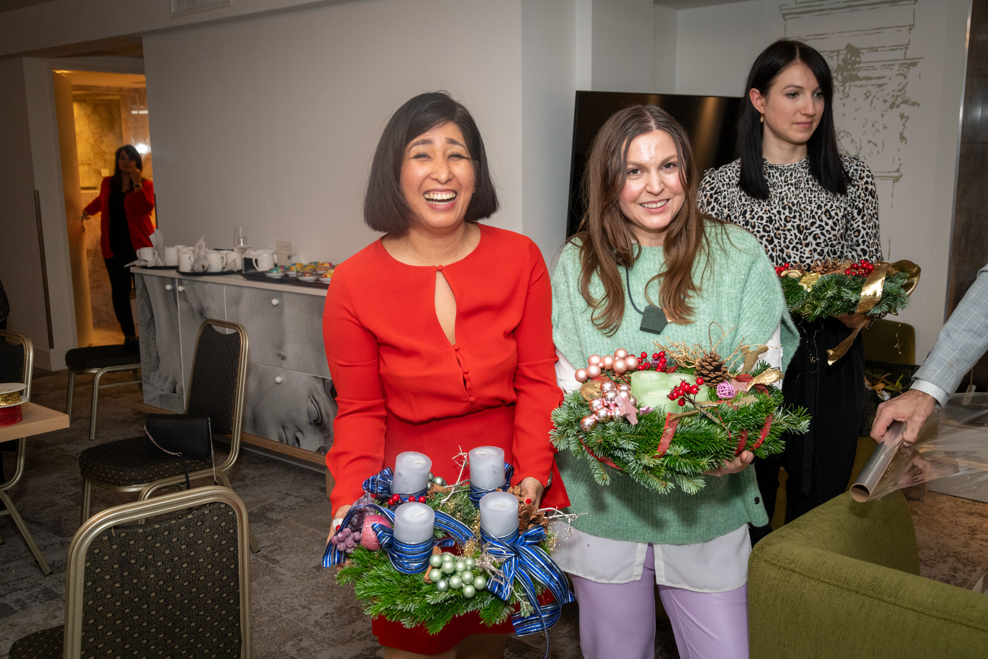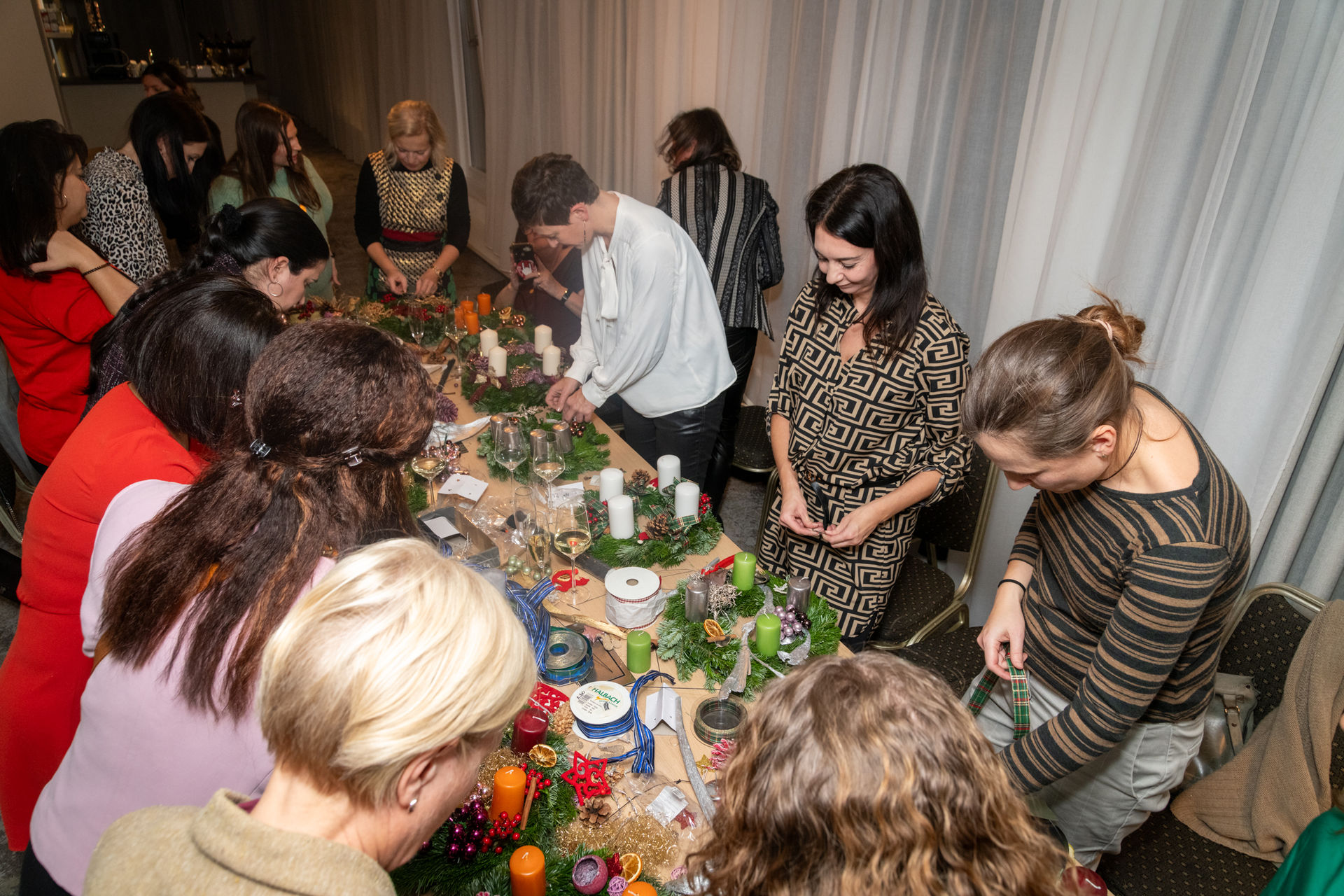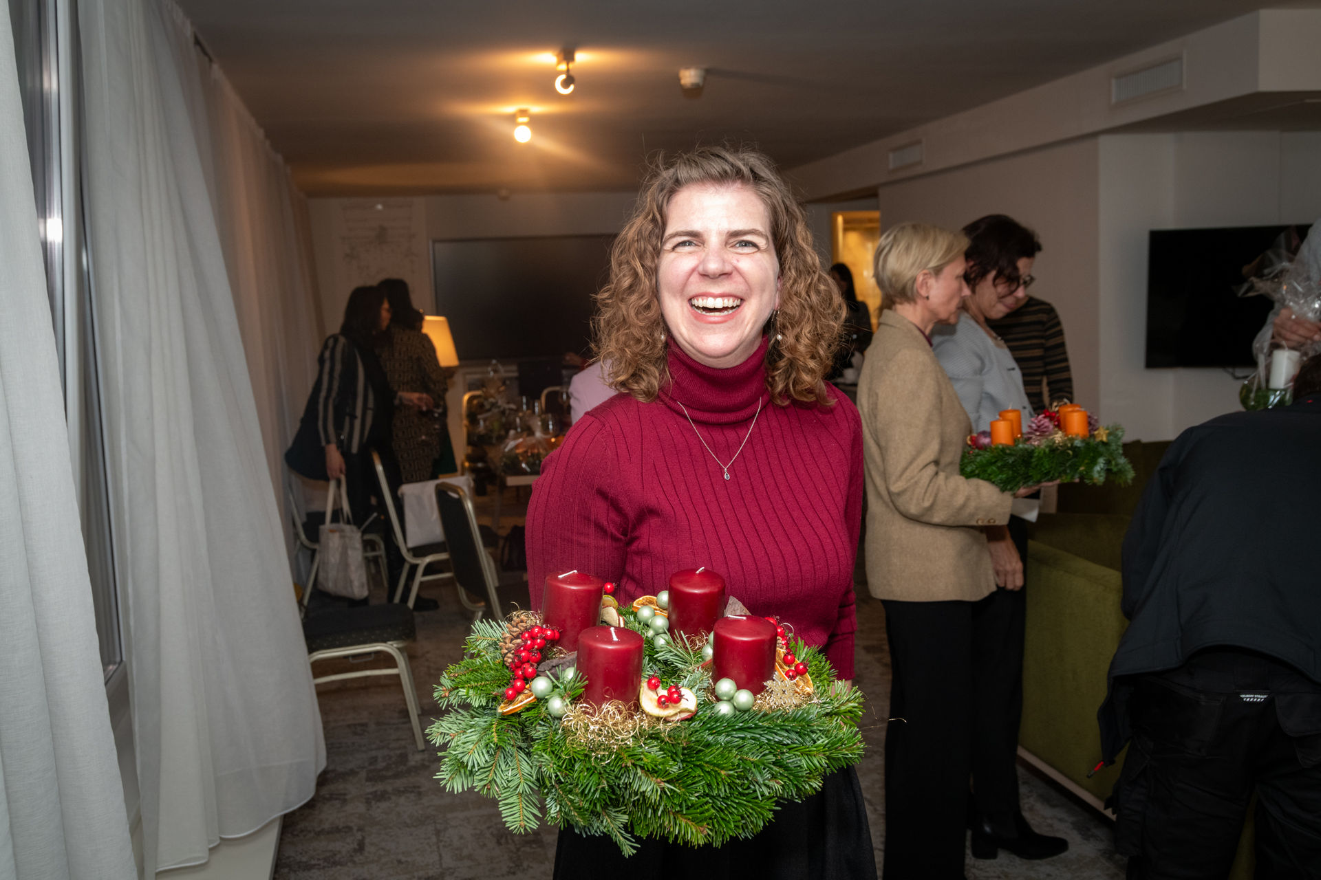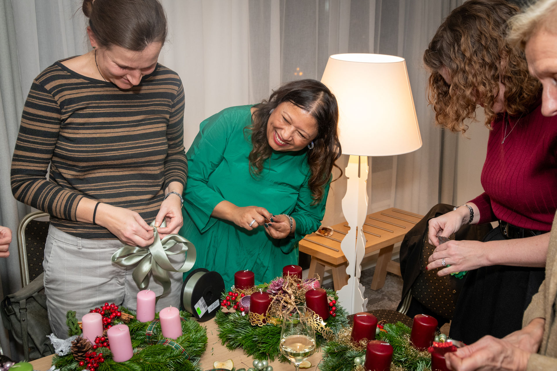 Danach wurden die Damen in zwei kleinere Gruppe aufgeteilt. Während die eine mit der Kuratorin des Museums Gugging, Elisabeth Mühlbacher, eine exklusive NFT-Ausstellung im Hotel besuchte und alles über digitale Kunst erfuhr, zeigte sich die andere Gruppe beim Schmücken eines Adventkranzes sehr kreativ – danach wurden die Gruppen getauscht. Im Anschluss wurde die Runde mit Köstlichkeiten der hoteleigenen Küche verwöhnt und zum Abschluss gab es noch einen Drink an der Bar.