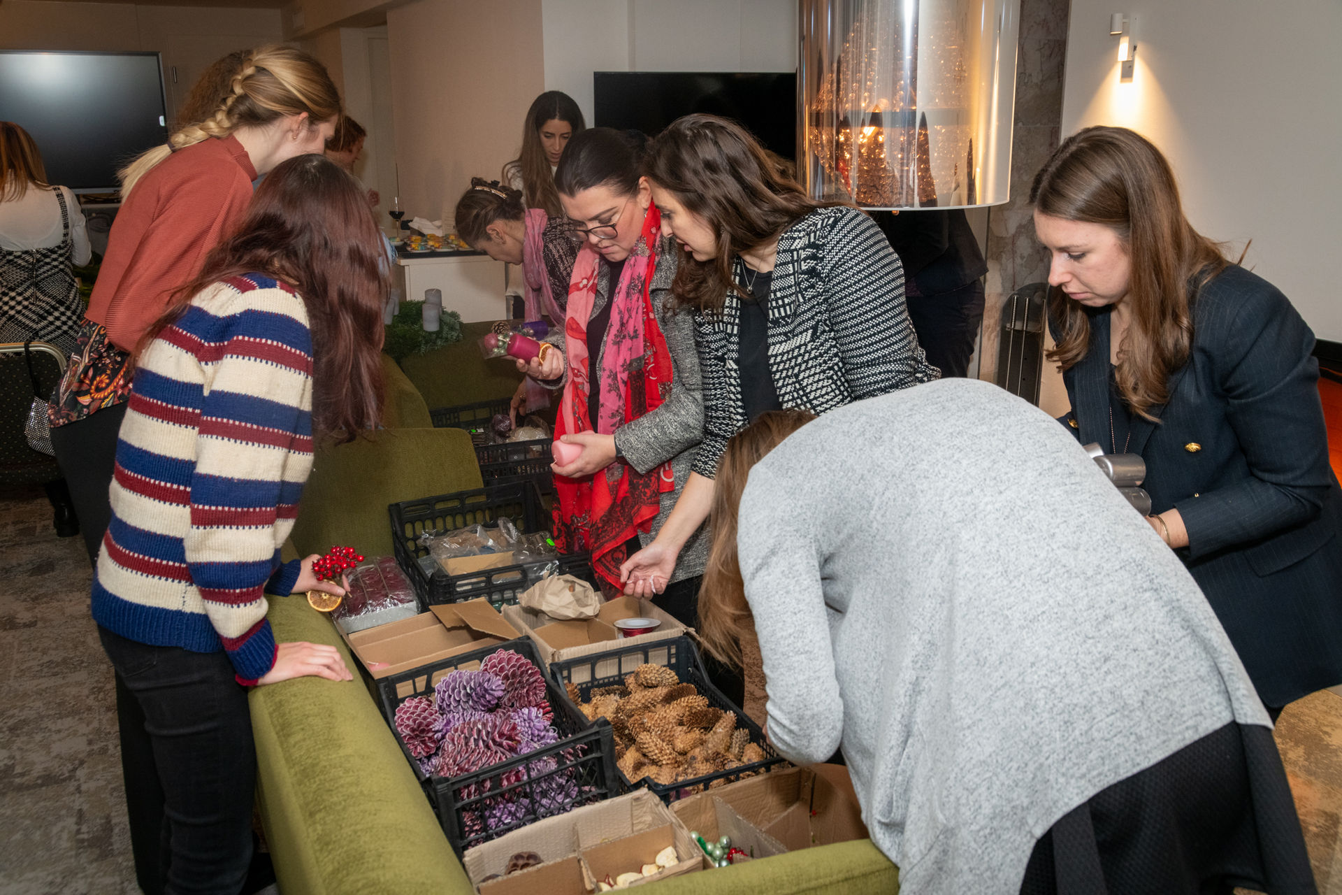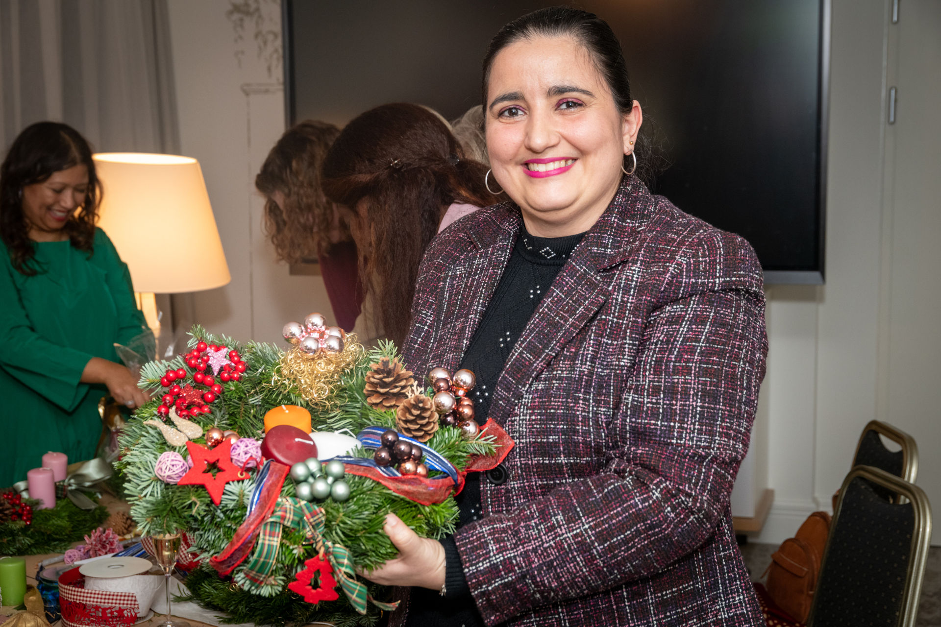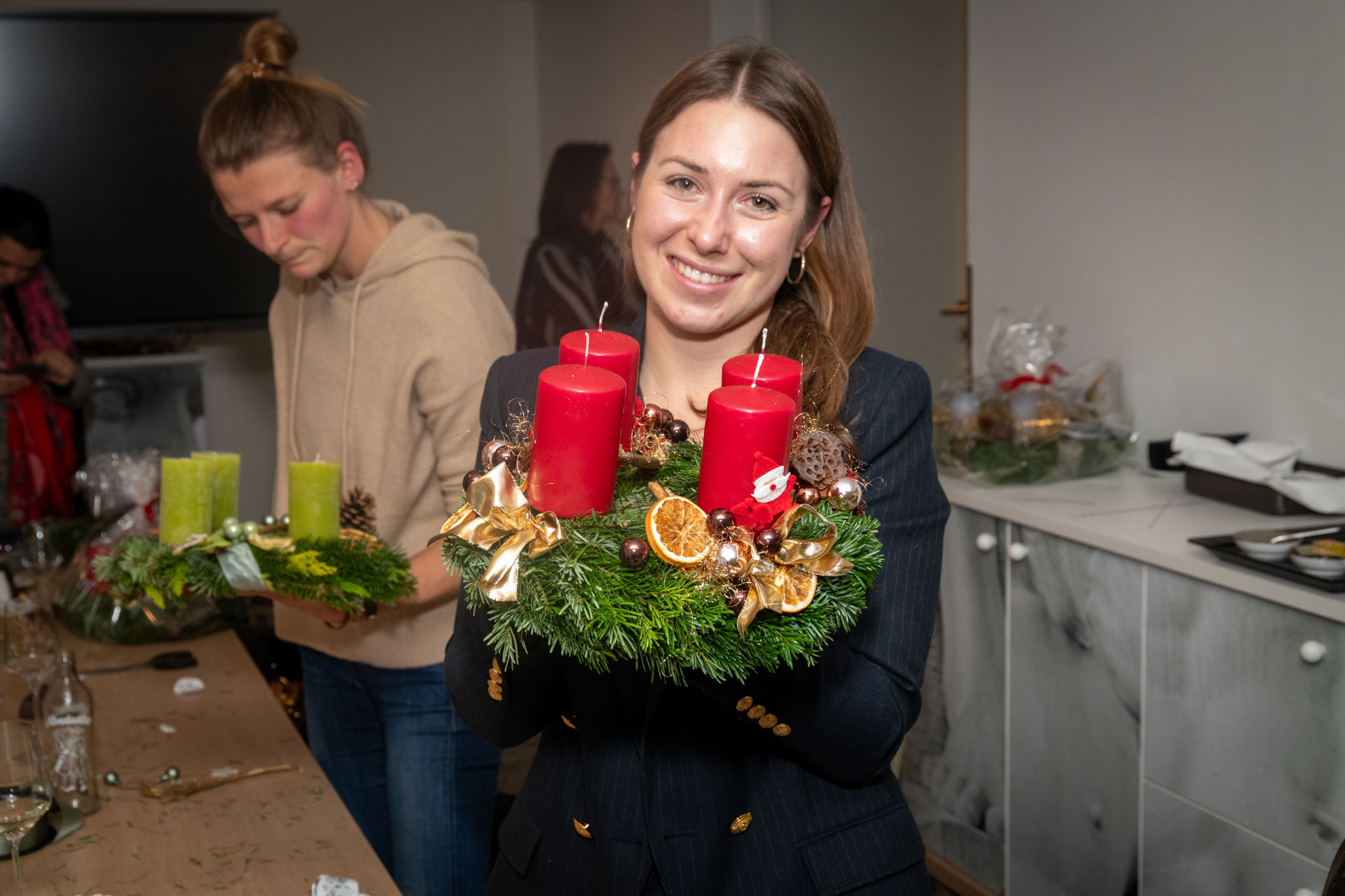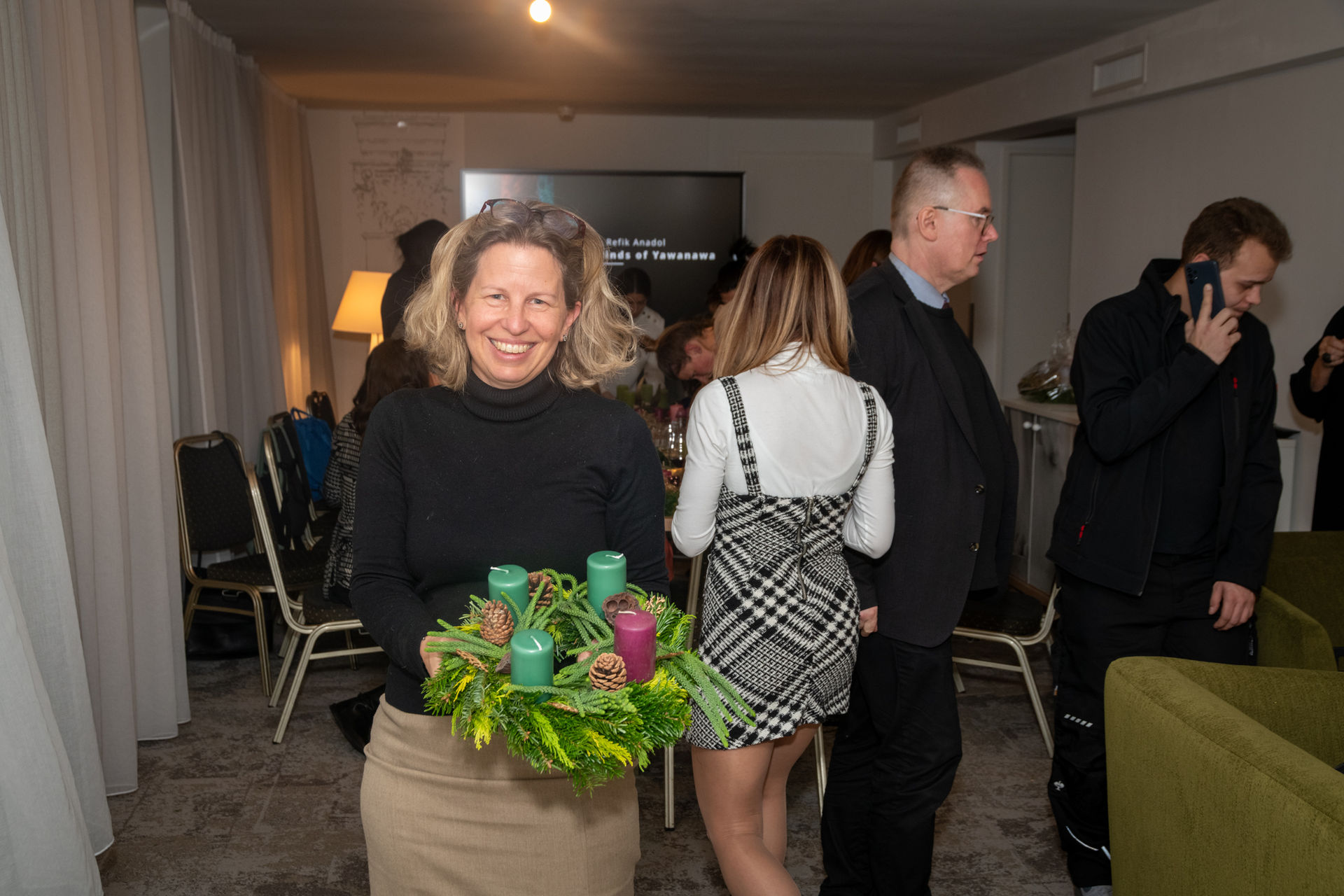 Danach wurden die Damen in zwei kleinere Gruppe aufgeteilt. Während die eine mit der Kuratorin des Museums Gugging, Elisabeth Mühlbacher, eine exklusive NFT-Ausstellung im Hotel besuchte und alles über digitale Kunst erfuhr, zeigte sich die andere Gruppe beim Schmücken eines Adventkranzes sehr kreativ – danach wurden die Gruppen getauscht. Im Anschluss wurde die Runde mit Köstlichkeiten der hoteleigenen Küche verwöhnt und zum Abschluss gab es noch einen Drink an der Bar.