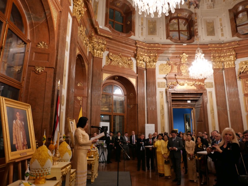 Anlässlich des Nationalfeiertages des Königreichs Thailand lud I.E. Vilawan Mangklatanakul, Botschafterin und ständige Vertreterin des Königreichs Thailand in Österreich, zu einem Empfang in das Obere Belvedere.