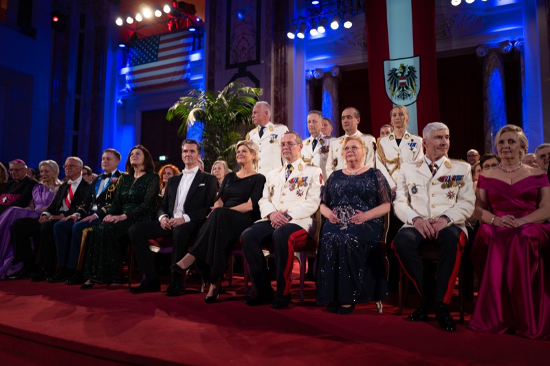 Verteidigungsministerin Klaudia Tanner: "Der Ball der Offiziere war für mich, wie jedes Jahr, ein eindrucksvolles Erlebnis und gehört zur Tradition des Bundesheeres dazu. Ich freue mich besonders, dass die 'Vermont National Guard' diesjähriger Partner des Balles gewesen ist, da uns neben der militärischen Partnerschaft auch die Musikgeschichte verbindet. Ich bedanke mich bei allen die in der Organisation mitgewirkt haben und vor allem auch den musikalischen Darbietungen, Tänzen und Showeinlagen, die einfach unvergesslich waren."Unter den 3.400 Gästen befanden sich neben internationalen Militärs, darunter die Generäle der US-amerikanischen Streitkräfte wie General Hokanson, General Christopher Cavoli und Lieutenant General Steven Basham sowie Major General Knight und Vertreterinnen und Vertreter der US-Diplomatie, darunter auch die Botschafterin der Vereinigten Staaten in Österreich, Victoria Reggie Kennedy sowie zahlreiche Persönlichkeiten aus Wirtschaft, Politik, Sport und Kultur."