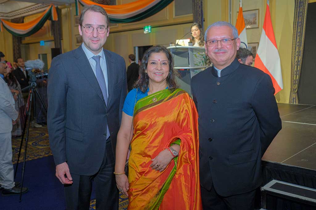 Anlässlich des Nationalfeiertages sowie der Aufnahme diplomatischer Beziehungen zwischen Indien und Österreich vor 75 Jahren, luden S.E. Jaideep Mazumdar, Botschafter der Republik Indien, und Frau Parvati Mazumdar, zu einem Konzert und Food-Festival in das Intercontinental Hotel.