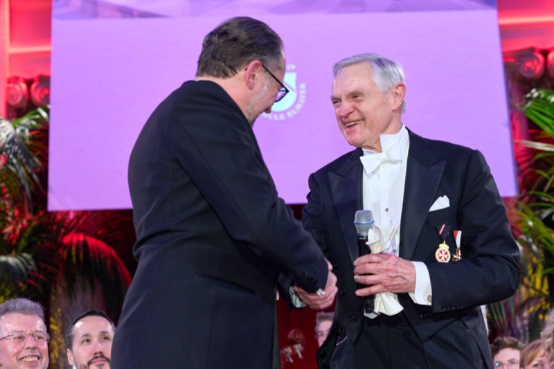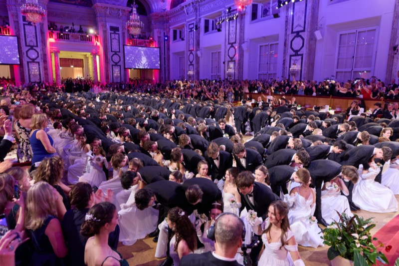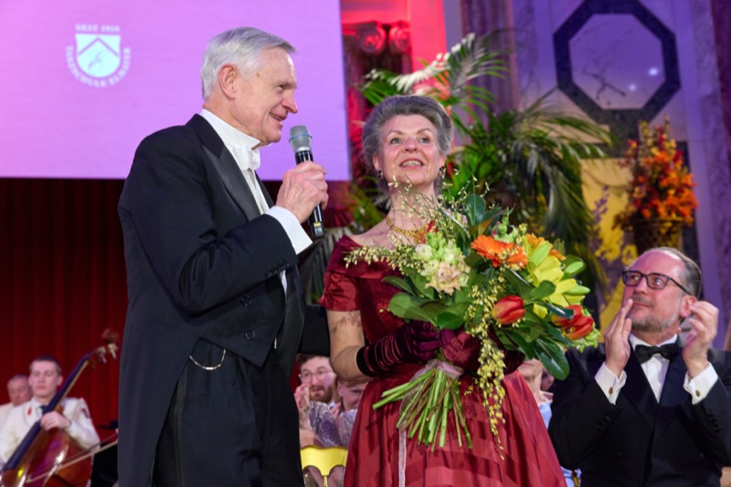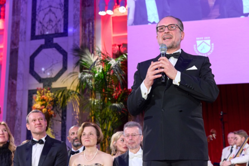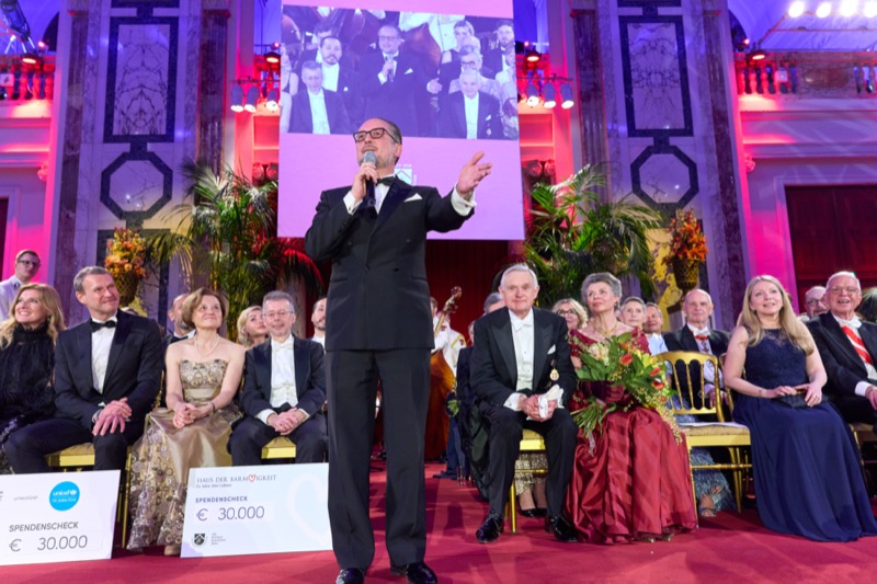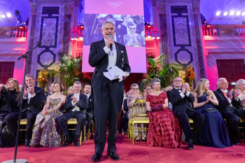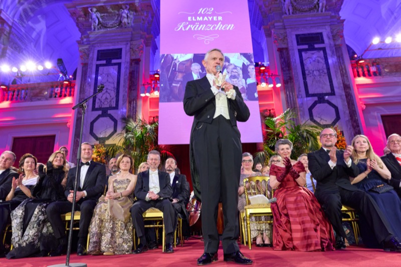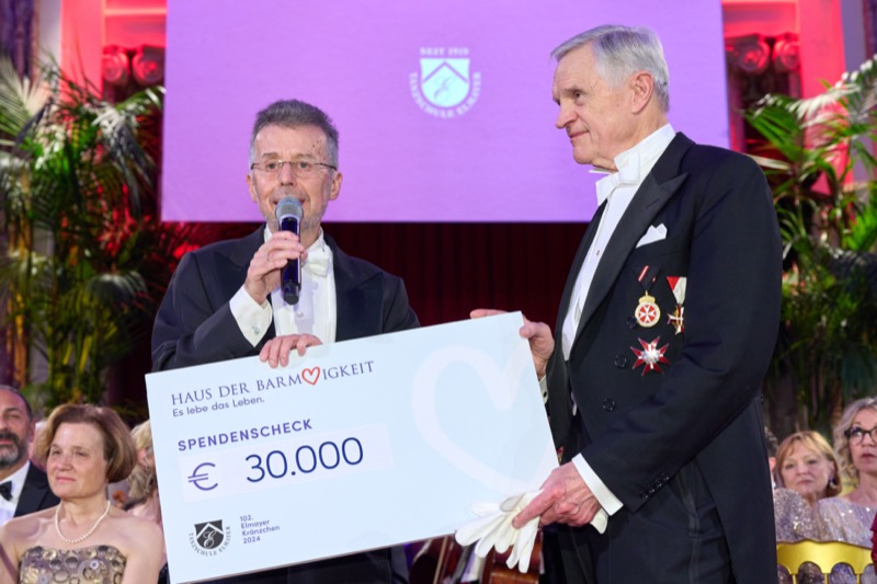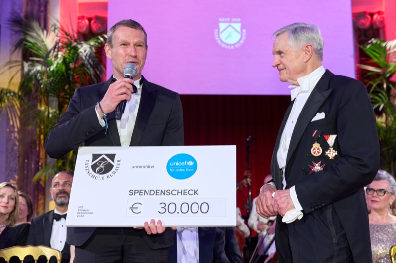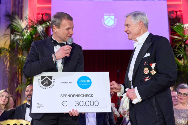 Das 102. Elmayer-Kränzchen bildete am Faschingsdienstag in der Wiener Hofburg den glanzvollen Höhepunkt der diesjährigen Wiener Ballsaison. Über 3.000 begeisterte Tanzfreunde erlebten einen entspannt-eleganten Abend und leisteten mit ihrem Besuch einen karitativen Beitrag. Aus Erlösen des Balls werden traditionell wohltätige Initiativen unterstützt. Bevor Tanzschulleiter und Ballorganisator Thomas Schäfer-Elmayer den Traditionsball mit den Worten „Alles Walzer“ eröffnete, nutzte er die Gelegenheit, persönlich die Spenden in Höhe von je 30.000 Euro an Vertreter*innen des Haus der Barmherzigkeit und UNICEF Österreich zu überreichen.