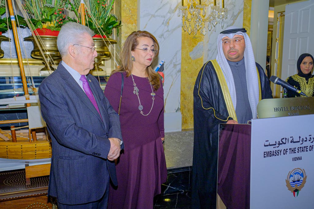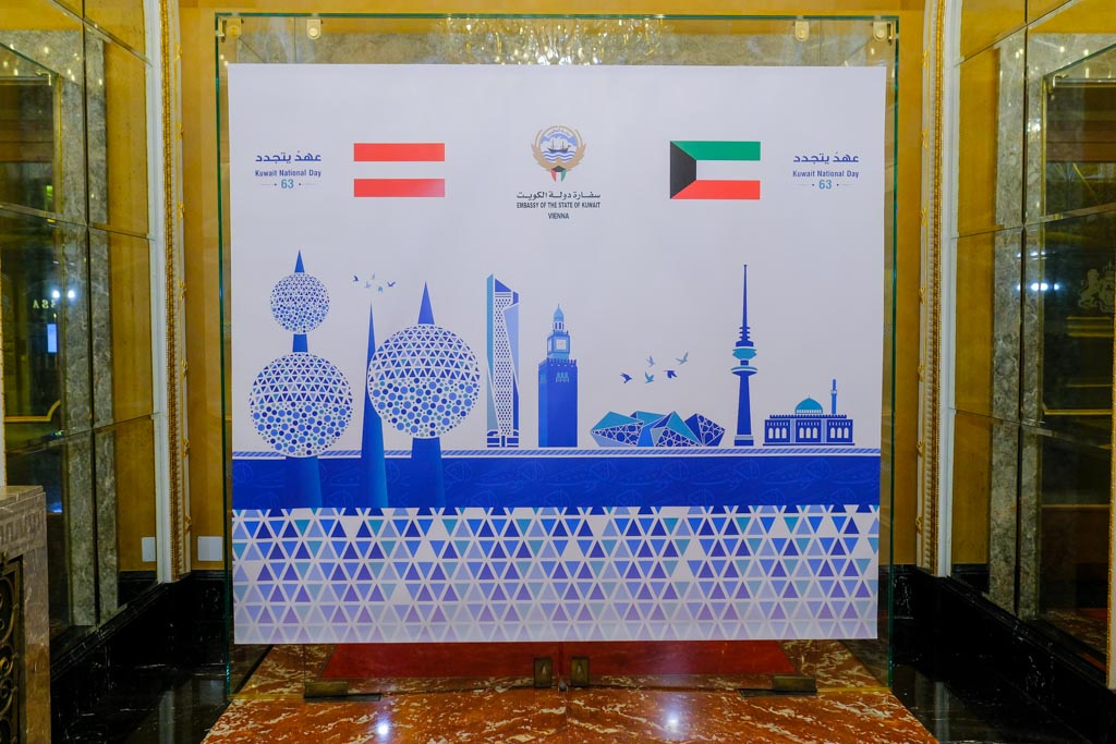 Anlässlich des 63. Jahrestags der Unabhängigkeit und des 33. Jahrestags der Befreiung des Staates Kuwait lud der Botschafter des Staates Kuwait in Österreich und Ständiger Vertreter bei den Vereinten Nationen und Internationalen Organisationen, S.E. Talal Alfassam, zu einem Empfang in das Hotel Imperial.