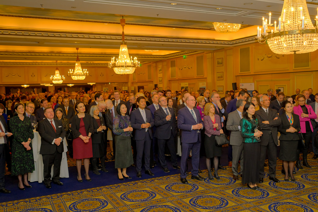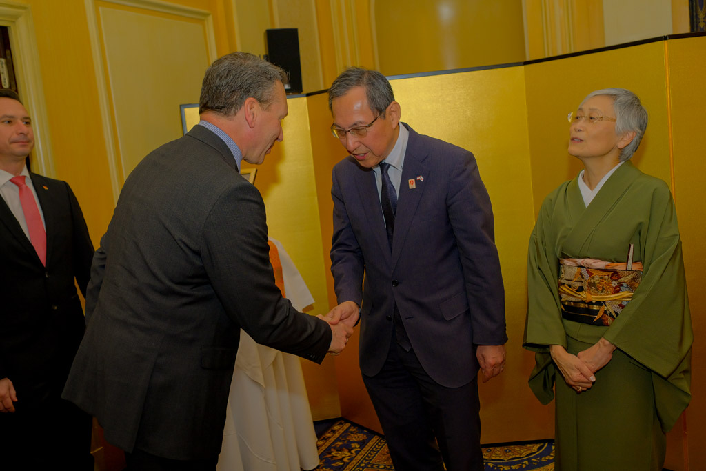 Aus Anlass des 64. Geburtstages Seiner Majestät des Kaisers von Japan luden der Botschafter von Japan in Österreich, S.E. Ryuta Mizuuchi und Frau Dr. Akemi Mizuuchi, sowie der Ständige Vertreter Japans bei den internationalen Organisationen S.E. Atsushi Kaifu zu einem Empfang in das Hotel InterContinental Wien.