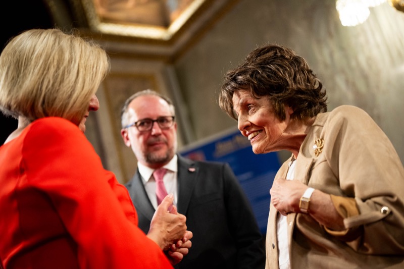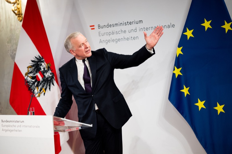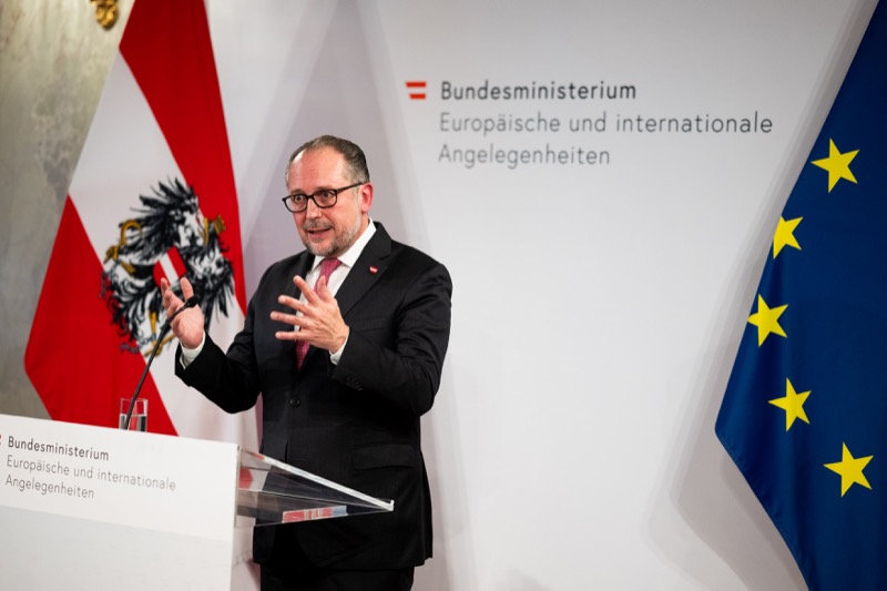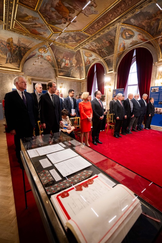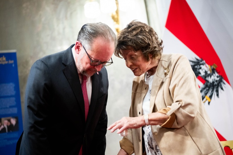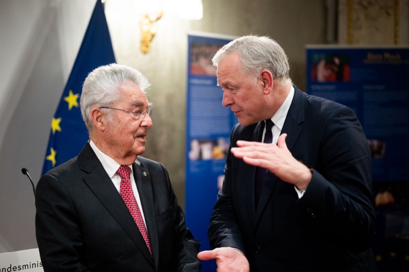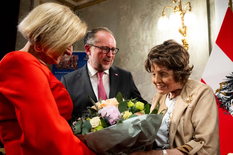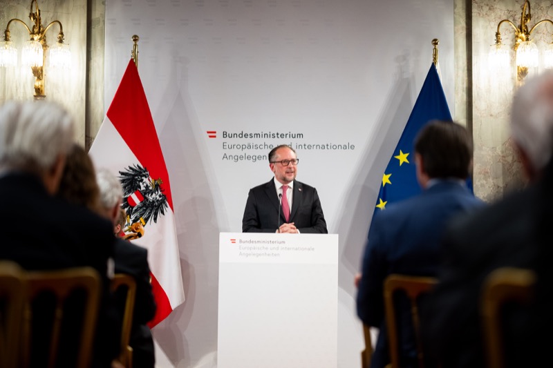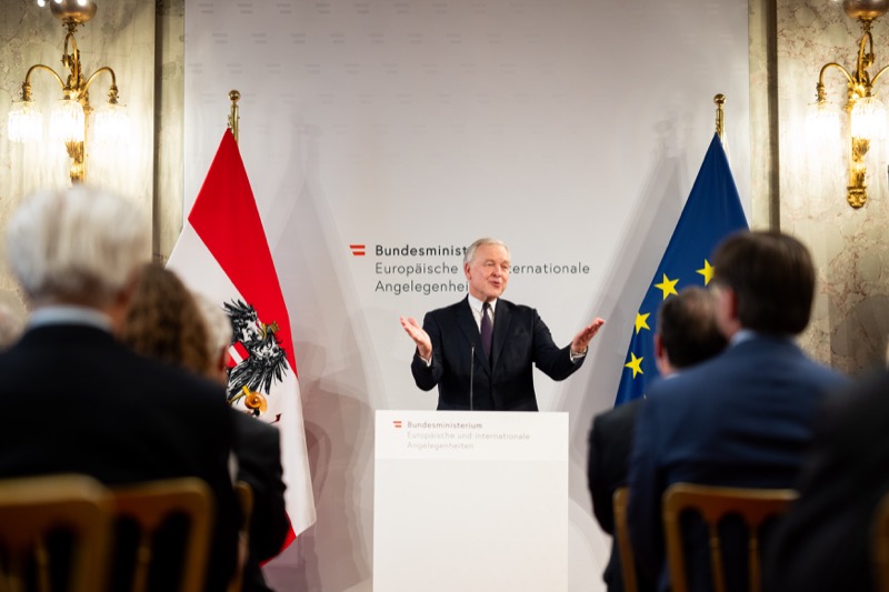 Gemeinsam mit Landeshauptfrau Johanna Mikl-Leitner lud Außenminister Alexander Schallenberg am 21. Mai zum Festakt und zur Präsentation der Ausstellung „Alois Mock. Staatsmann in bewegten Zeiten“ in den Alois-Mock-Saal im Außenministerium. Gemeinsam wurde nicht nur der 90. Geburtstag des außergewöhnlichen Staatsmannes Alois Mock gefeiert, sondern auch das 30. Jubiläum des österreichischen EU-Referendums. Das European Union Youth Orchestra eröffnet die Feierlichkeiten mit der Europahymne und begleitet den Festakt mit Stücken aus der Salzburger Symphonie.