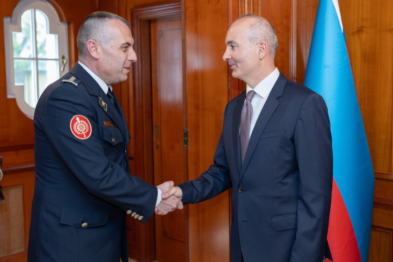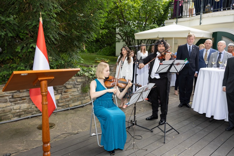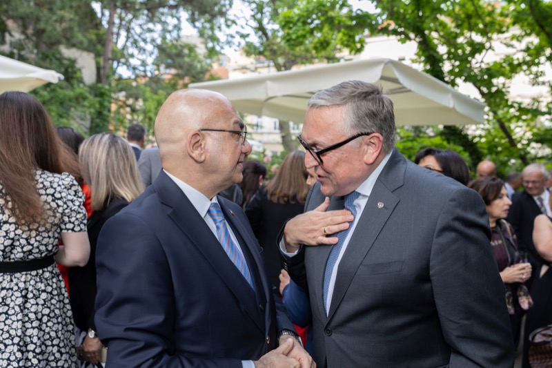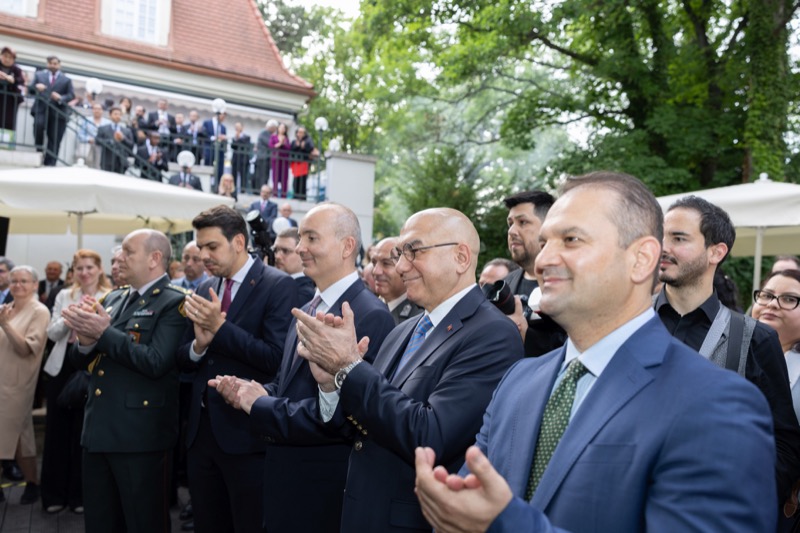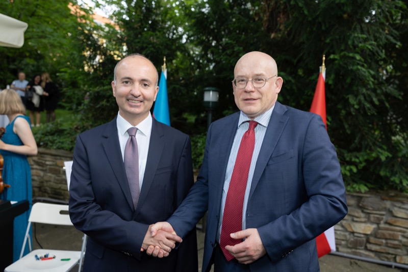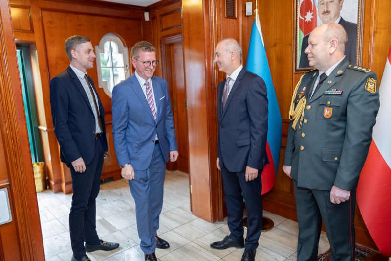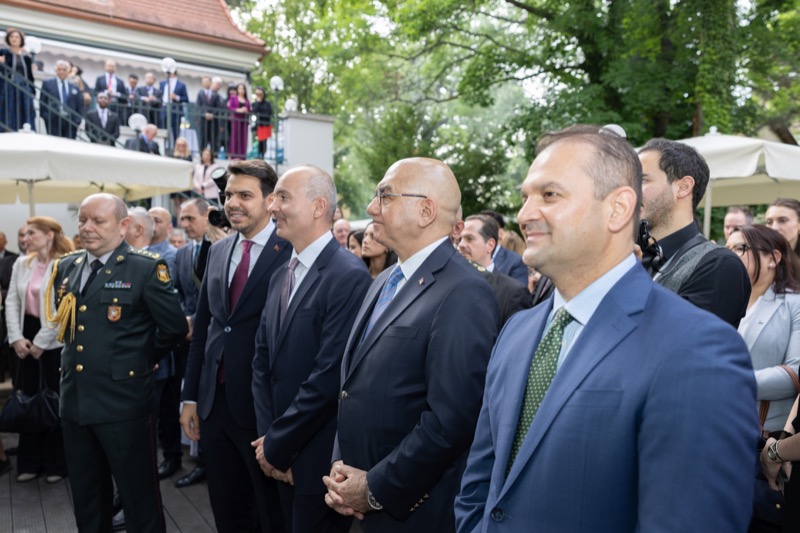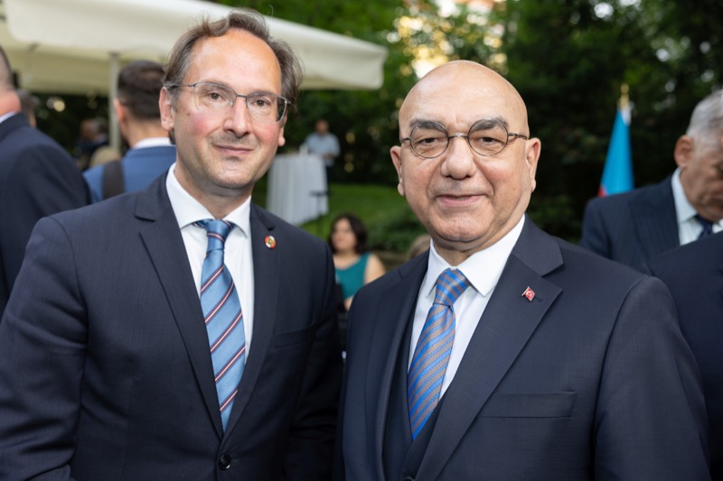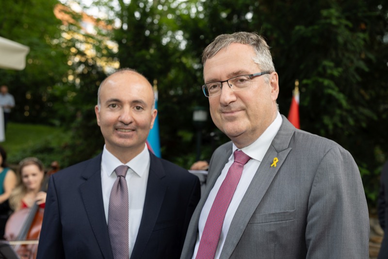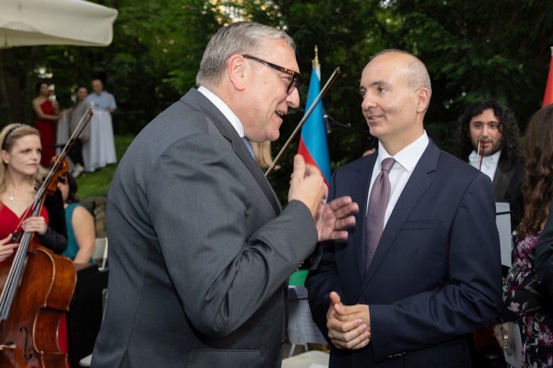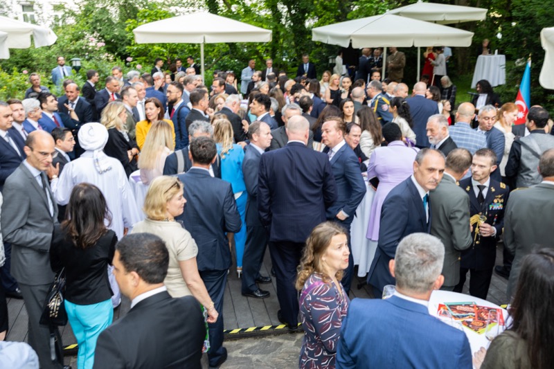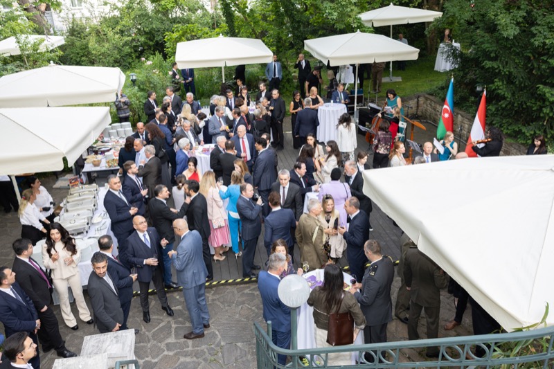 S.E. Rovshan Sadigbayli, Botschafter und Ständiger Vertreter der Republik Aserbaidschan bei der UN, OSZE und anderen Internationalen Organisationen, lud anlässlich des Unabhängigkeitstages sowie des Tages der Streitkräfte, zu einem Empfang in die Botschaft.