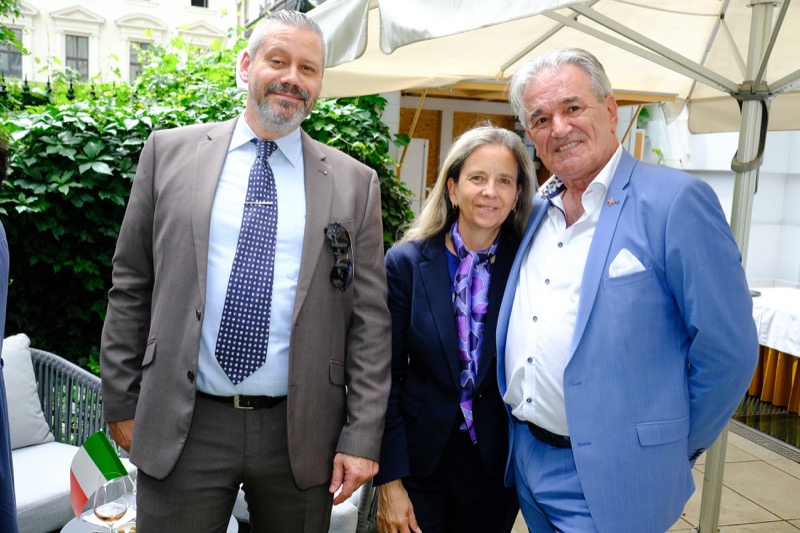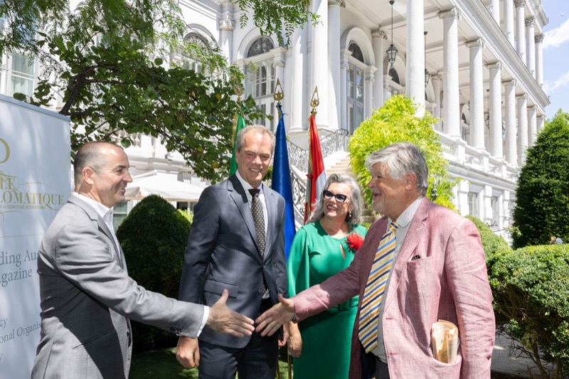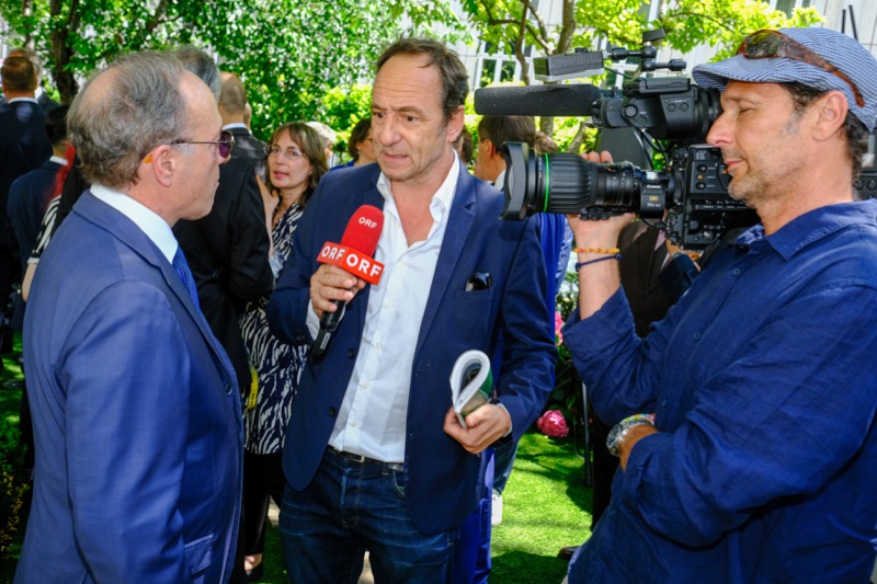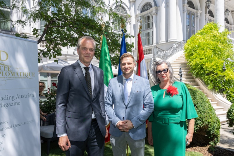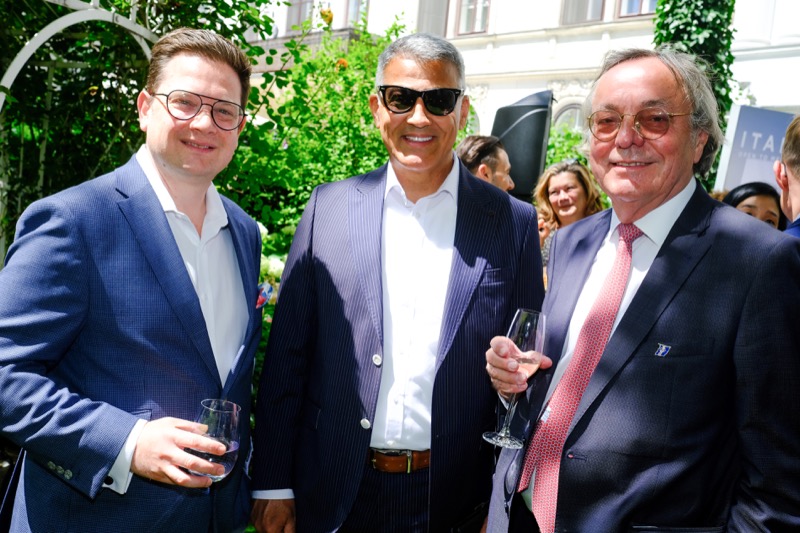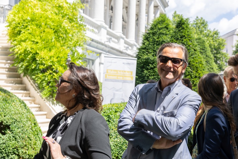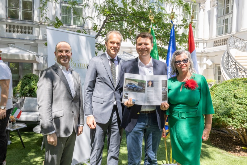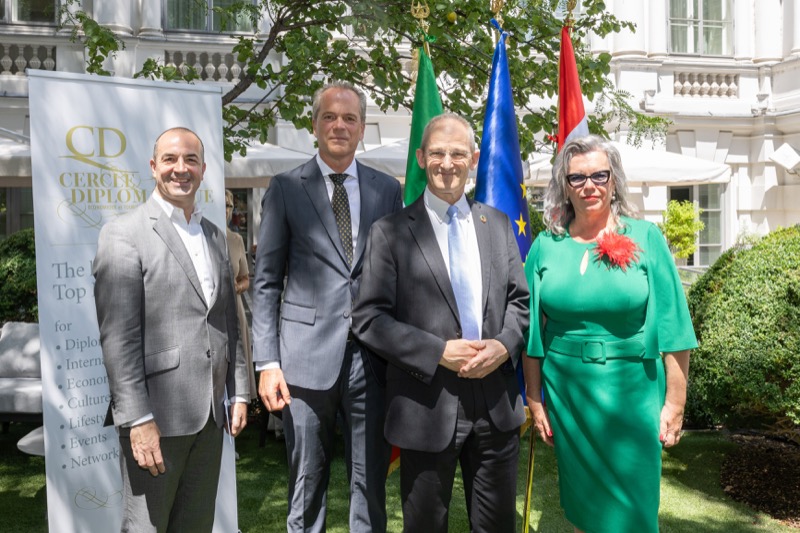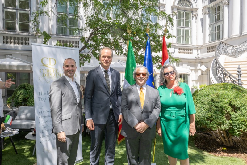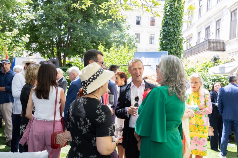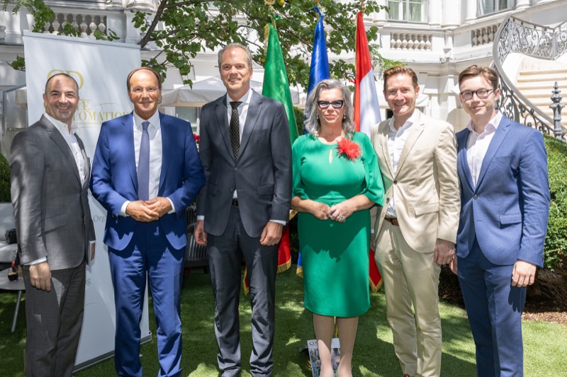 Bei traumhaftem Wetter luden die Herausgeber von CERCLE DIPLOMATIQUE, Andrea Fürnweger und Alexander Bursky, zur Präsentation der Sommerausgabe des Magazins mit der Coverstory über Italien. Gemeinsam mit Resident Manager Jochen Manninger wurden die Gäste diesmal im privaten Garten des prachtvollen Palais Coburg empfangen.