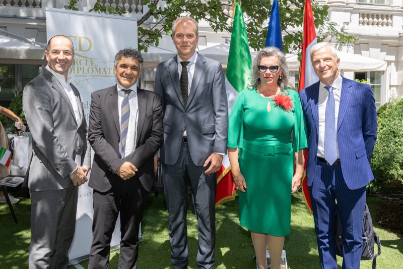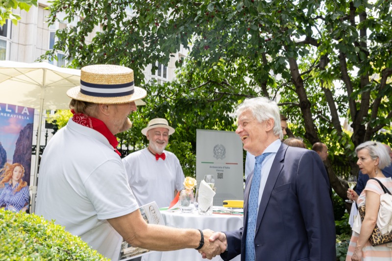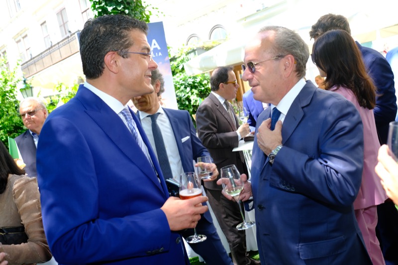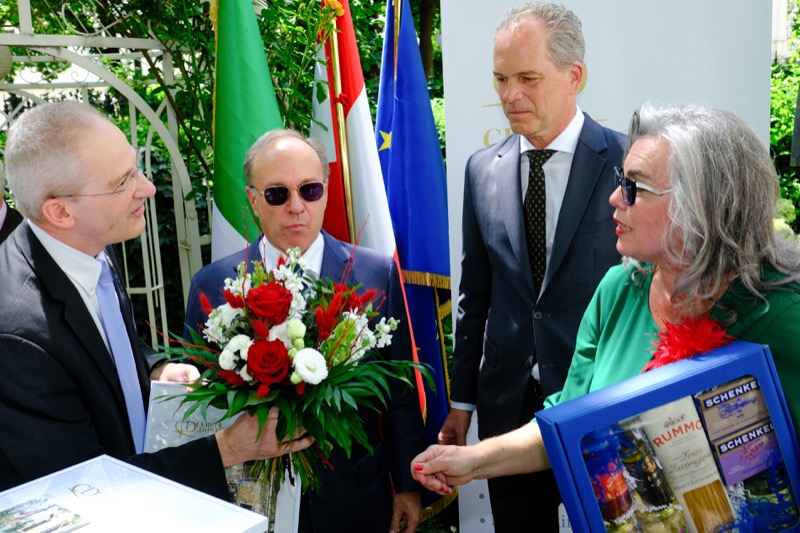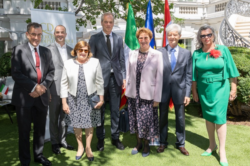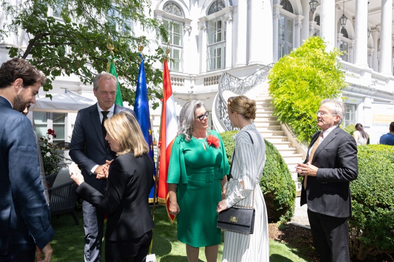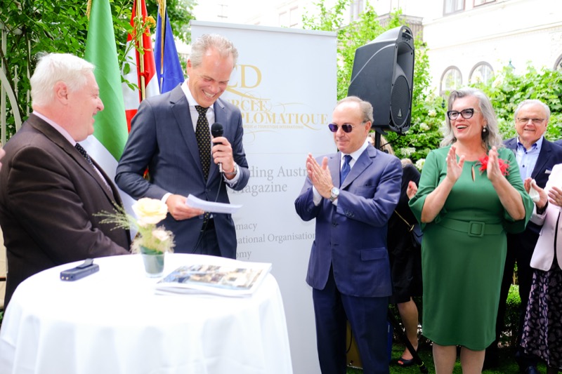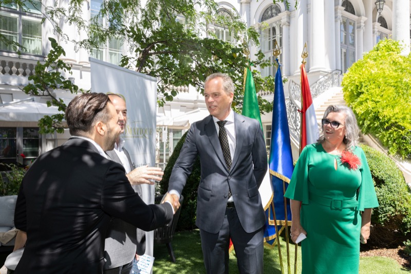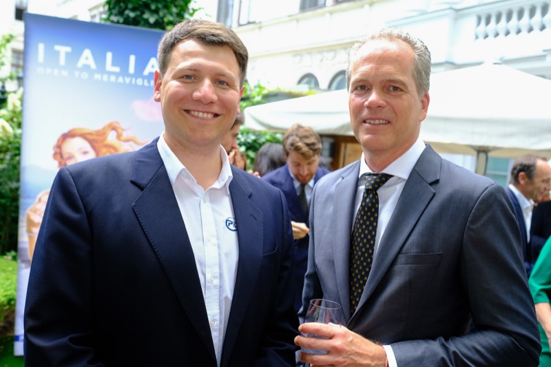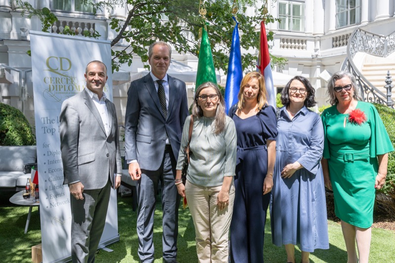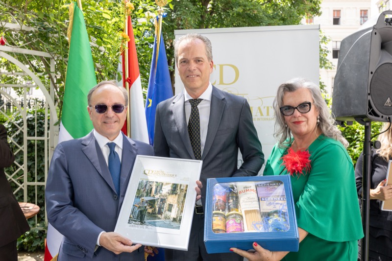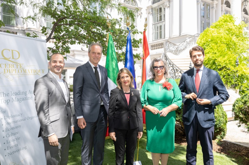 Bei traumhaftem Wetter luden die Herausgeber von CERCLE DIPLOMATIQUE, Andrea Fürnweger und Alexander Bursky, zur Präsentation der Sommerausgabe des Magazins mit der Coverstory über Italien. Gemeinsam mit Resident Manager Jochen Manninger wurden die Gäste diesmal im privaten Garten des prachtvollen Palais Coburg empfangen.