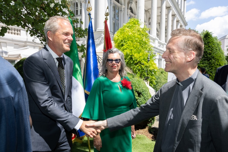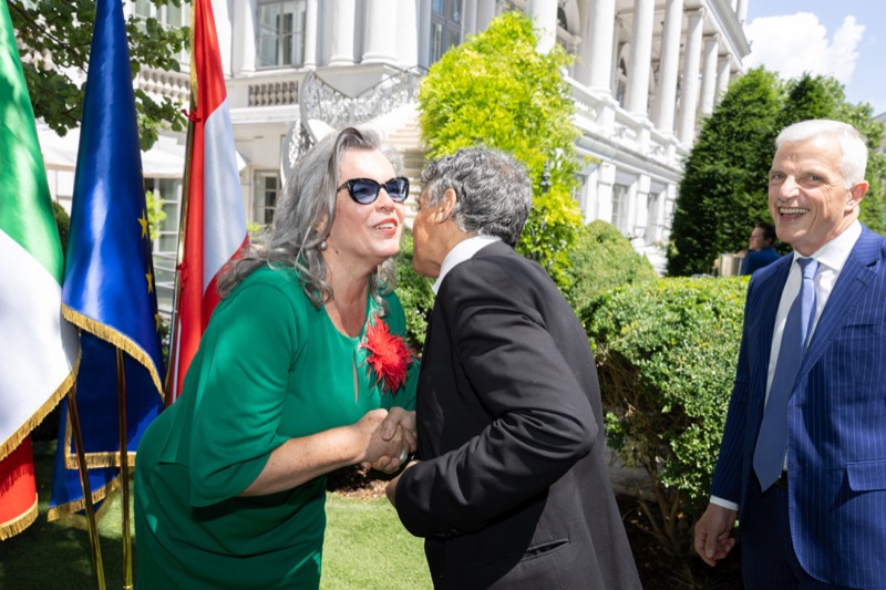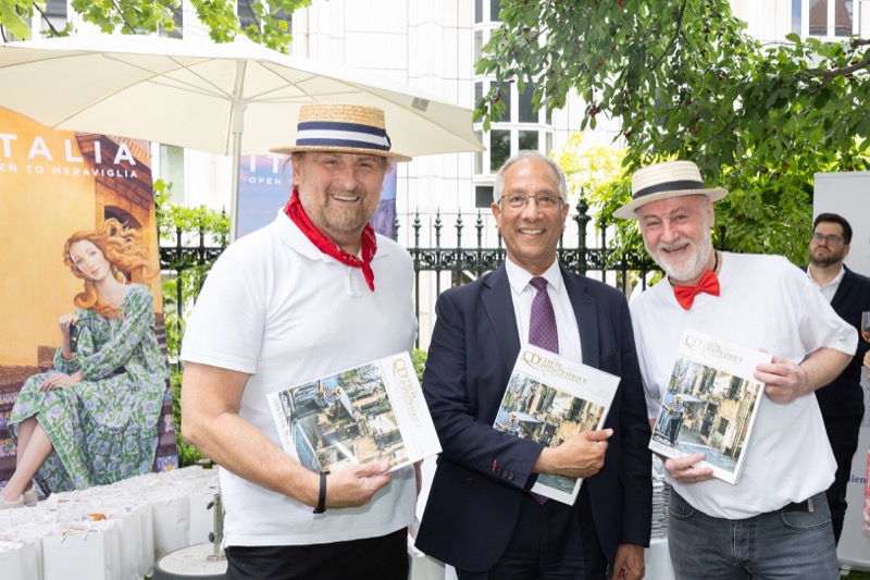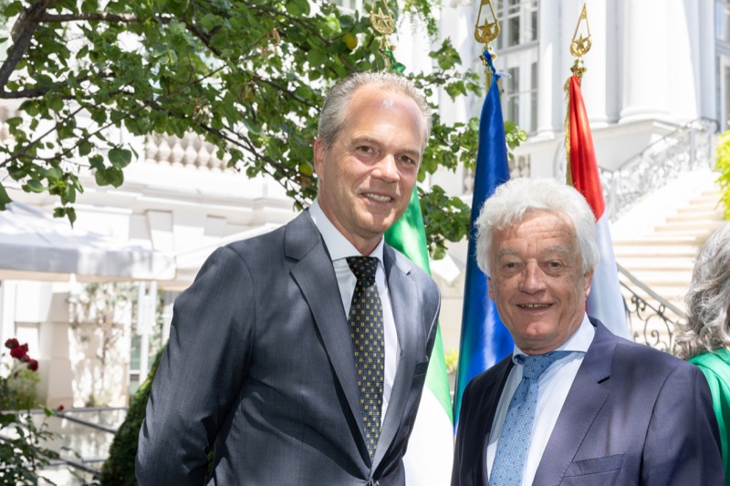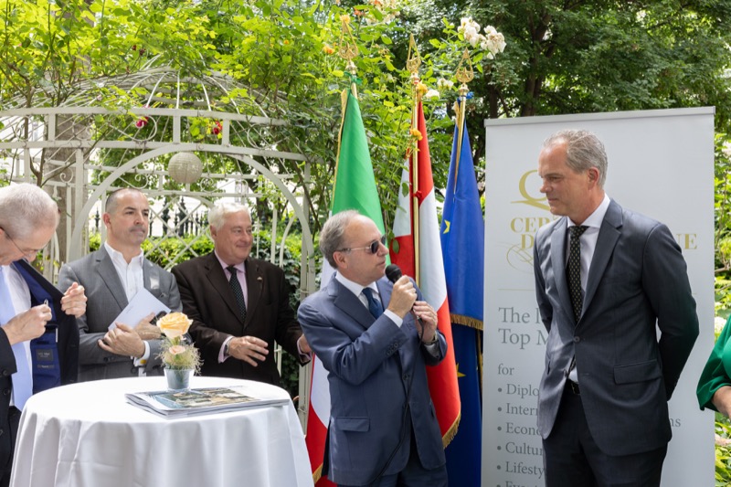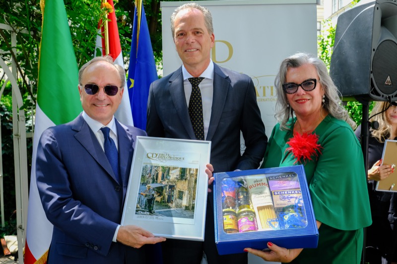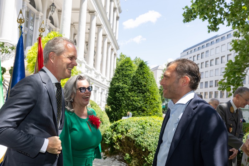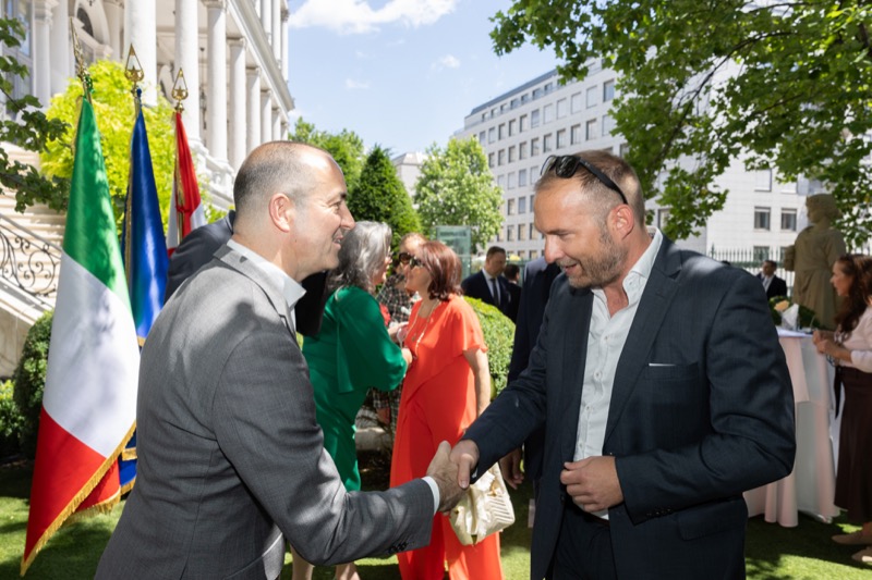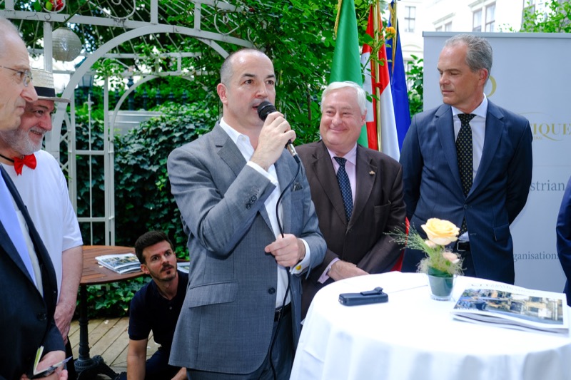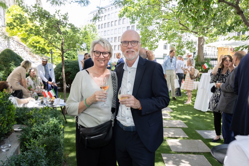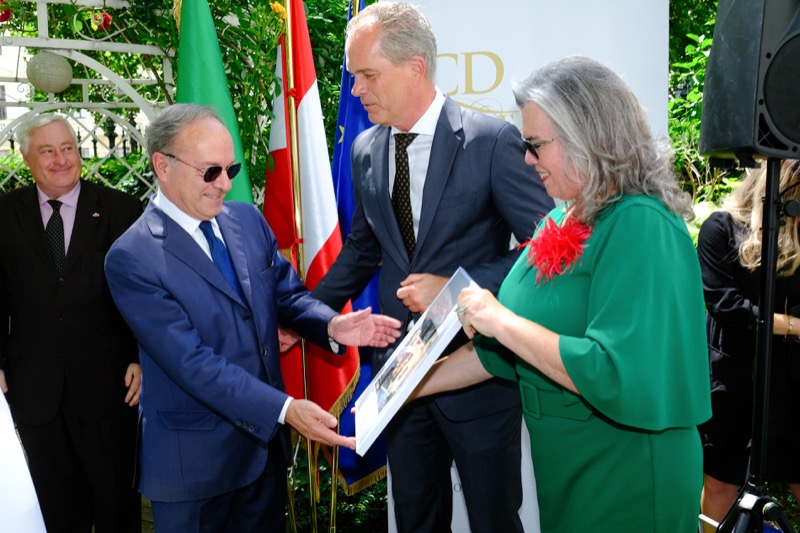 Bei traumhaftem Wetter luden die Herausgeber von CERCLE DIPLOMATIQUE, Andrea Fürnweger und Alexander Bursky, zur Präsentation der Sommerausgabe des Magazins mit der Coverstory über Italien. Gemeinsam mit Resident Manager Jochen Manninger wurden die Gäste diesmal im privaten Garten des prachtvollen Palais Coburg empfangen.
