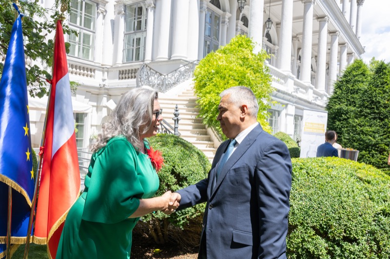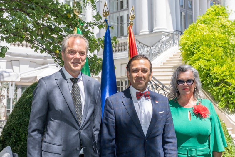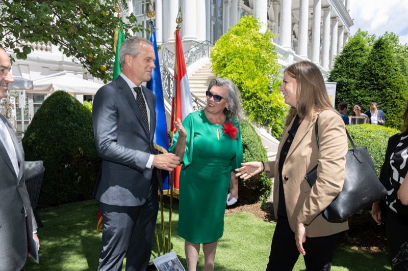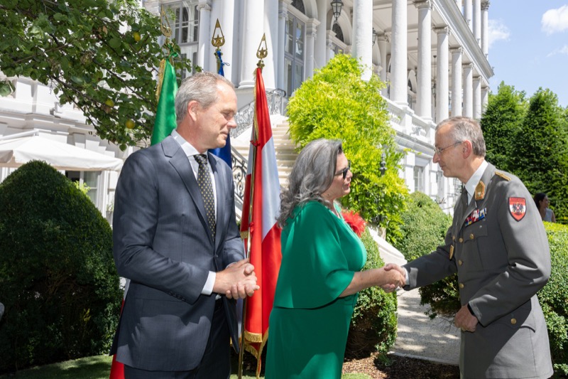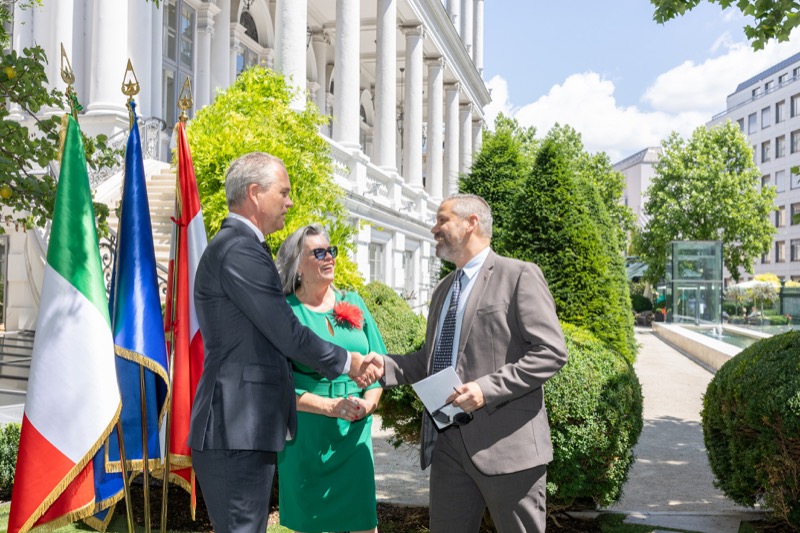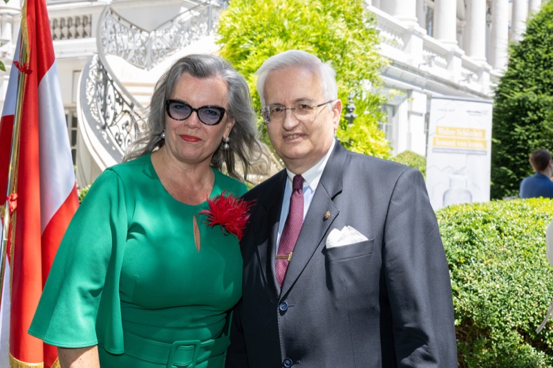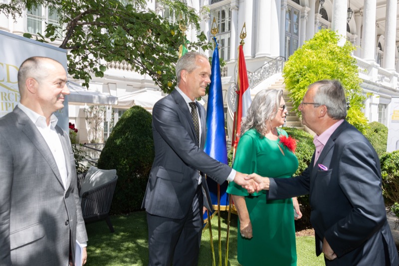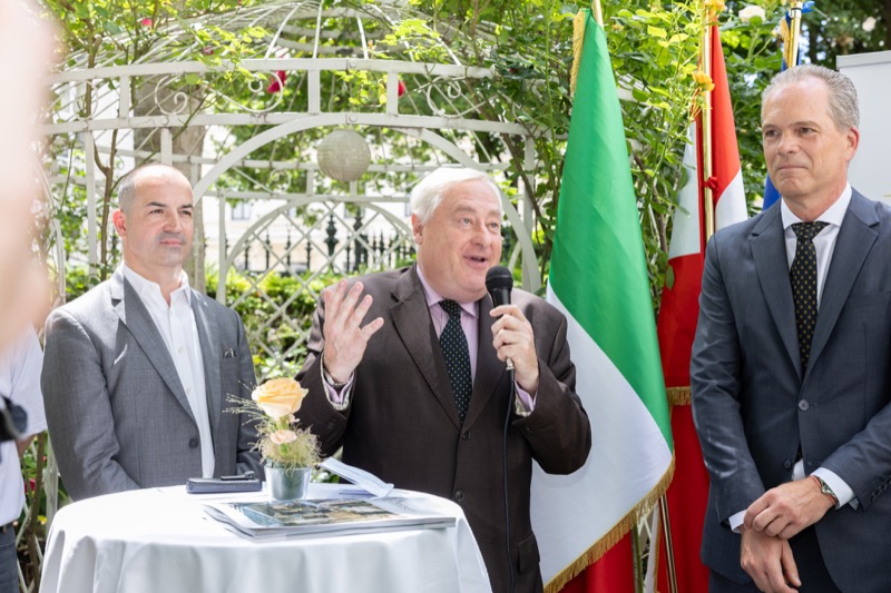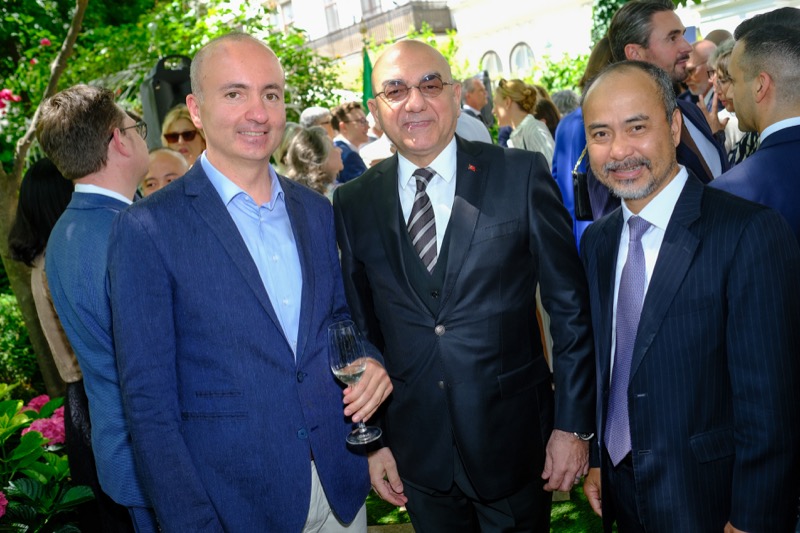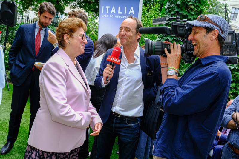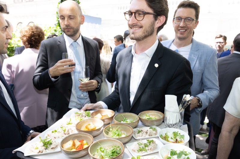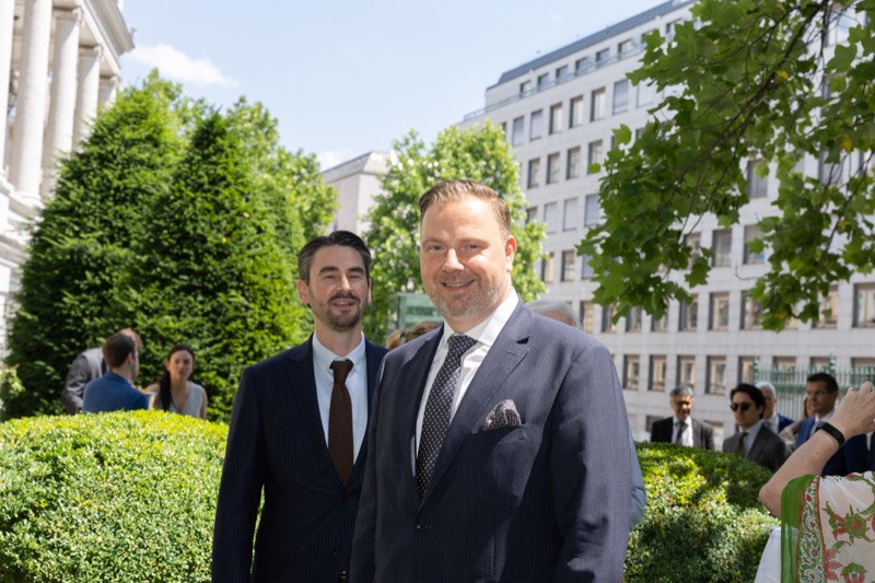 Bei traumhaftem Wetter luden die Herausgeber von CERCLE DIPLOMATIQUE, Andrea Fürnweger und Alexander Bursky, zur Präsentation der Sommerausgabe des Magazins mit der Coverstory über Italien. Gemeinsam mit Resident Manager Jochen Manninger wurden die Gäste diesmal im privaten Garten des prachtvollen Palais Coburg empfangen.
