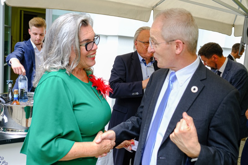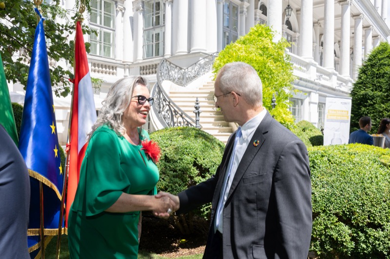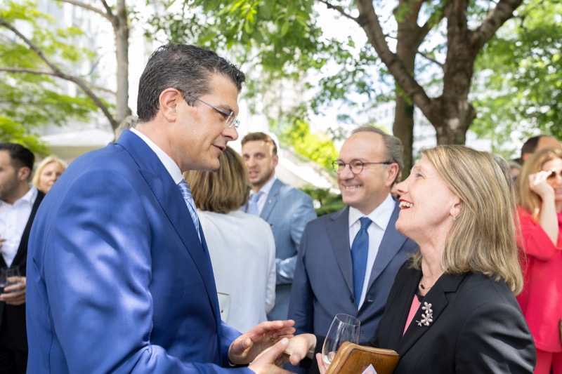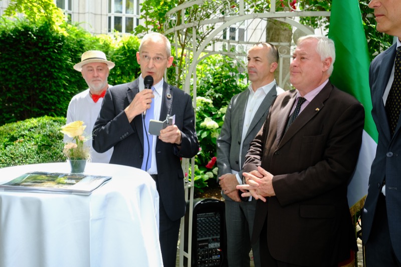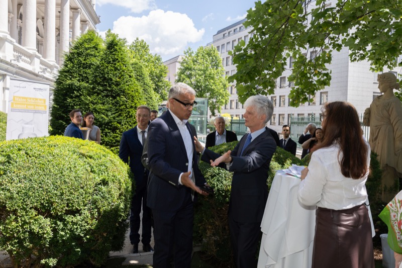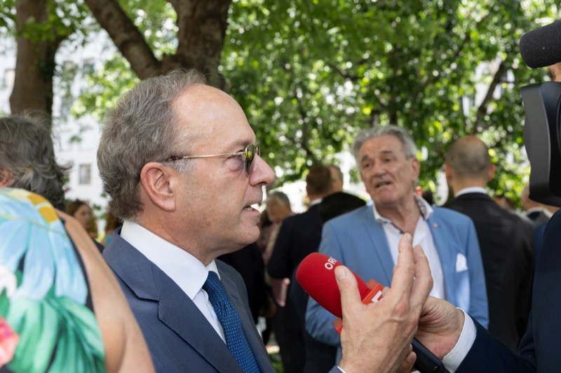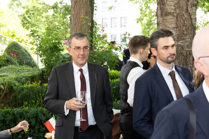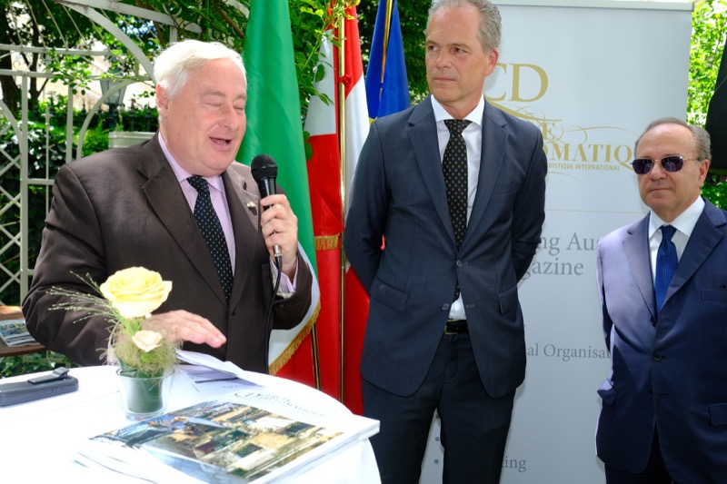 Nach den Begrüssungsworten von "Hausherr" Jochen Manninger und Herausgeber Alexander Bursky, richteten der Gesandte Christoph Meyenburg, Stv. Protokollchef des Aussenministeriums, sowie Direktor Martin Nesirky vom Informationsdienst der Vereinten Nationen (UNIS) Grußbotschaften an die Gäste. Nach der Rede von unserem Ehrengast S.E. Giovanni Pugliese, Botschafter der Republik Italien in Österreich, sowie der Übergabe eines Delikatessenkorbes aus dem Hause Schenkel an Herrn Botschafter, hatten unsere rund 150 Gäste dann die Gelegenheit zum Plaudern und Networken.