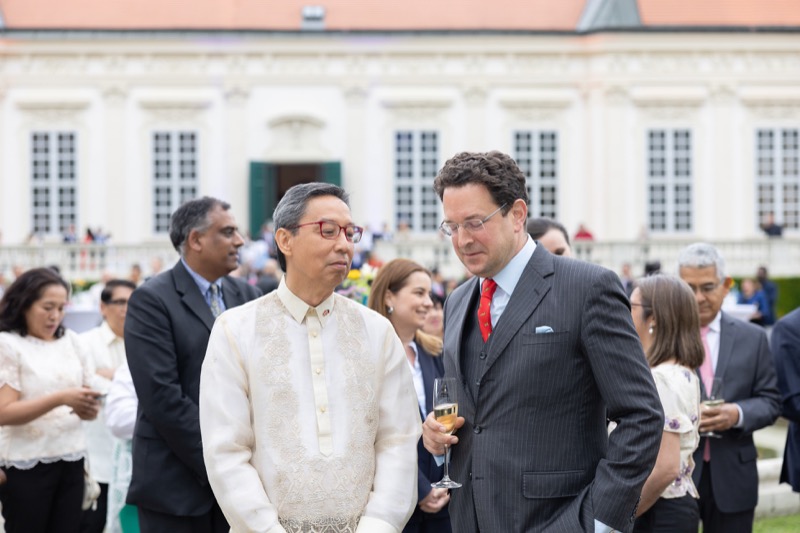 Die Botschafterin der Philippinen in Österreich, I.E. Evangelina Lourdes A. Bernas, und Herr John Aloysius S. Bernas, luden anlässlich des 126. Jahrestages der Unabhängigkeit der Philippinen zu einem Empfang in den Kammergarten des Unteren Belvederes.