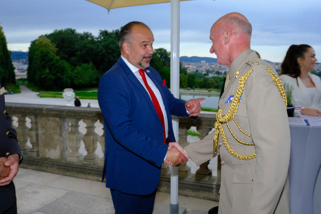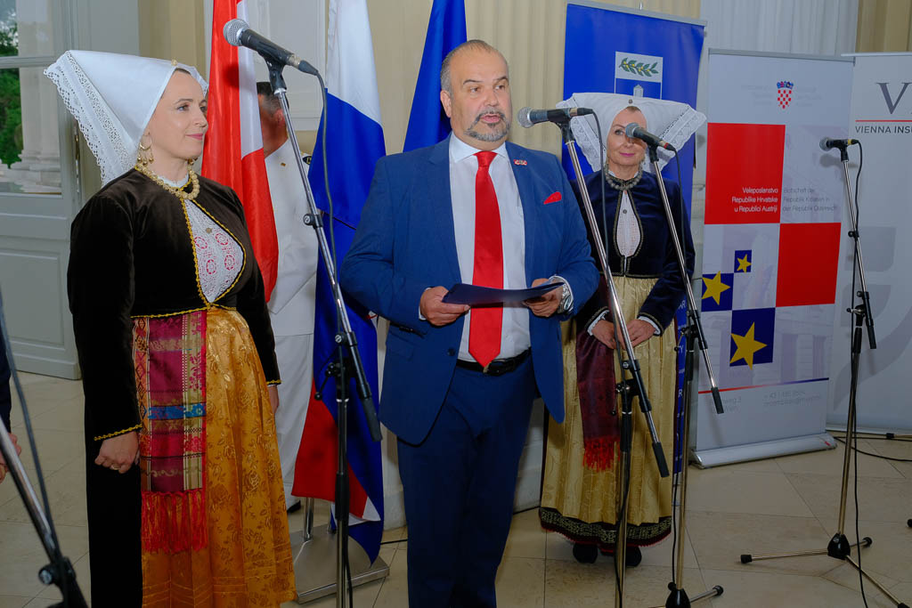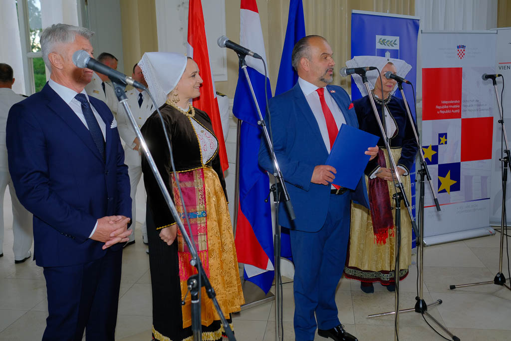 Anlässlich des Nationalfeiertages, des Tags der Streitkräfte und des 15. Jahrestages der Mitgliedschaft Kroatiens in der NATO, luden S.E. Daniel Gluncic, Botschafter der Republik Kroatien, S.E. Mario Horvatic, Botschafter Kroatiens bei der OSZE, der UNO und den Internationalen Organisationen in Wien sowie der Verteidigungsattaché Oberstleutnant Mario Pavlak zu einem Empfang in die Gloriette.