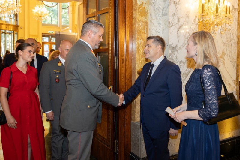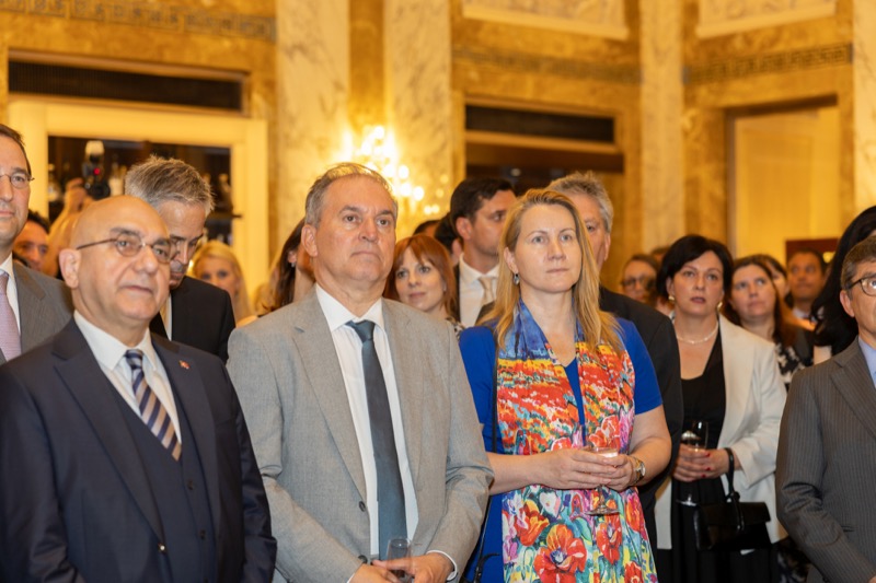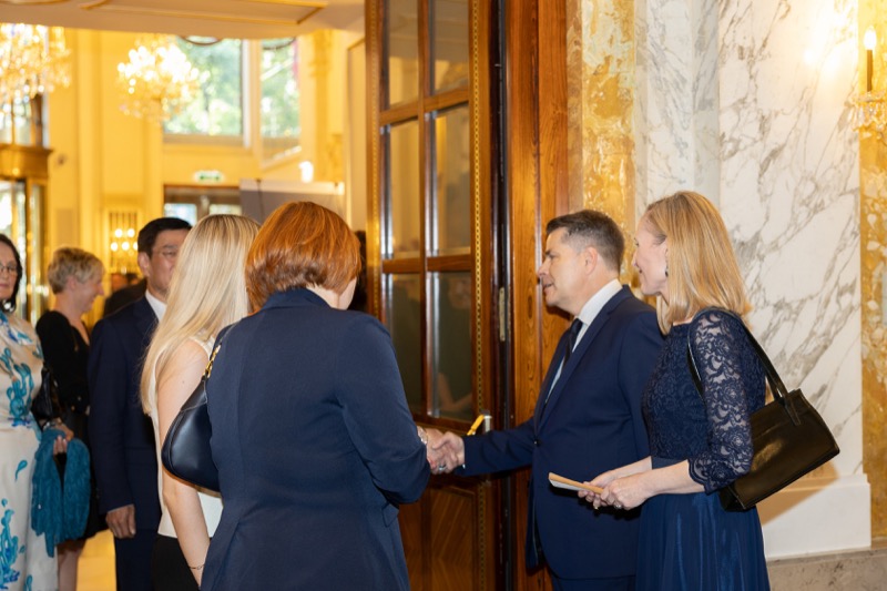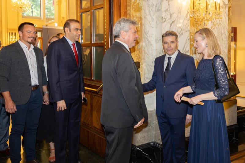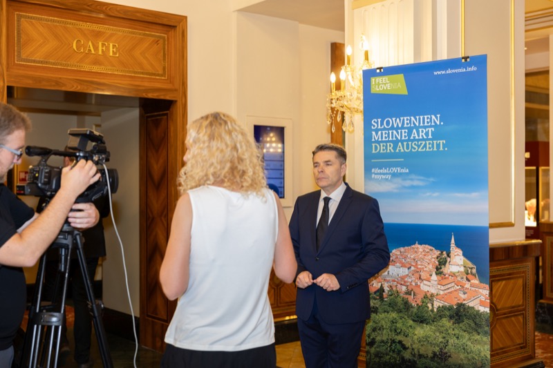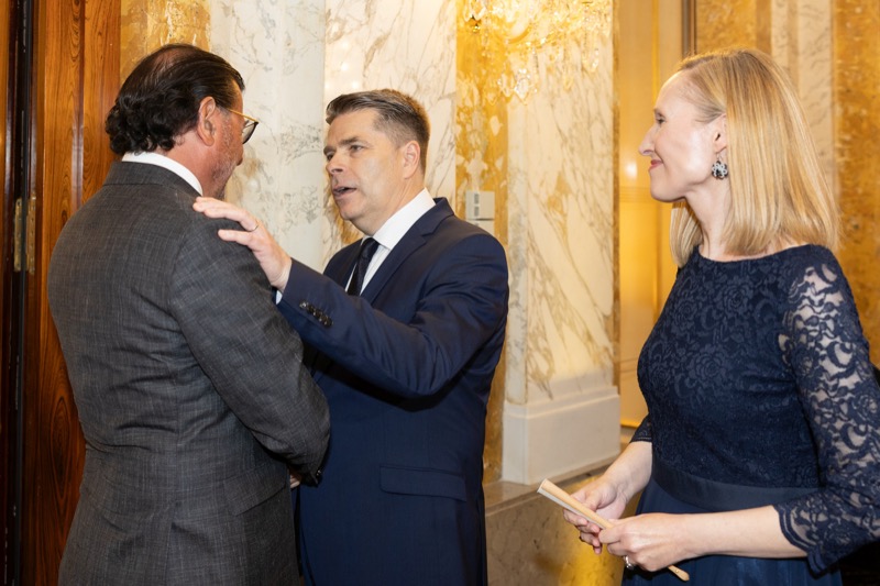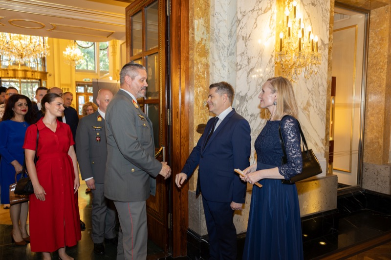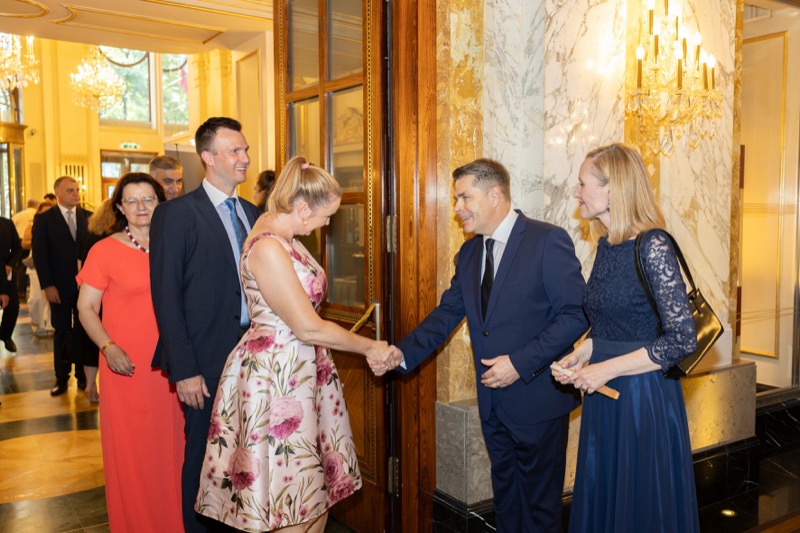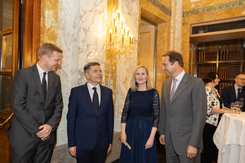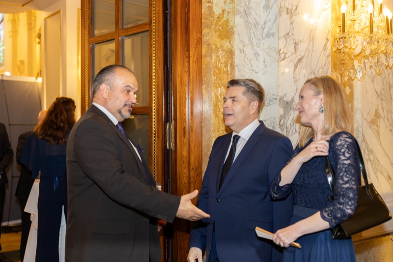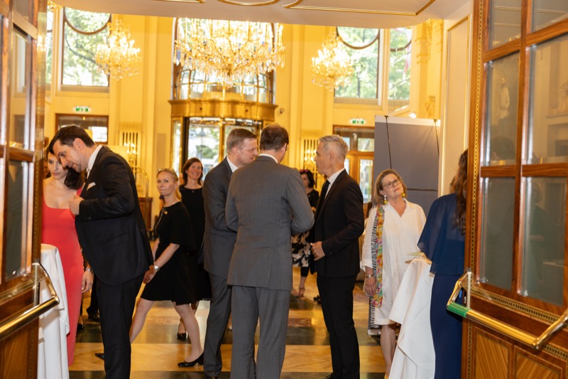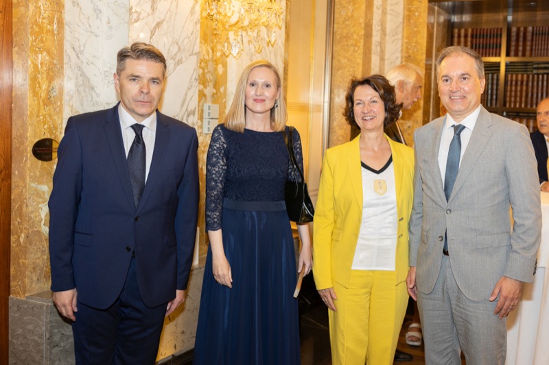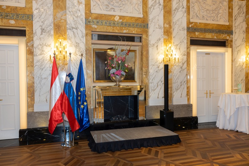 Anlässlich des Nationalfeiertages der Republik Slowenien und des 20. Jahrestages des EU- und NATO-Beitritts luden der Botschafter der Republik Slowenien , S.E. Aleksander Geržina, und Frau Gaja Peric, zu einem Empfang in das Hotel Imperial. Anschliessend gab es noch ein Konzert des slowenischen Philharmonie Orchesters im Musikverein.