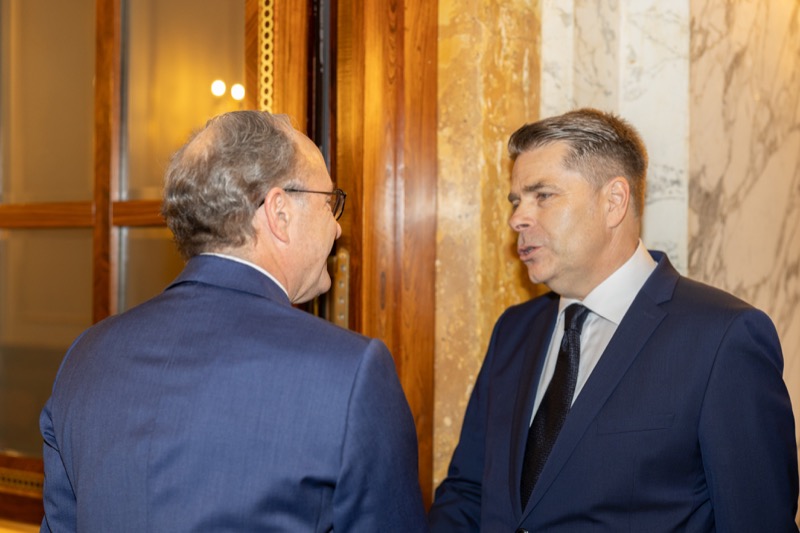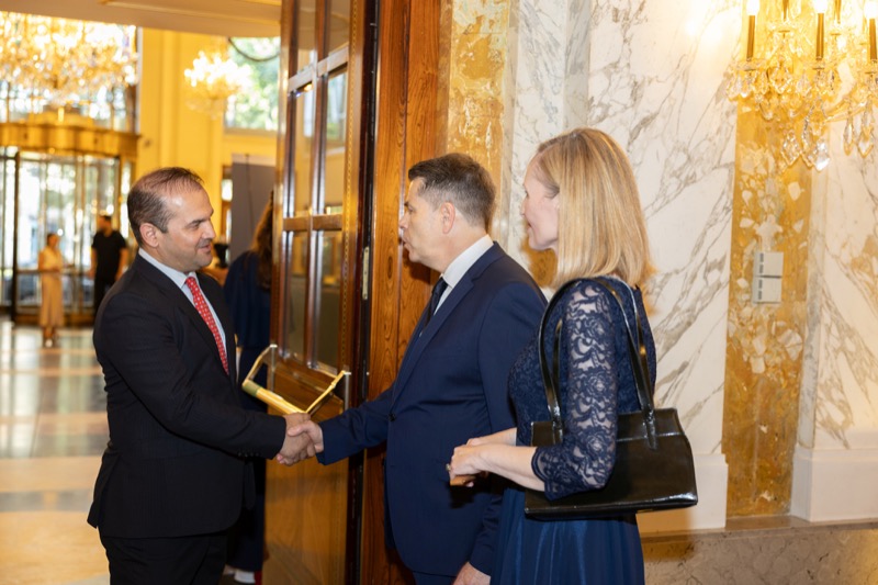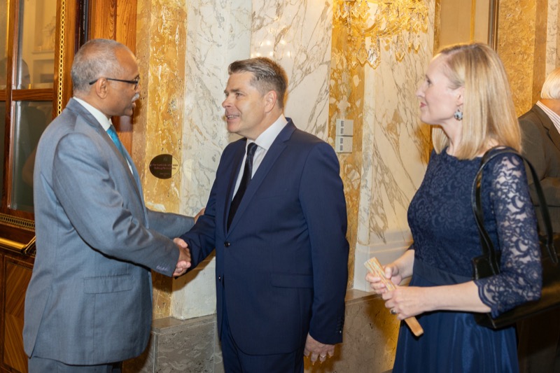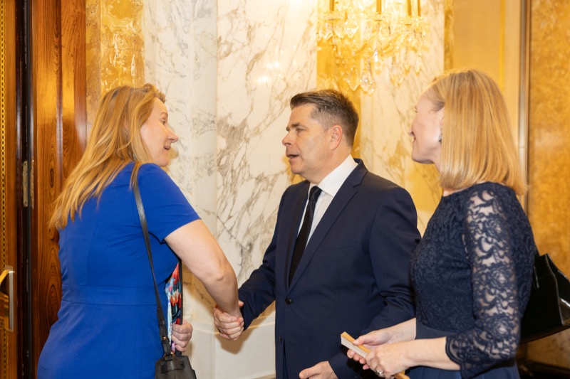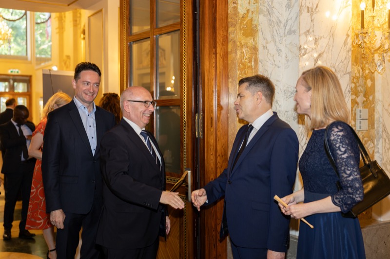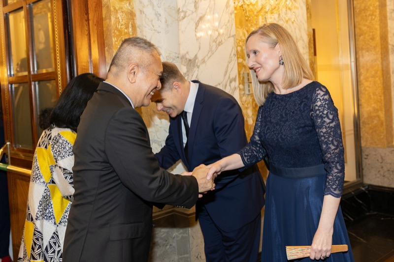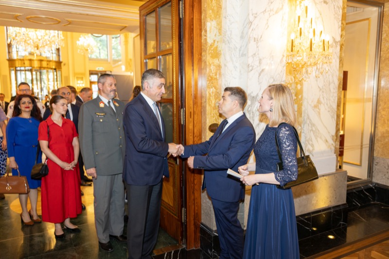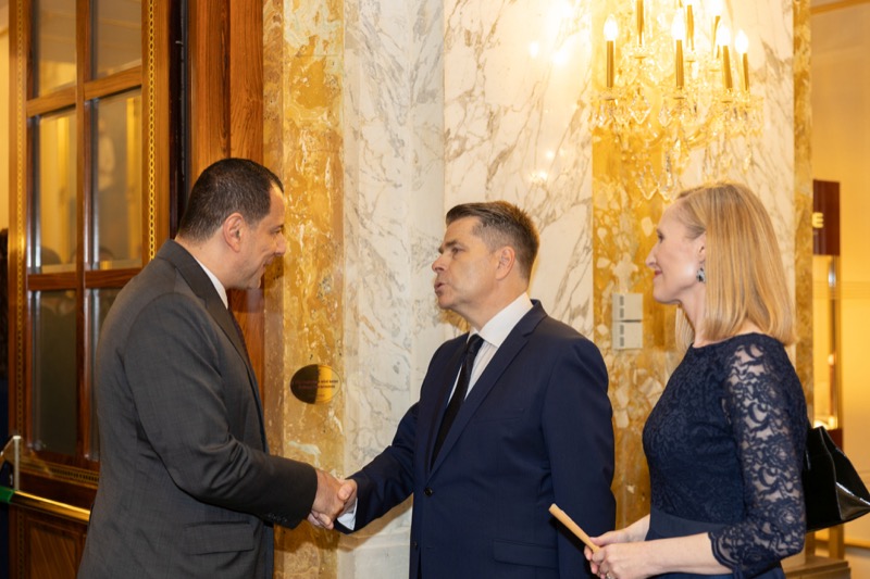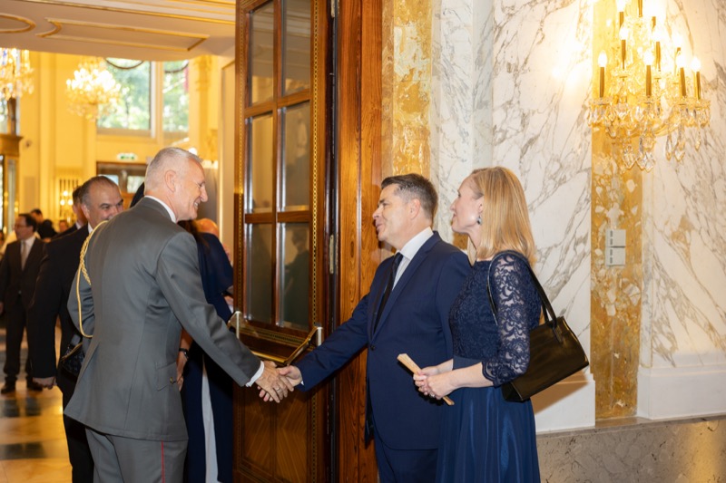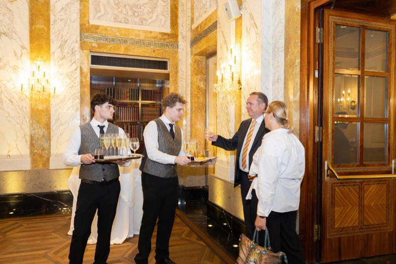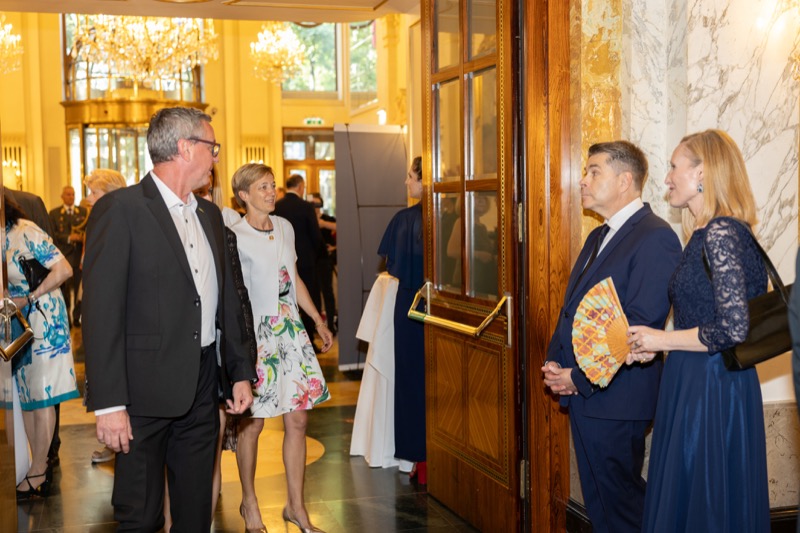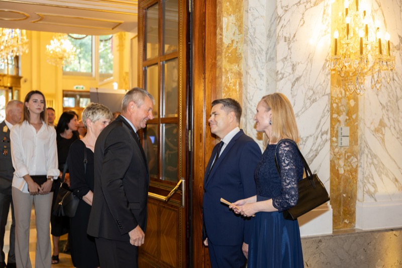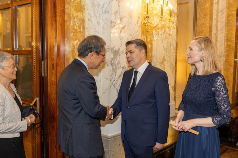 Anlässlich des Nationalfeiertages der Republik Slowenien und des 20. Jahrestages des EU- und NATO-Beitritts luden der Botschafter der Republik Slowenien , S.E. Aleksander Geržina, und Frau Gaja Peric, zu einem Empfang in das Hotel Imperial. Anschliessend gab es noch ein Konzert des slowenischen Philharmonie Orchesters im Musikverein.