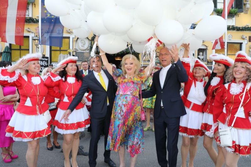 Vizehonorarkonsulin Birgit Sarata lud gestern Abend zur traditionellen Geburtstagssause unter dem Motto „42 und ein bisserl mehr“ in den Marchfelderhof nahe Wien. Die illustre Gratulanten-Schar ließ ihr zu Ehren 42+ ein bisserl mehr weiße Luftballons in den Marchfelder Himmel steigen, und Frau Vizehonorarkonsulin Sarata ließ es sich nicht nehmen, den eigens für sie komponierten „Sarata Galopp“ persönlich zu dirigieren.