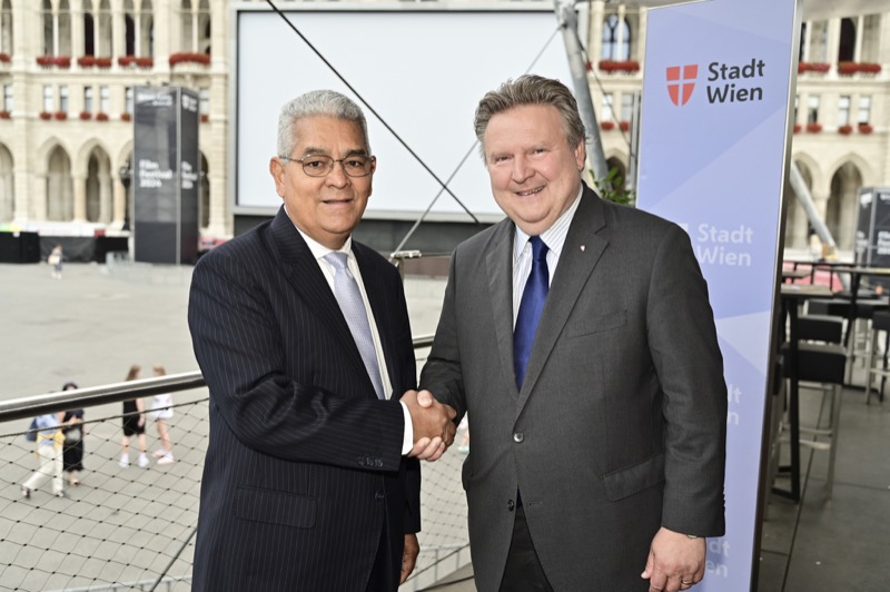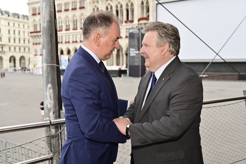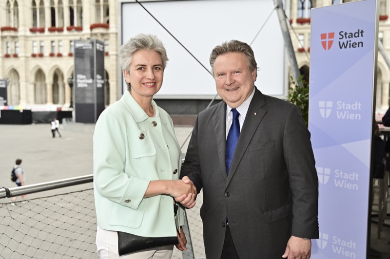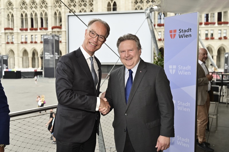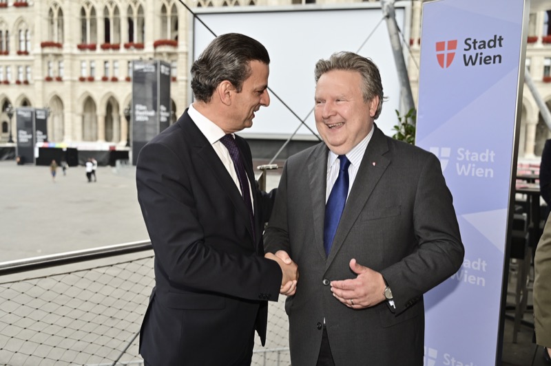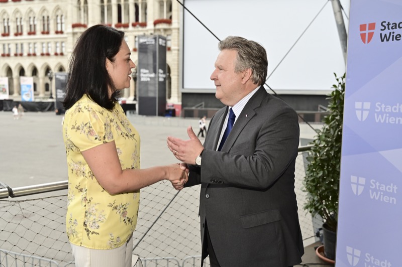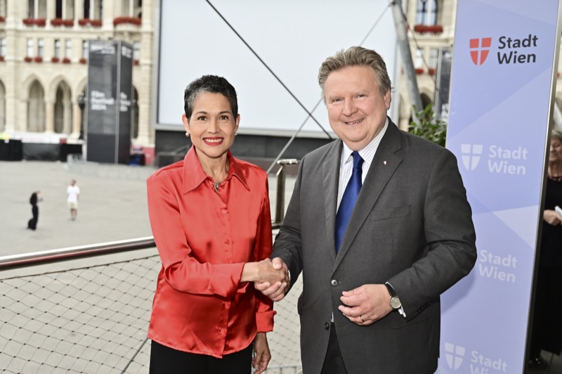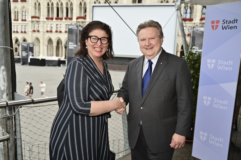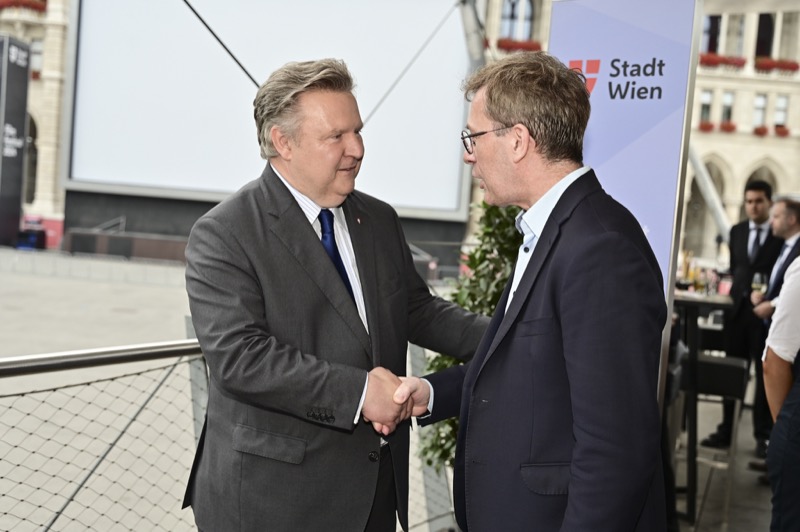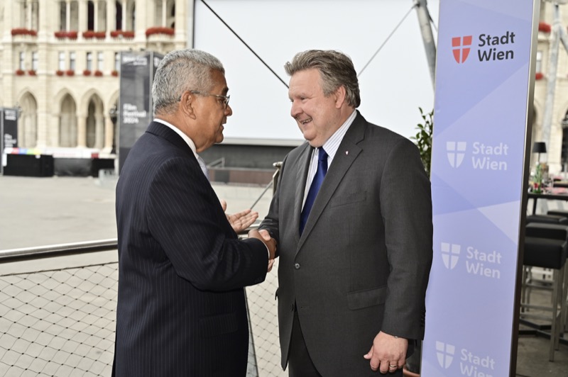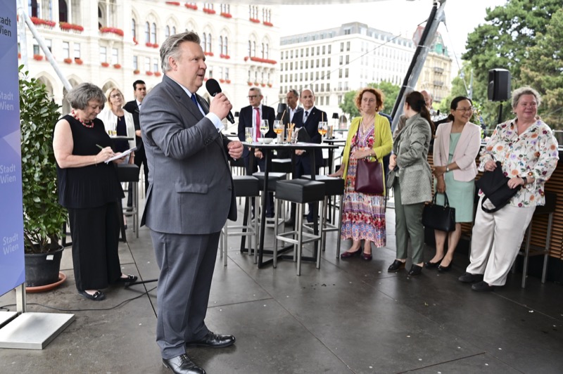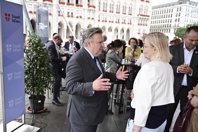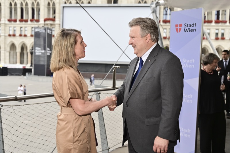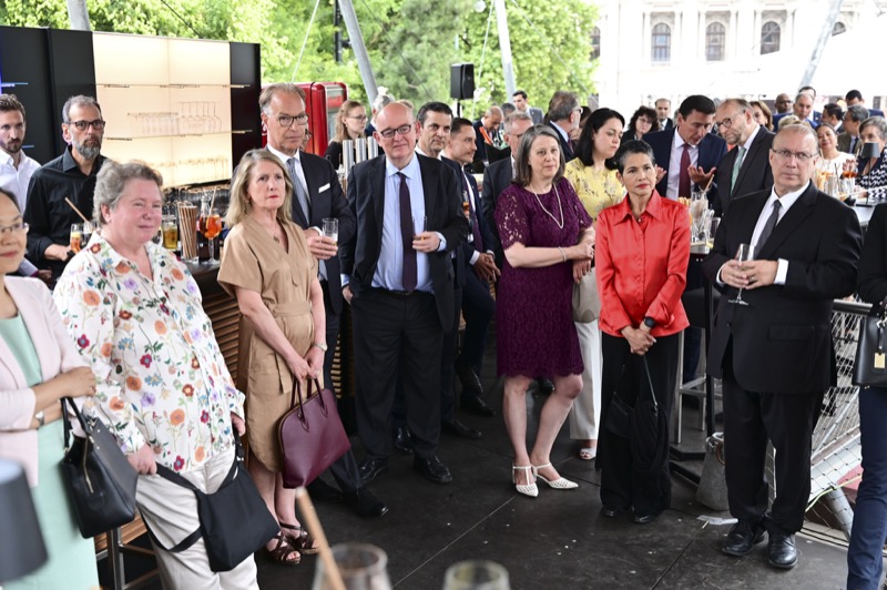 Im Rahmen des 34. Filmfestivals am Rathausplatz lud Wiens Bürgermeister Michael Ludwig zum Empfang für das Diplomatische Corps in Wien in die Summer Lounge von Do & Co. Im Sommer ist der Rathausplatz wieder pulsierender Open-Air-Treffpunkt: Das Film Festival bringt bei freiem Eintritt noch bis 1. September musikalische Hochkaräter aus Oper, Klassik, Jazz und Pop/Rock sowie kulinarische Genüsse bei 26 Gourmetständen.