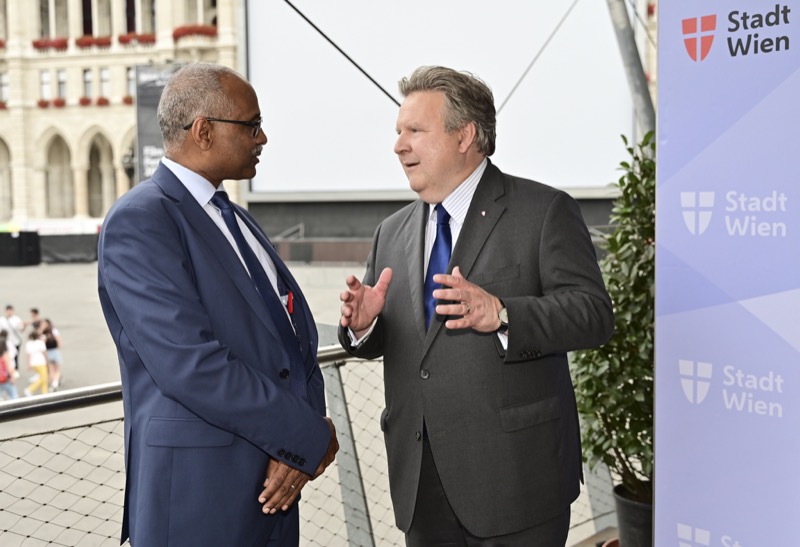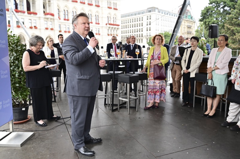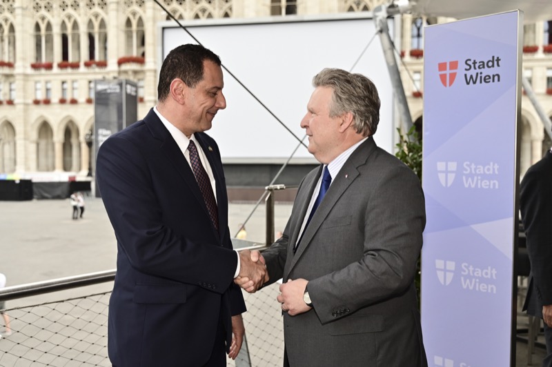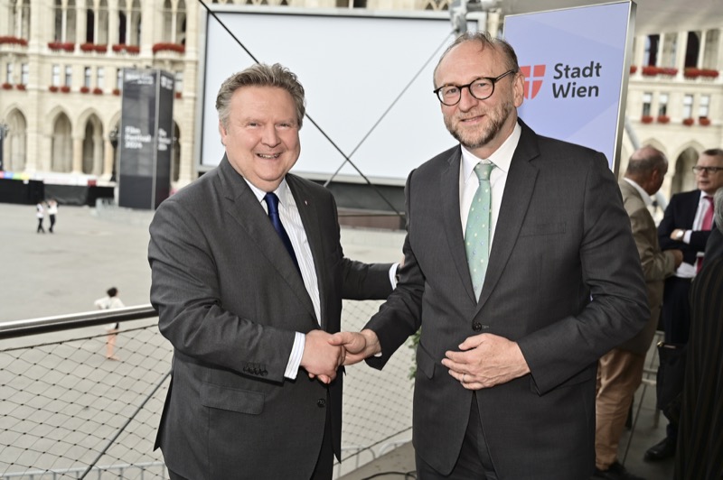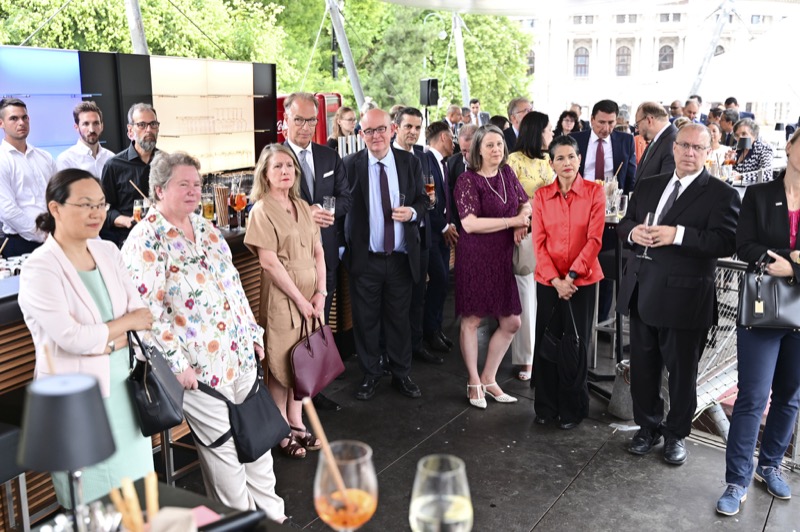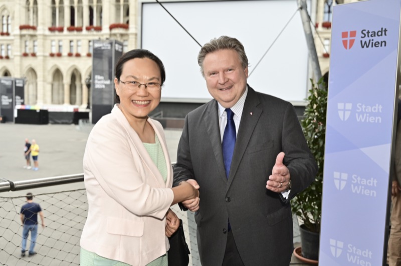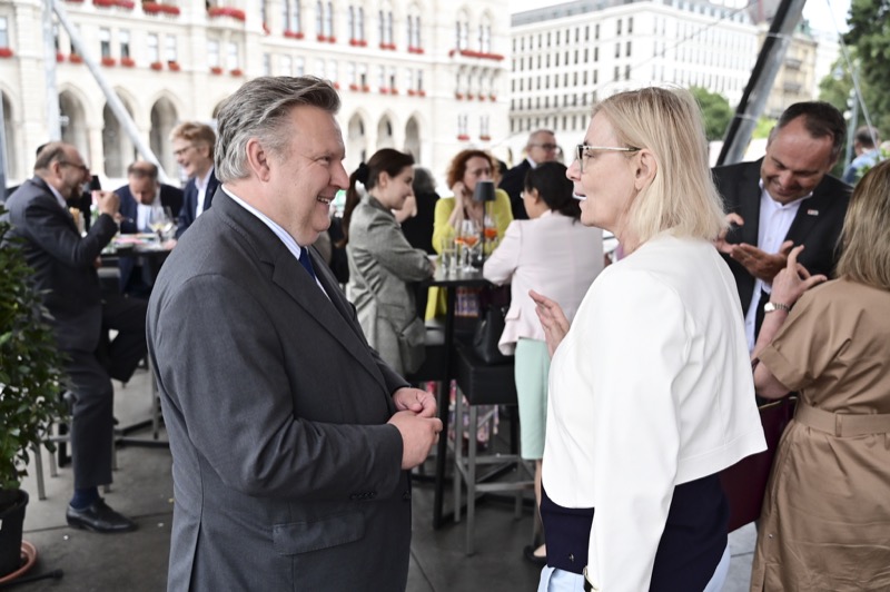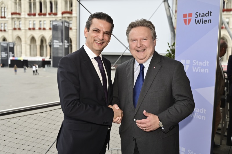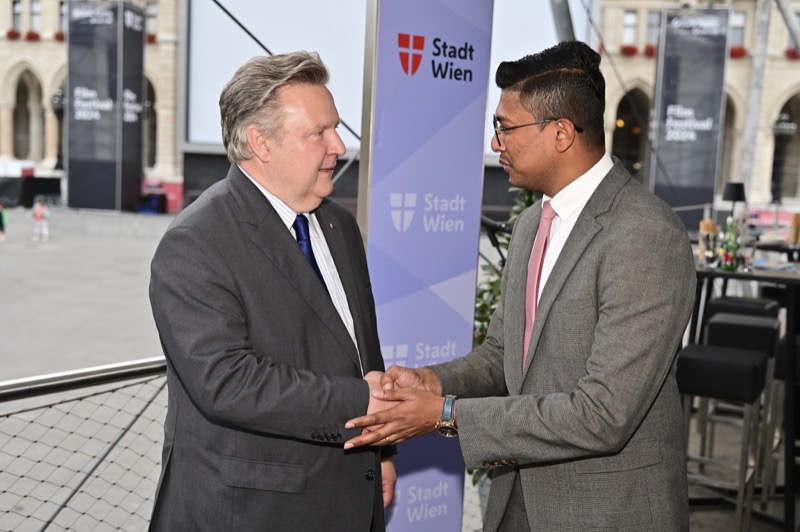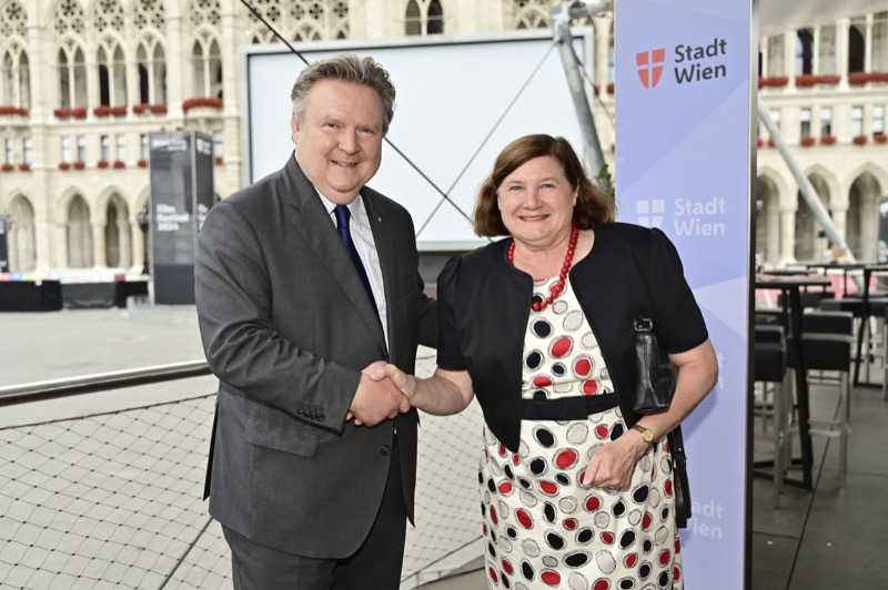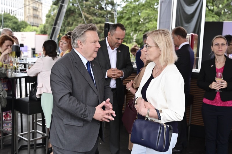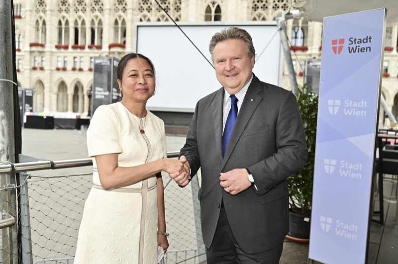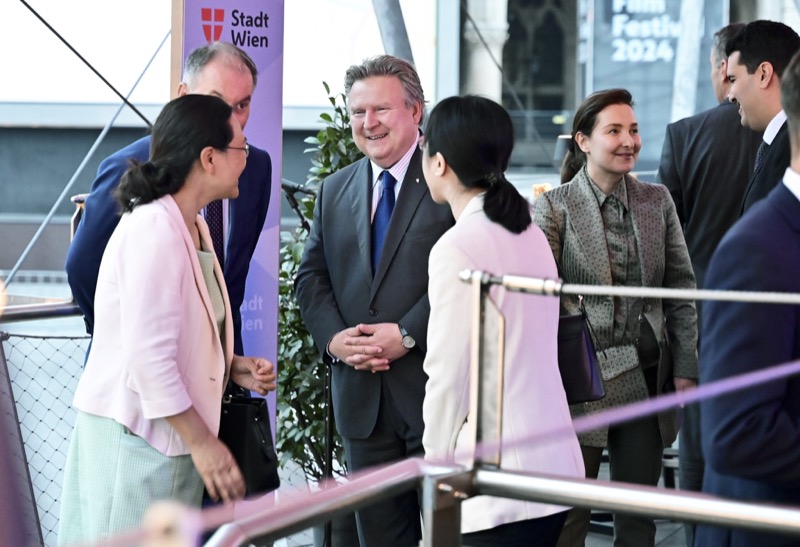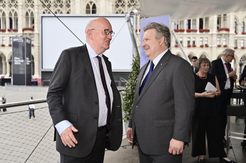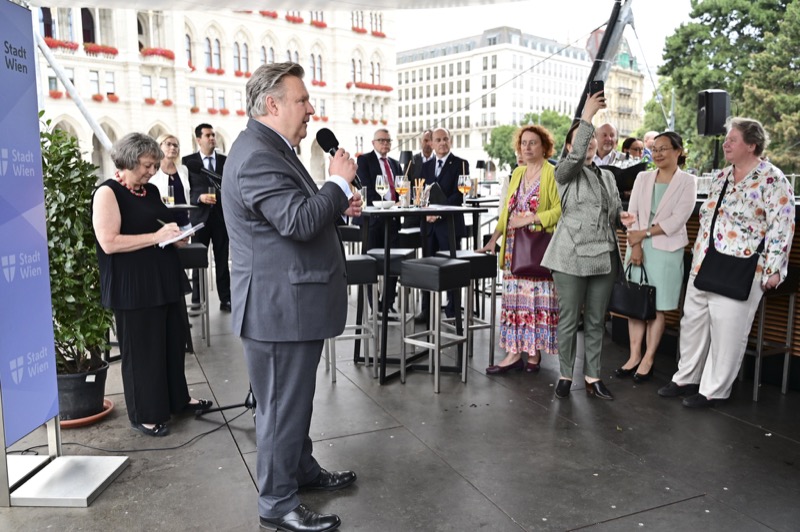 Im Rahmen des 34. Filmfestivals am Rathausplatz lud Wiens Bürgermeister Michael Ludwig zum Empfang für das Diplomatische Corps in Wien in die Summer Lounge von Do & Co. Im Sommer ist der Rathausplatz wieder pulsierender Open-Air-Treffpunkt: Das Film Festival bringt bei freiem Eintritt noch bis 1. September musikalische Hochkaräter aus Oper, Klassik, Jazz und Pop/Rock sowie kulinarische Genüsse bei 26 Gourmetständen.