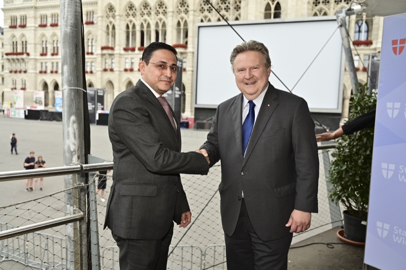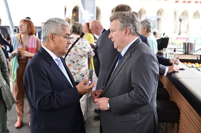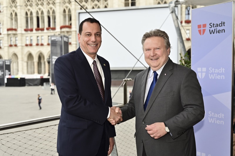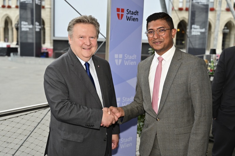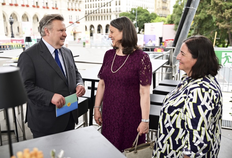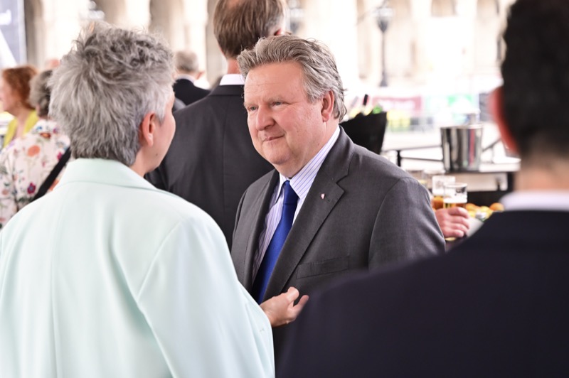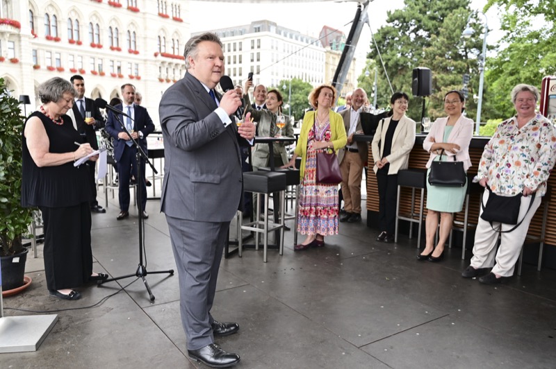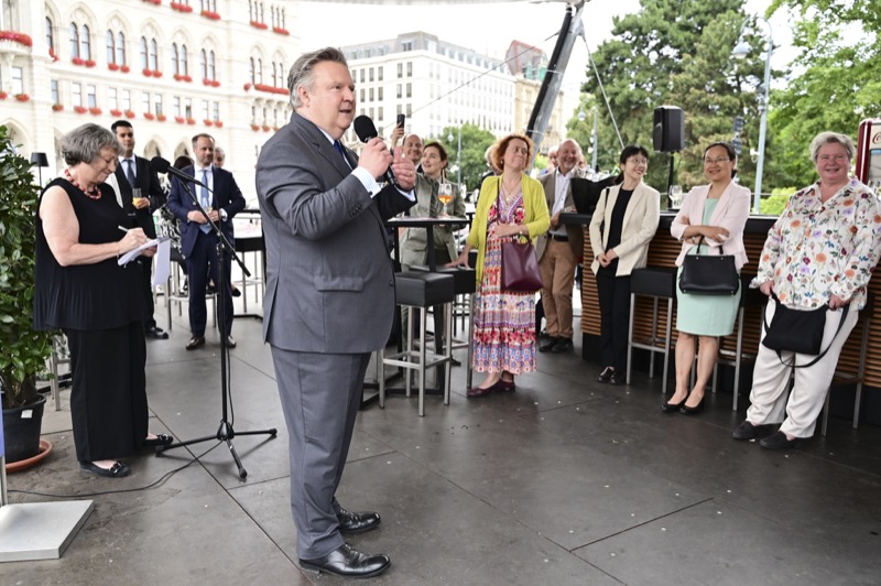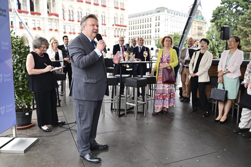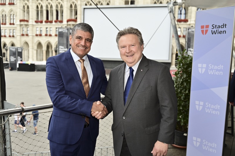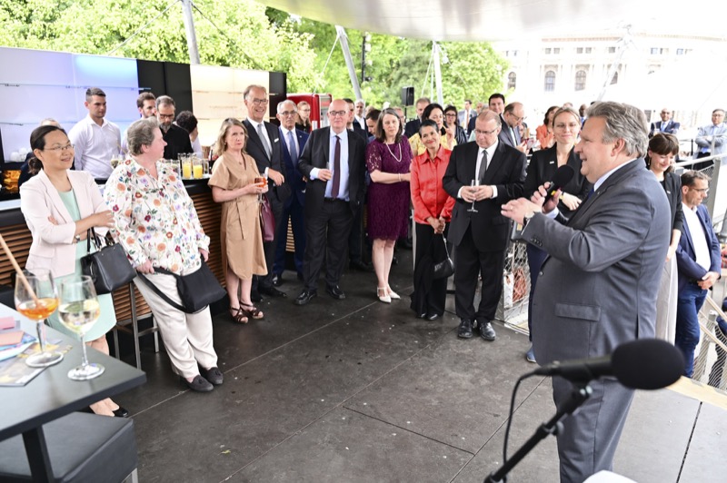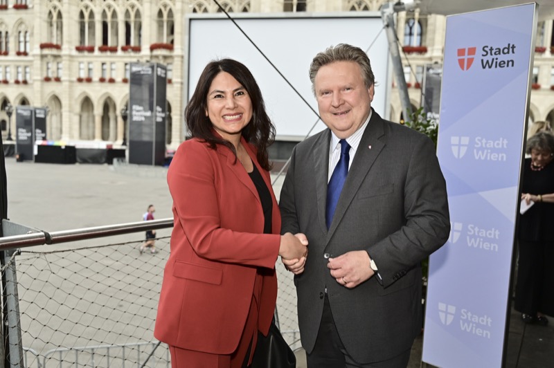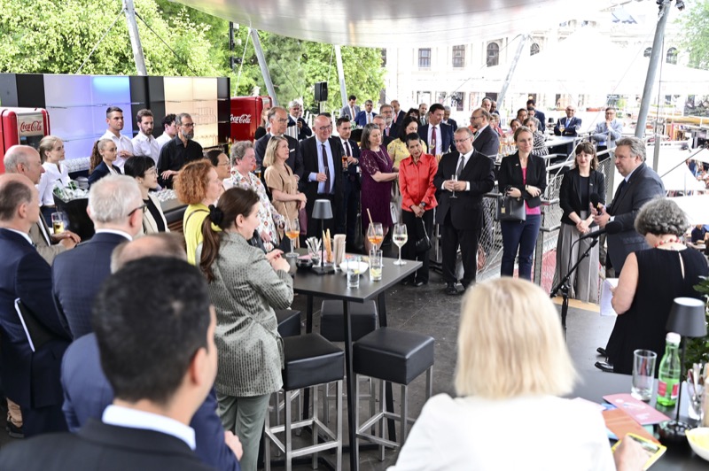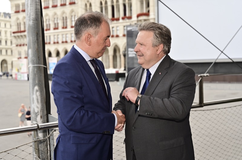 Im Rahmen des 34. Filmfestivals am Rathausplatz lud Wiens Bürgermeister Michael Ludwig zum Empfang für das Diplomatische Corps in Wien in die Summer Lounge von Do & Co. Im Sommer ist der Rathausplatz wieder pulsierender Open-Air-Treffpunkt: Das Film Festival bringt bei freiem Eintritt noch bis 1. September musikalische Hochkaräter aus Oper, Klassik, Jazz und Pop/Rock sowie kulinarische Genüsse bei 26 Gourmetständen.