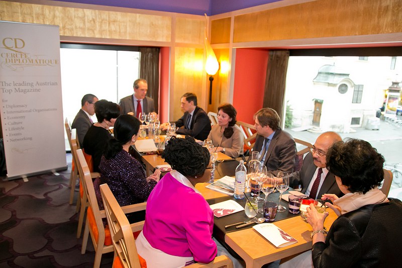 Cercle Diplomatique und Patara Fine Thai Cuisine luden zu Ehren der erst kürzlich neu akkreditierten Botschafter zum "Ambassadors Lunch" im kleinen Kreis in das Restaurant Patara, wo die Botschafter nicht nur eine Auswahl der köstlichen thailändischen Küche kennenlernen konnten, sondern auch die neuen Botschafter-Kollegen aus aller Welt. Begrüssen konnten wir die Exzellenzen aus Burkina Faso, dem Kosovo, den Philippinen, Rumänien, Kuba, Malaysia und Panama sowie Frau Regierungsrätin Mag. Mantsch aus dem Aussenministerium.