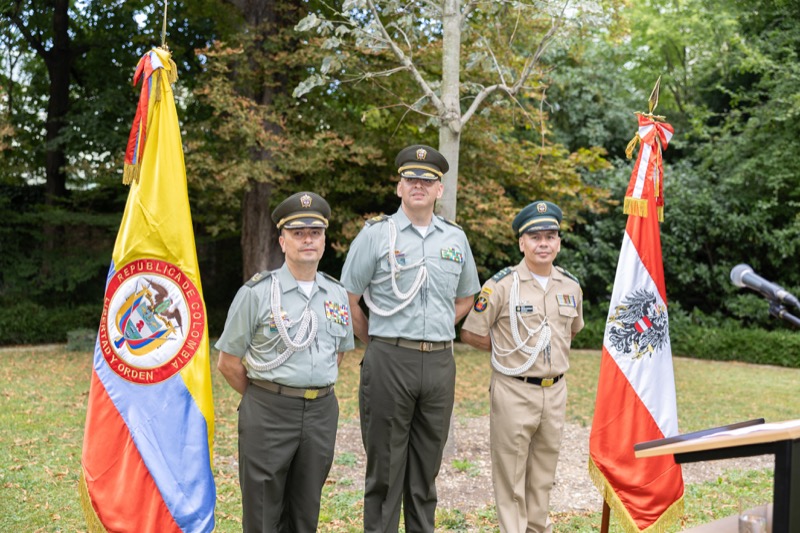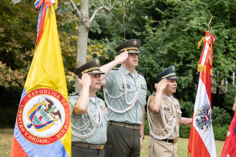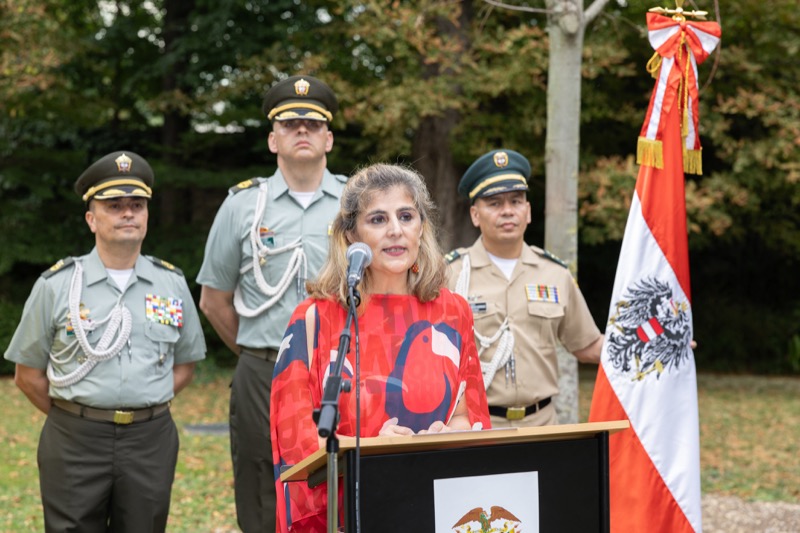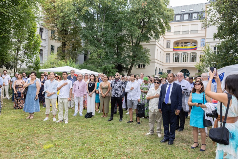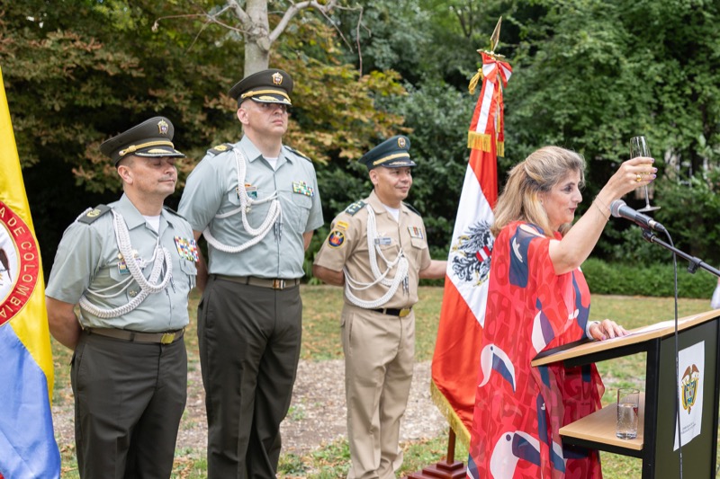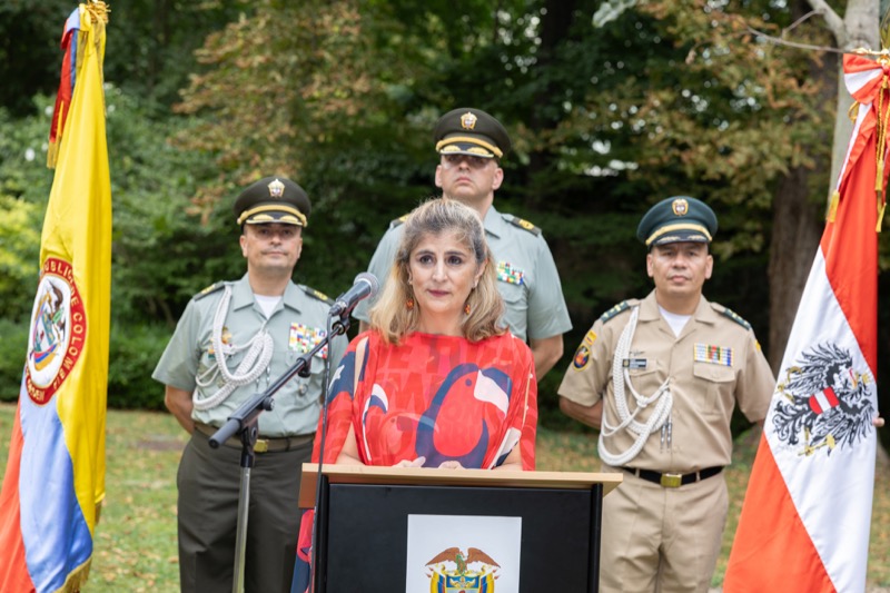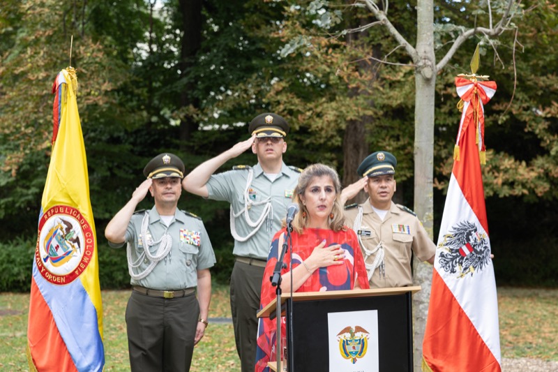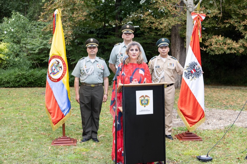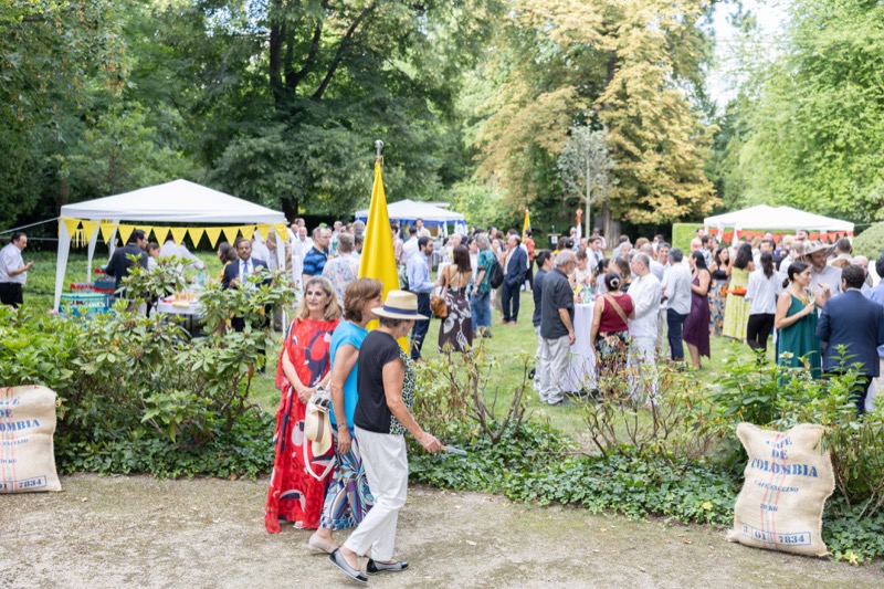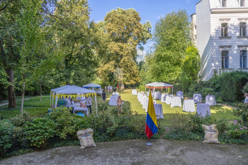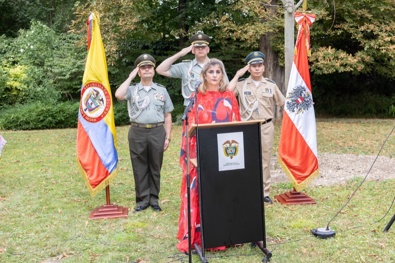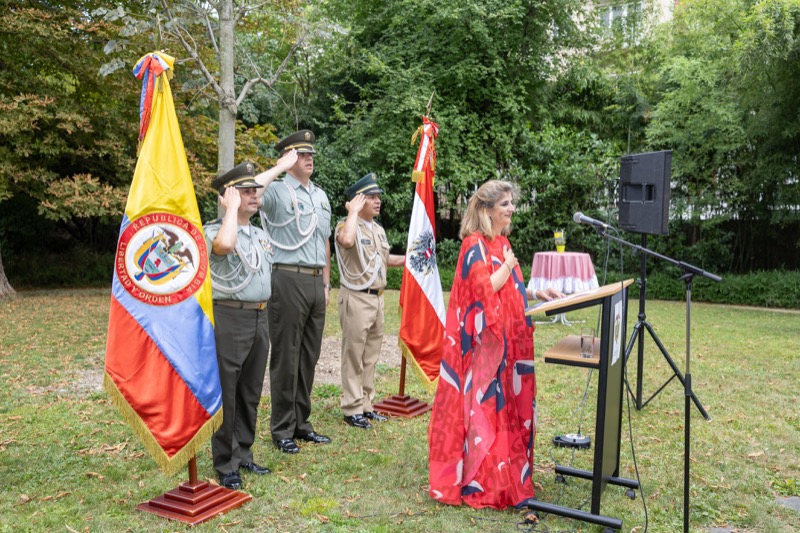 I.E. Laura Gil, Botschafterin von Kolumbien in Österreich, lud anlässlich des Nationalfeiertages der Republik Kolumbien zu einem Empfang in den Garten der Residenz.