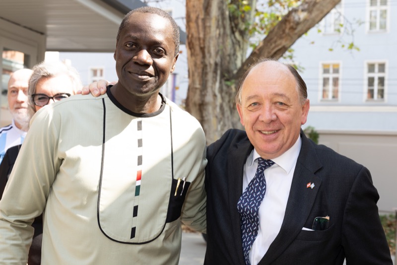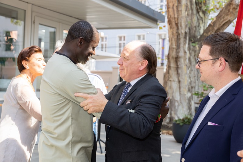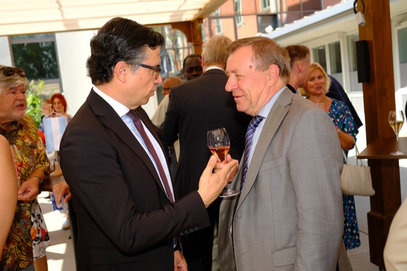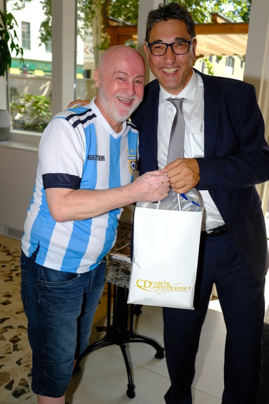 Nach den Begrüssungsworten von "Hausherr" Jürgen Fleischhacker, von Herausgeber Alexander Bursky sowie des Gesandten Christoph Meyenburg, Stv. Protokollchef des Aussenministeriums und der Rede von unserem Ehrengast S.E. Holger Federico Martinsen, Botschafter der Republik Argentinien in Österreich, wurde als kleine Erinnerung ein Delikatessenkorb aus dem Hause Schenkel an Herrn Botschafter Martinsen überreicht.