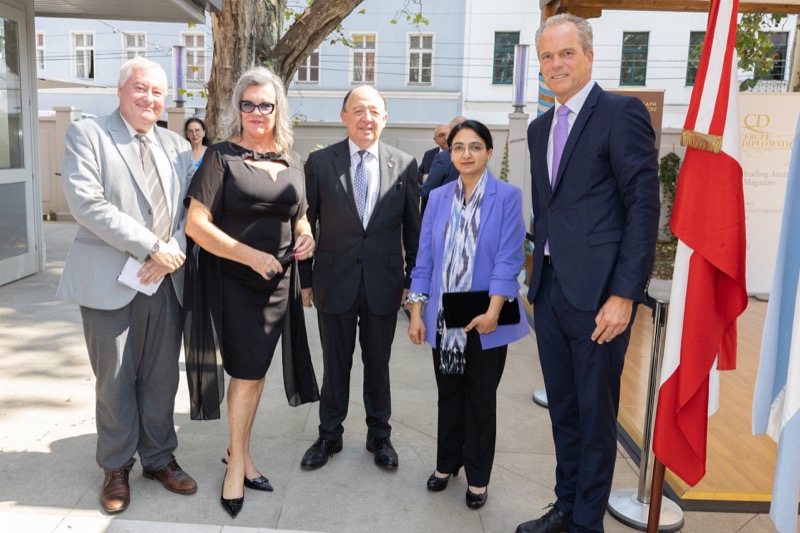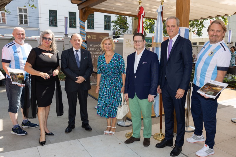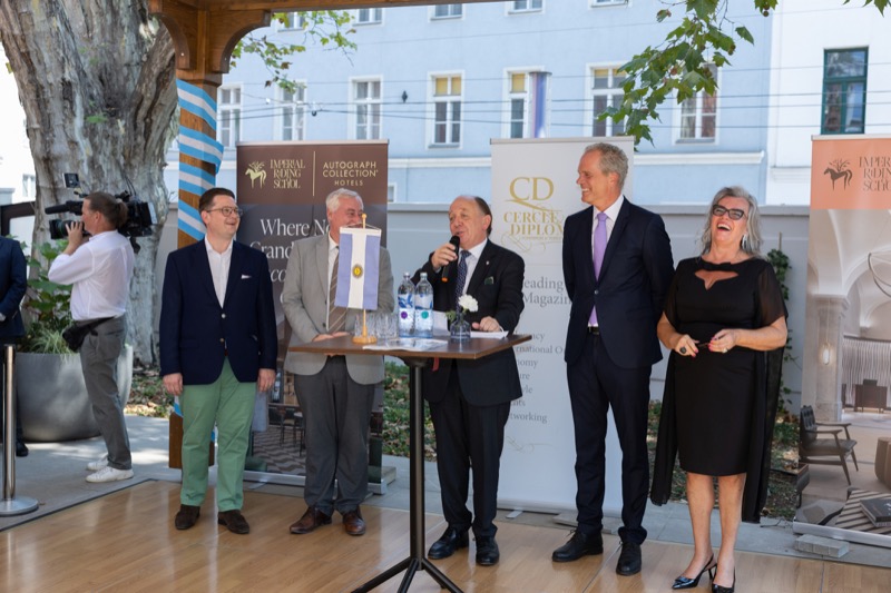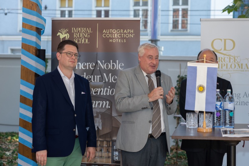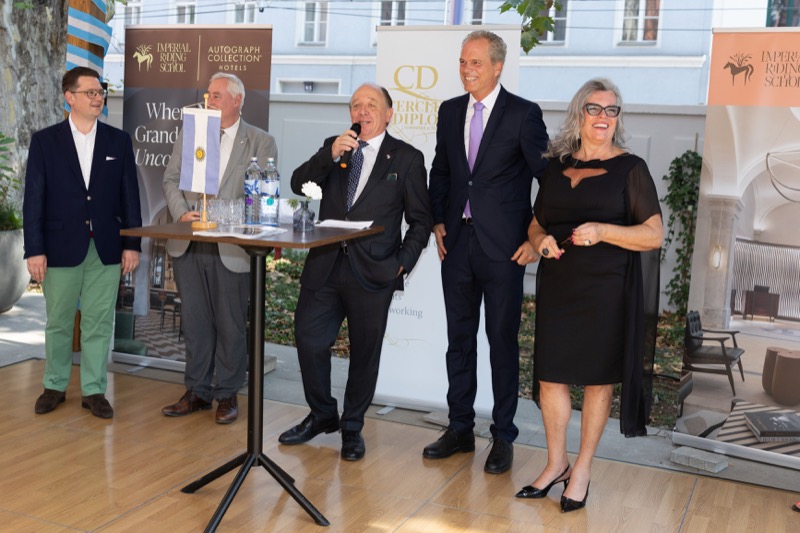 Bei prachtvollem Wetter luden die Herausgeber von CERCLE DIPLOMATIQUE, Andrea Fürnweger und Alexander Bursky, zur Präsentation der Herbstausgabe des Magazins mit der Coverstory über Argentinien. Gemeinsam mit General Manager Jürgen Fleischhacker konnten wir unsere Gäste diesmal im wunderschönen Garten des erst kürzlich komplett renovierten Hotels "Imperial Riding School, Autograph Collection"empfangen.