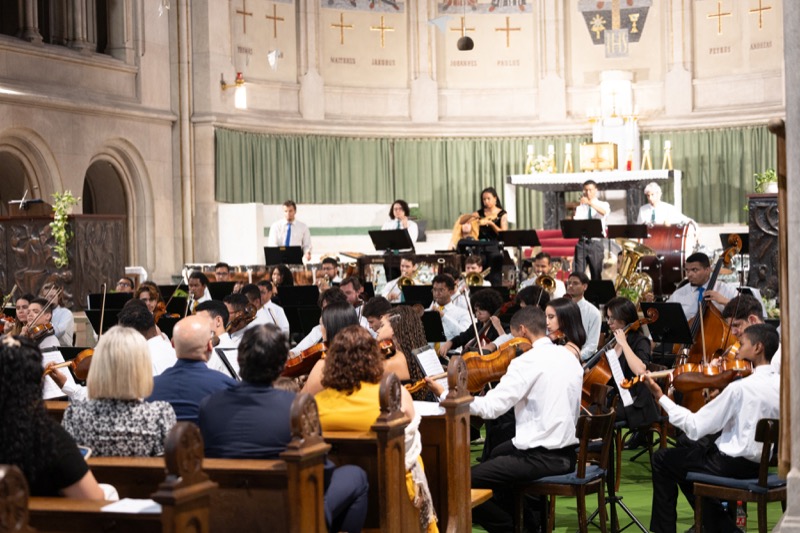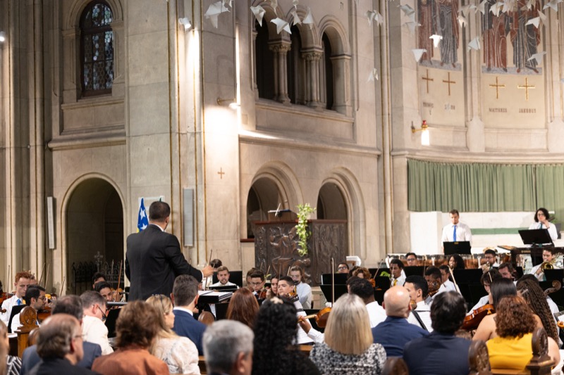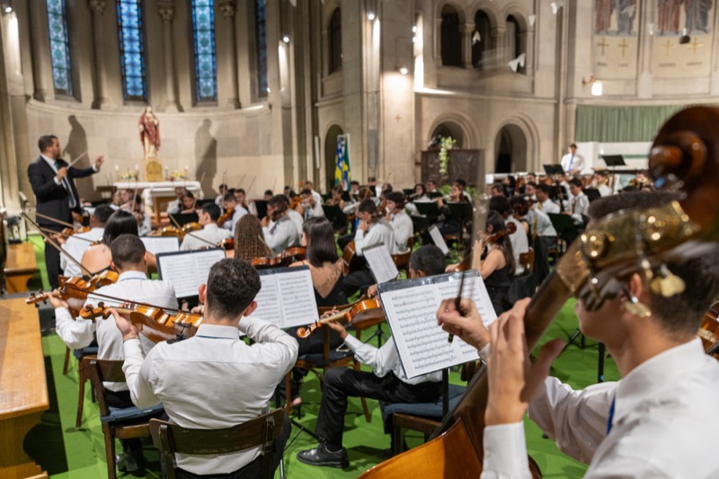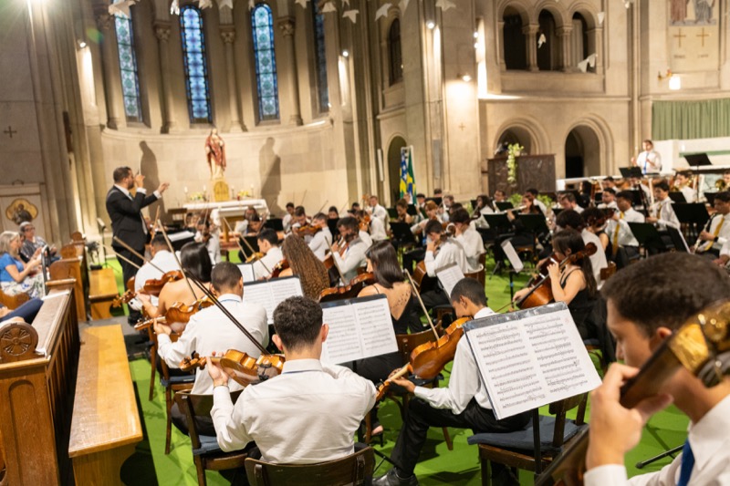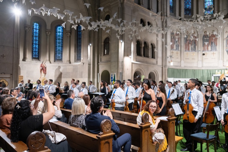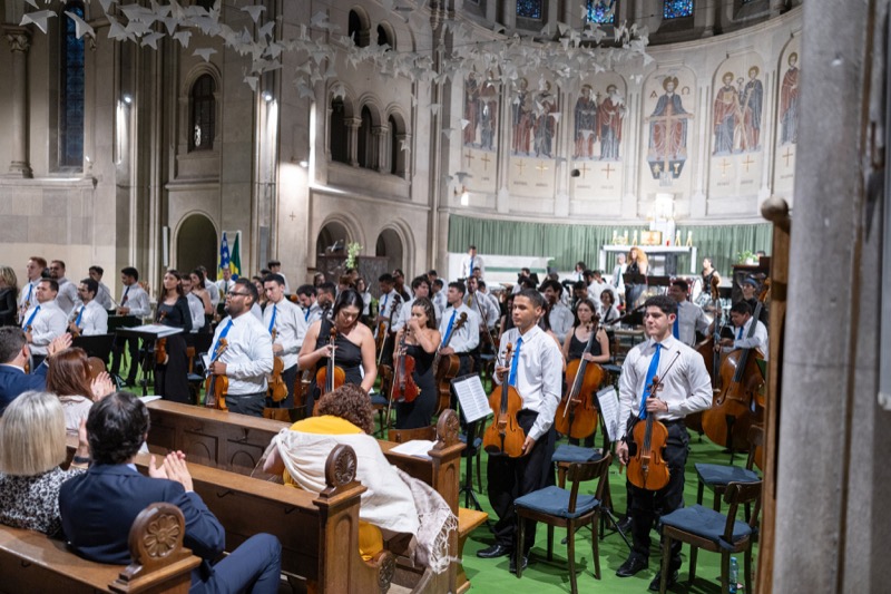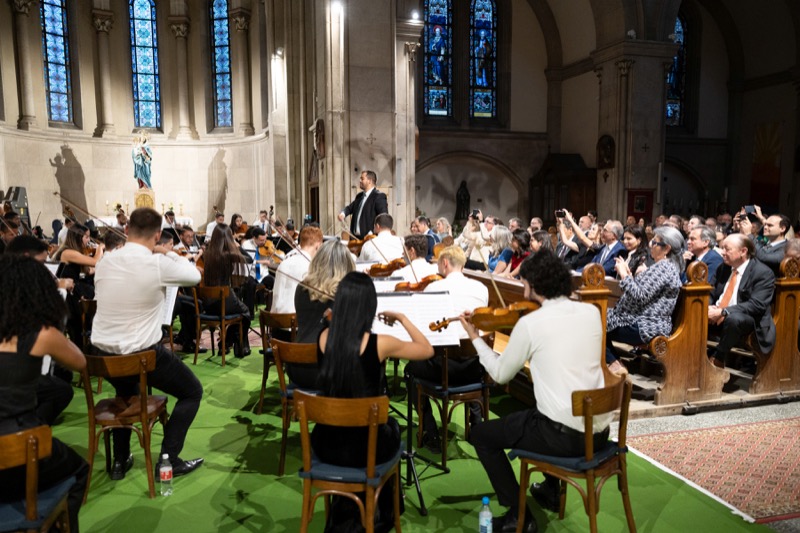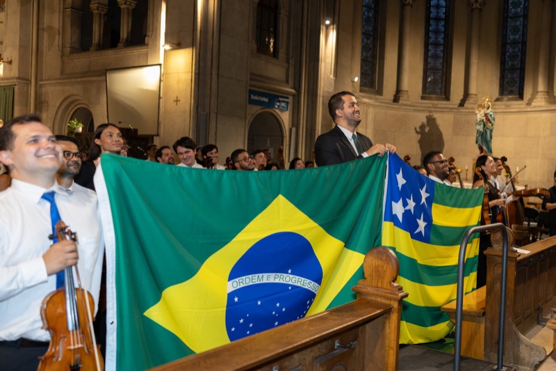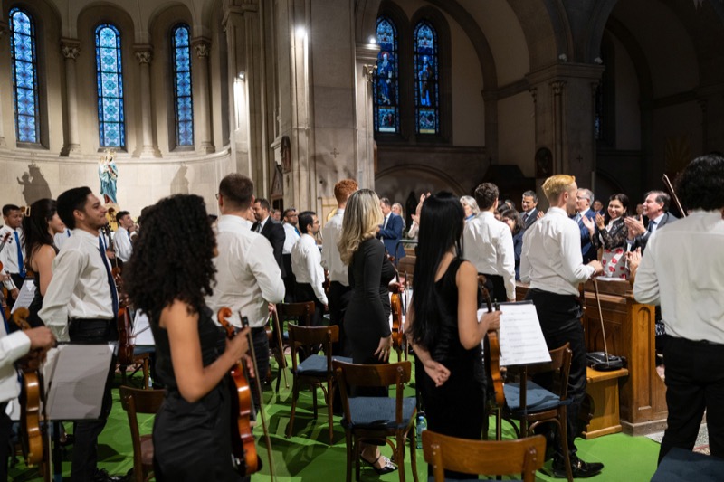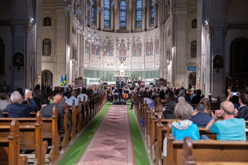 Anlässlich des 202. Unabhängigkeitstages luden S.E. Nelson Antonio Tabajara de Oliveira, Botschafter von Brasilien in Österreich und ständiger Vertreter bei den internationalen Organisationen, und Ana Maria Leonardos sowie I.E. Claudia Vieira Santos, Botschafterin bei der IAEA und PrepCom-CTBTO, zu einem Konzert des Jugend-Symphonie Orchesters von Goiás in die St. Canisius Kirche.