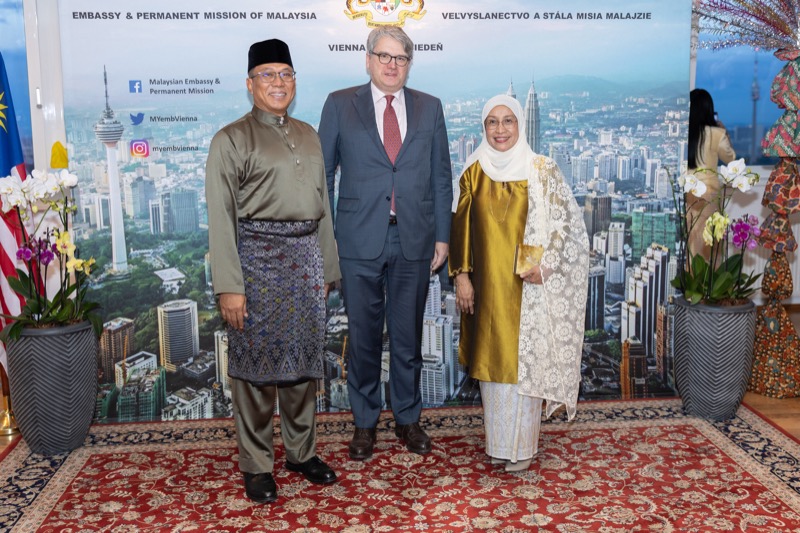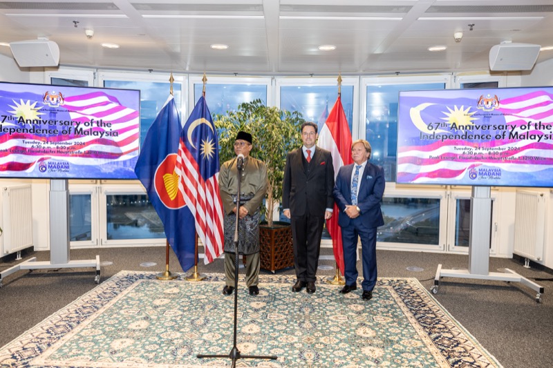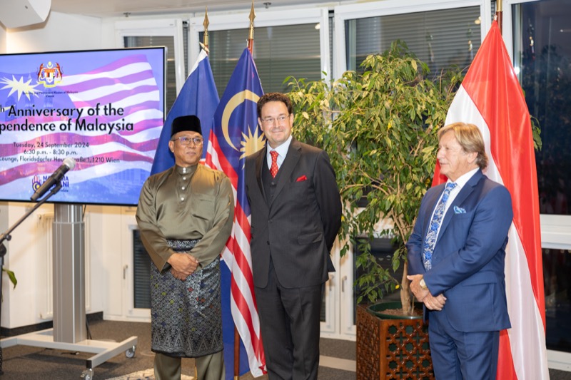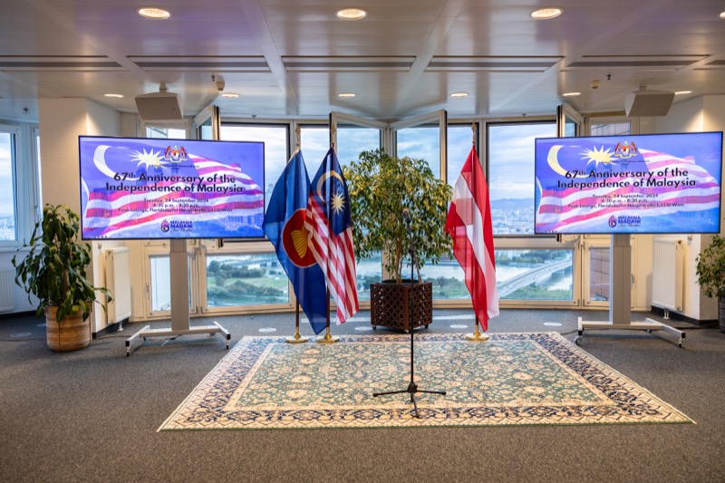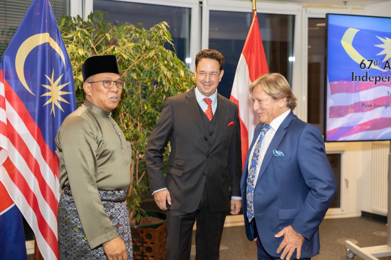 Anlässlich des 67. Jahrestages der Unabhängigkeit Malaysias luden der Botschafter und Ständige Vertreter von Malaysia, S.E. Herr Ikram Bin Mohammad Ibrahim, und Frau Noor Azida Binti Azmi zu einem Empfang in die Peak Lounge.
