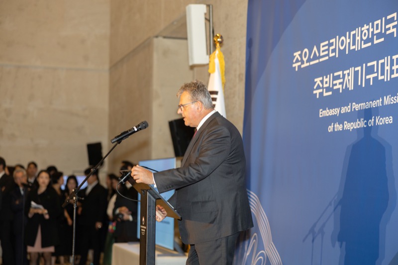 Anlässlich des Nationalfeiertages der Republik Korea lud der Botschafter und Ständige Vertreter S.E. Botschafter Sang Wook HAM zu einem Empfang in das Atrium des Leopold Museums.