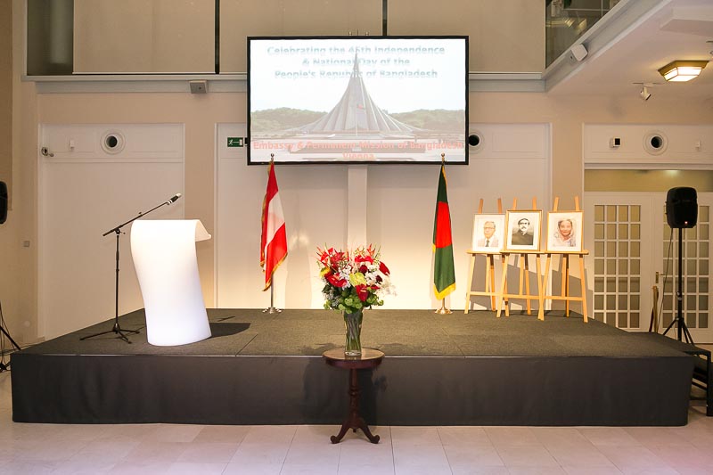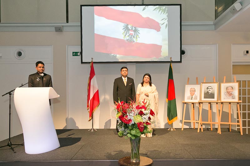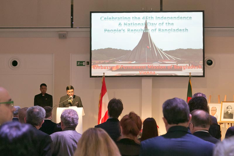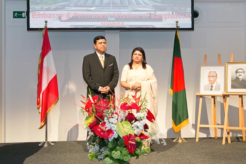 Anlässlich des Nationalfeiertages lud S.E. Abu Zafar, Botschafter der Volksrepublik Bangladesch, mit Frau Salma Ahmed Zafar zu einem Empfang in das Novomatic Forum.