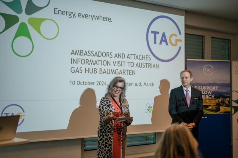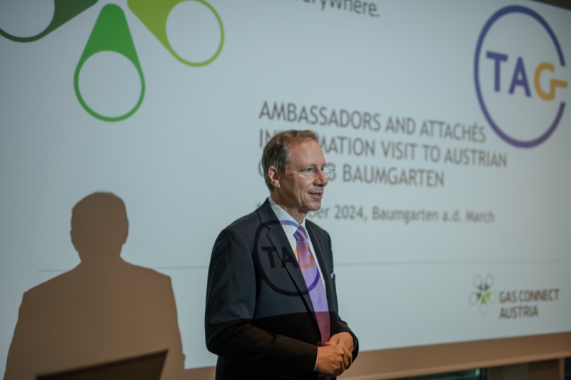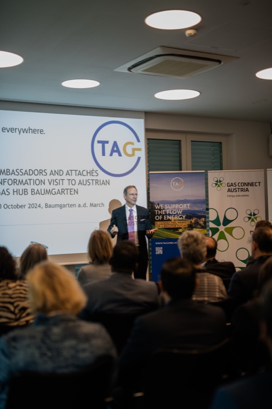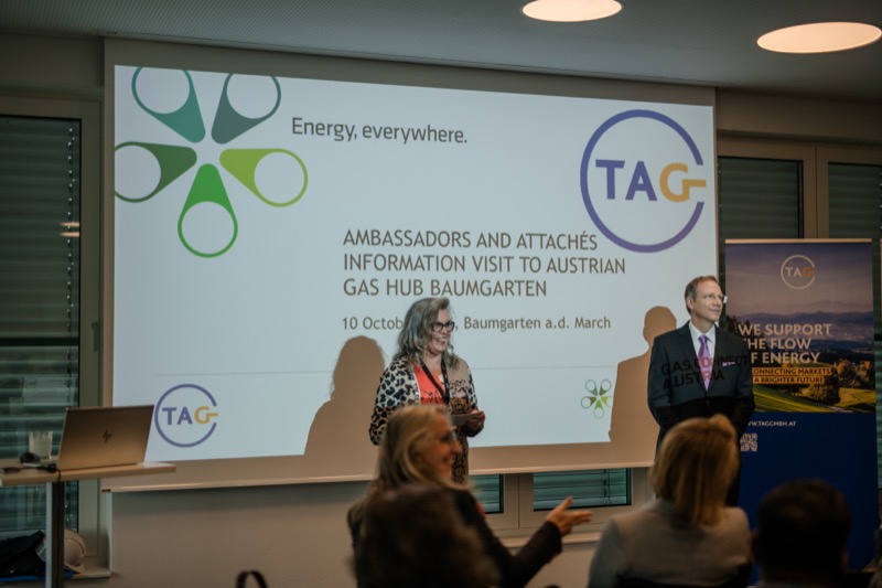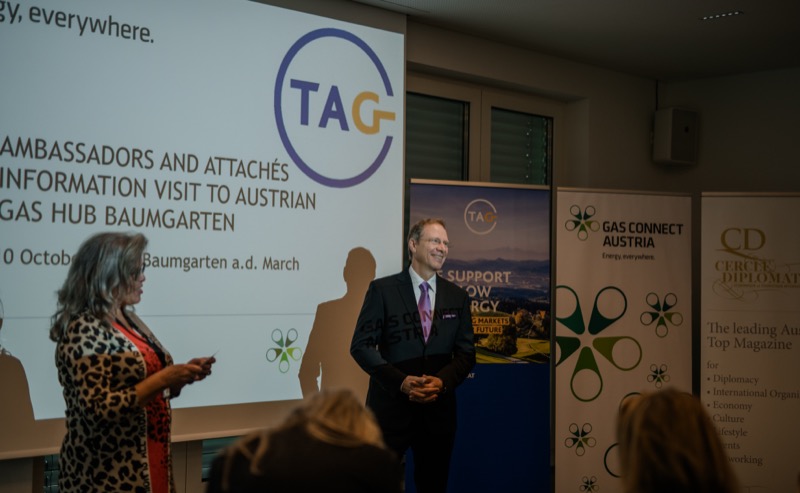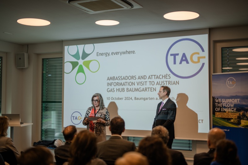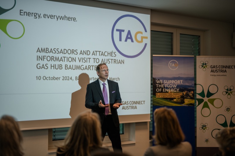 Am 10. Oktober luden Gas Connect Austria und TAG gemeinsam mit CERCLE DIPLOMATIQUE und dem CDW zu einer Exkursion in die Gasstation Baumgarten, einer bedeutenden Drehscheibe für Erdgas in Europa. Die hochrangige Delegation internationaler Diplomaten aus über 35 Ländern informierte sich über die zentrale Rolle Österreichs im europäischen Gaskontext.