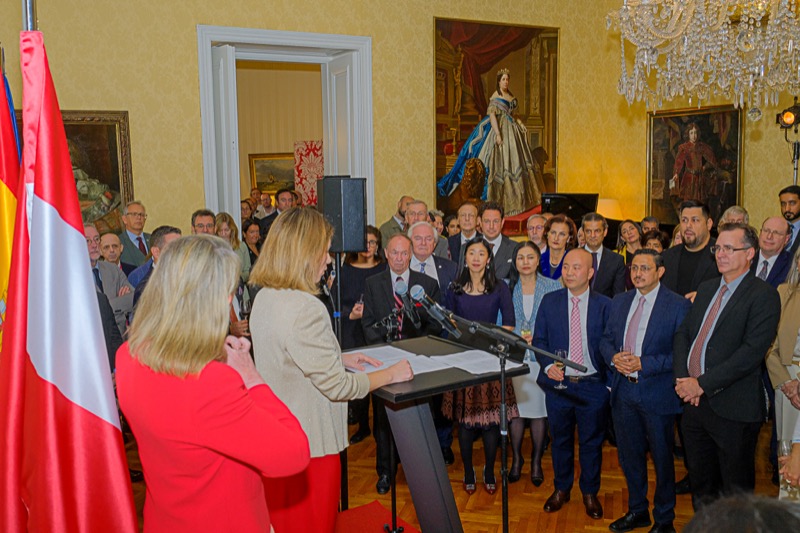 Die Botschafterin des Königreichs Spanien in Österreich, I.E. Aurora Mejía, und die Ständige Vertreterin Spaniens bei den internationalen Organisationen in Wien, I.E. Maria Sebastián de Erice, luden anlässlich des spanischen Nationalfeiertages zu einem Empfang in die Botschaft.