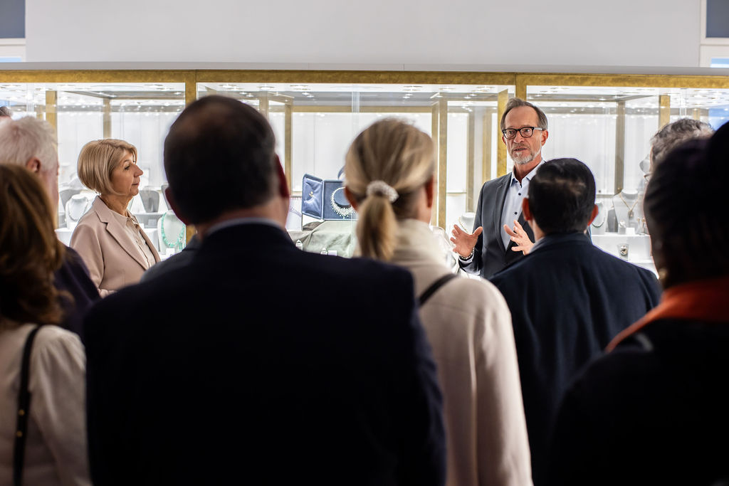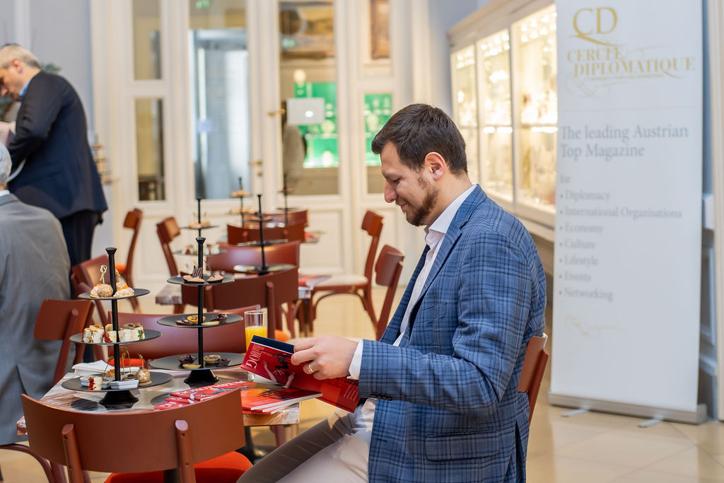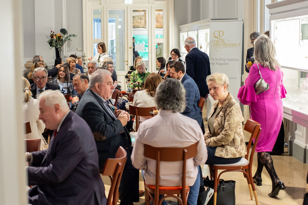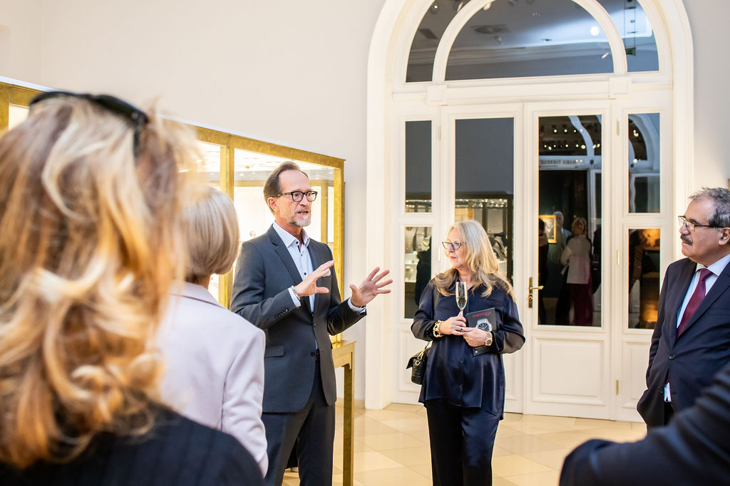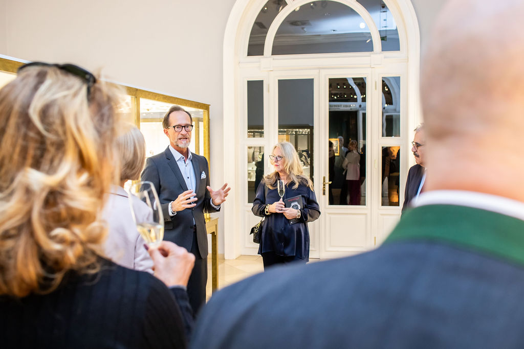 Andrea Fürnweger, Herausgeberin von CERCLE DIPLOMATIQUE, und Martin Böhm, Geschäftsführer des DOROTHEUM, luden Botschafter, Kunden und Partner vergangenen Samstag zu einem ganz besonderen Event in die prachtvollen Räumlichkeiten des Dorotheums, einem der ältesten und führenden Auktionshäusern der Welt. Nach dem Motto "Champagne Breakfast - Modern & Contemporary Art, Jewels and Watches" gab es für die rund 50 Gäste eine exklusive Tour mit den Experten des Hauses und im Anschluss ein prickelndes Champagner-Frühstück im Cafe Dorotheum.