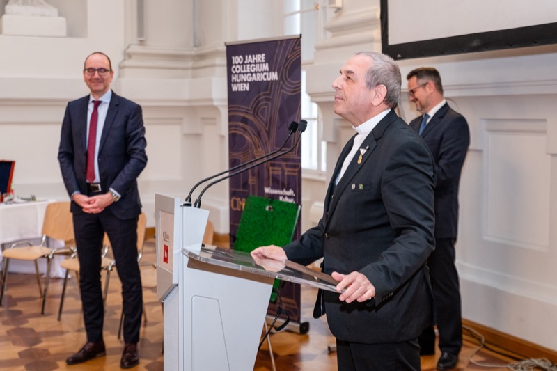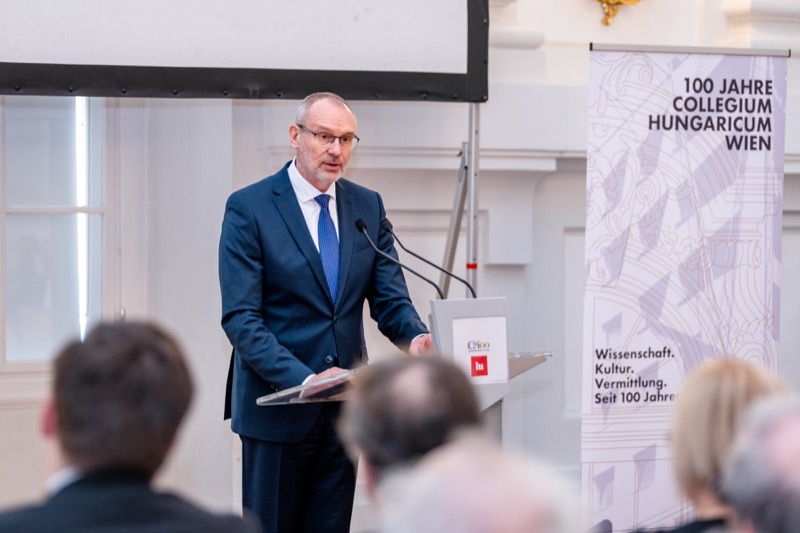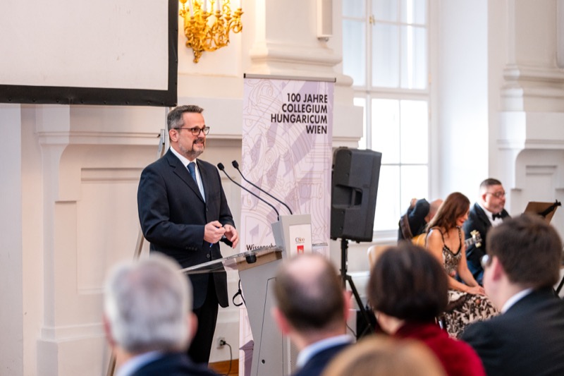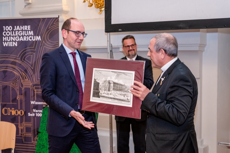 Das wohl älteste ausländische Institut für Wissenschafts- und Kulturvermittlung in Österreich, das Collegium Hungaricum Wien, lud anlässlich der 100-Jahr Feier zu einem Festakt in den Festsaal des Bundesministeriums für Justiz, dem Palais Trautson (ehem. Sitz des Collegium Hungaricum). Nach der Begrüßung durch Dr. Márton Méhes, Direktor des Collegium Hungaricum Wien, und verschiedenen Vorträgen mit musikalischer Umrahmung, gab es im Anschluss noch einen Empfang für die Gäste.