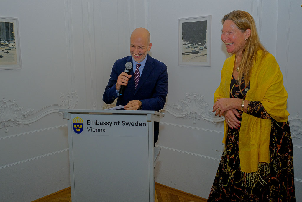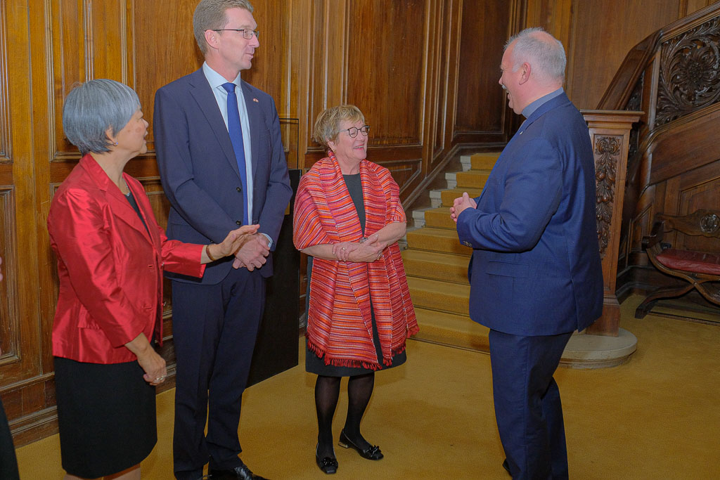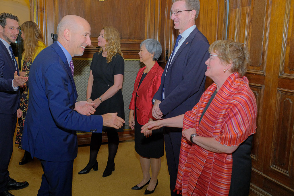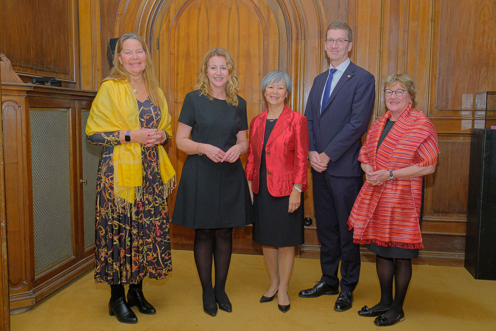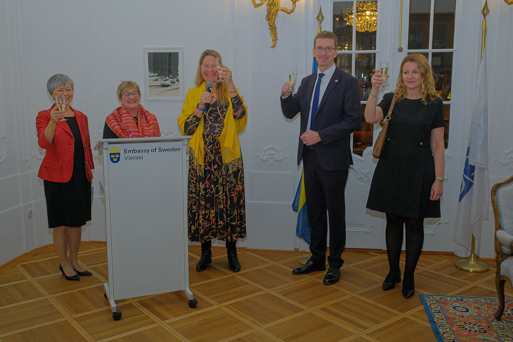 Die BotschafterInnen der Nordischen Länder, I.E. Annika Markovic (Schweden), I.E. Susan Eckey (Norwegen), S.E. Christian Grønbech-Jensen (Dänemark), I.E. Helga Hauksdóttir (Island) und I.E. Nina Vaskunlathi (Finnland) luden zum Nordischen Empfang. Anlass ist der Vorsitz Schwedens im Nordischen Ministerrat und die bevorstehende Übergabe an Finnland.