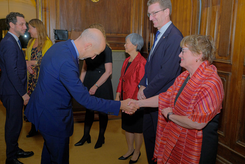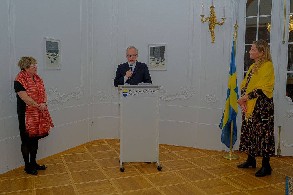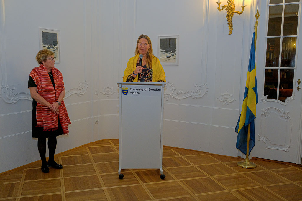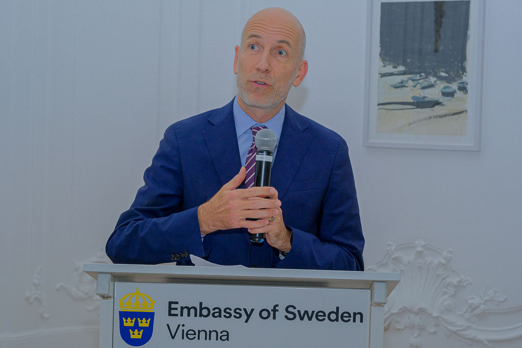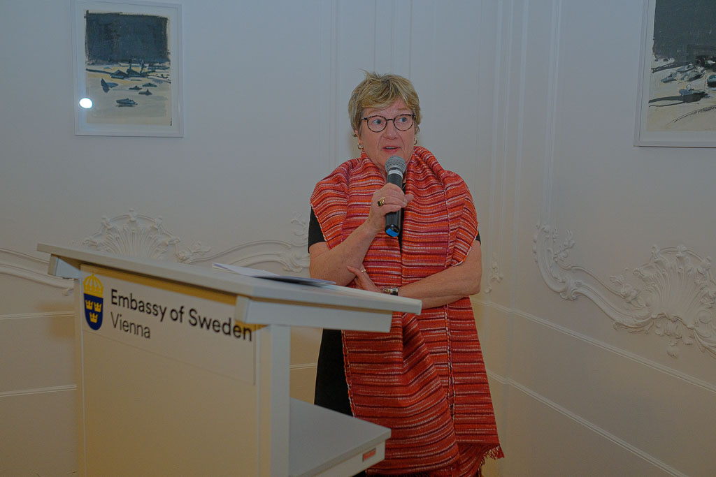 Die BotschafterInnen der Nordischen Länder, I.E. Annika Markovic (Schweden), I.E. Susan Eckey (Norwegen), S.E. Christian Grønbech-Jensen (Dänemark), I.E. Helga Hauksdóttir (Island) und I.E. Nina Vaskunlathi (Finnland) luden zum Nordischen Empfang. Anlass ist der Vorsitz Schwedens im Nordischen Ministerrat und die bevorstehende Übergabe an Finnland.