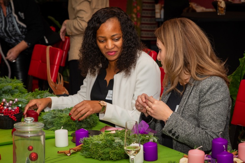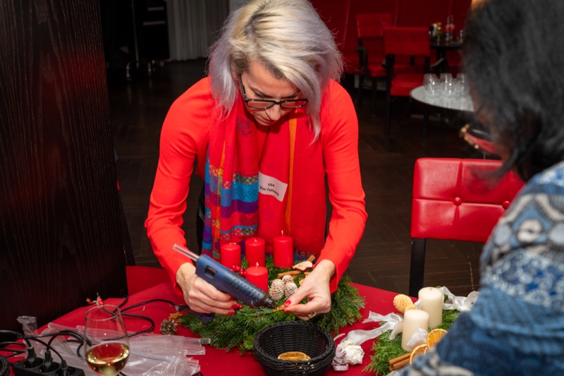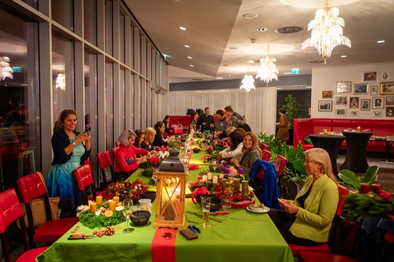 Andrea Fürnweger, Herausgeberin von CERCLE DIPLOMATIQUE, lud gemeinsam mit Direktor Dieter Prachner persönliche AssistentInnen und Protokoll-MitarbeiterInnen der Botschaften zum traditionellen vorweihnachtlichen get-together in das Arcotel Kaiserwasser. Zur Begrüßung wurden Maroni und ausgezeichneter Punsch gereicht, danach konnten die Damen ihre individuellen Adventkränze gestalten.