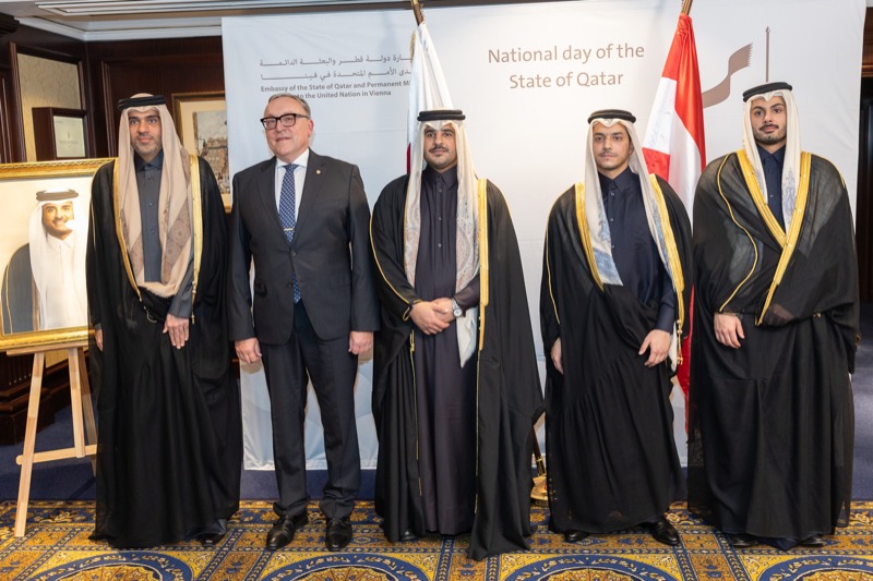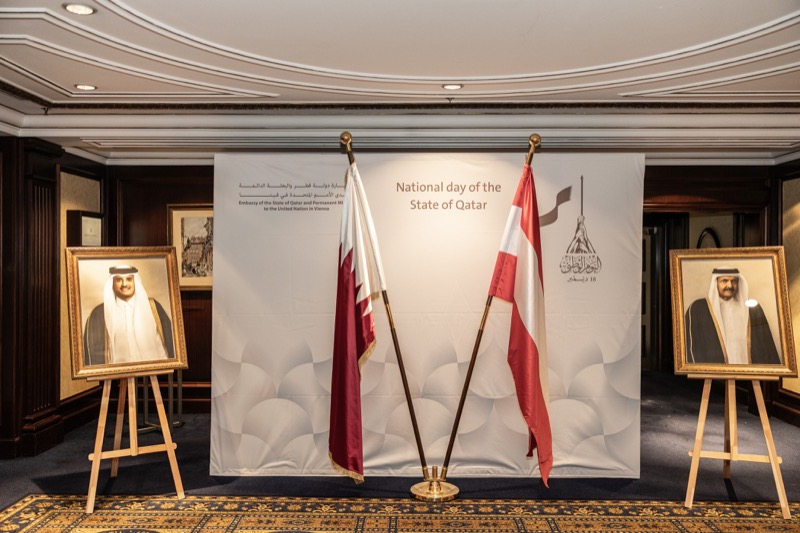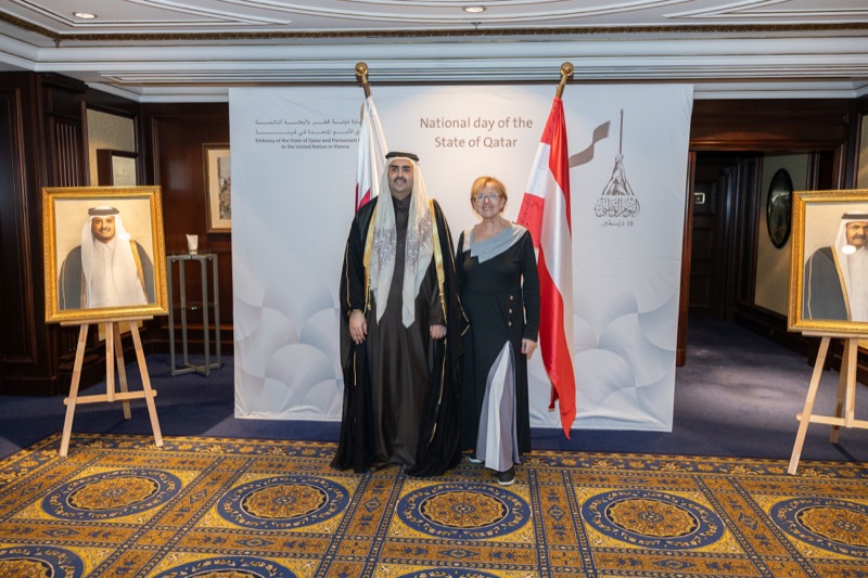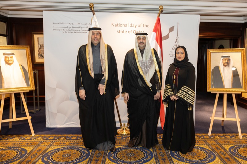 Anlässlich des Nationalfeiertages von Katar lud S.E. Jassim Yaaqob Al Hamadi, Botschafter von Katar und ständiger Vertreter bei den Vereinten Nationen und internationalen Organisationen in Wien, und Frau Maryam Mohamed Aldoseri zu einem Empfang in das InterContinental Wien.