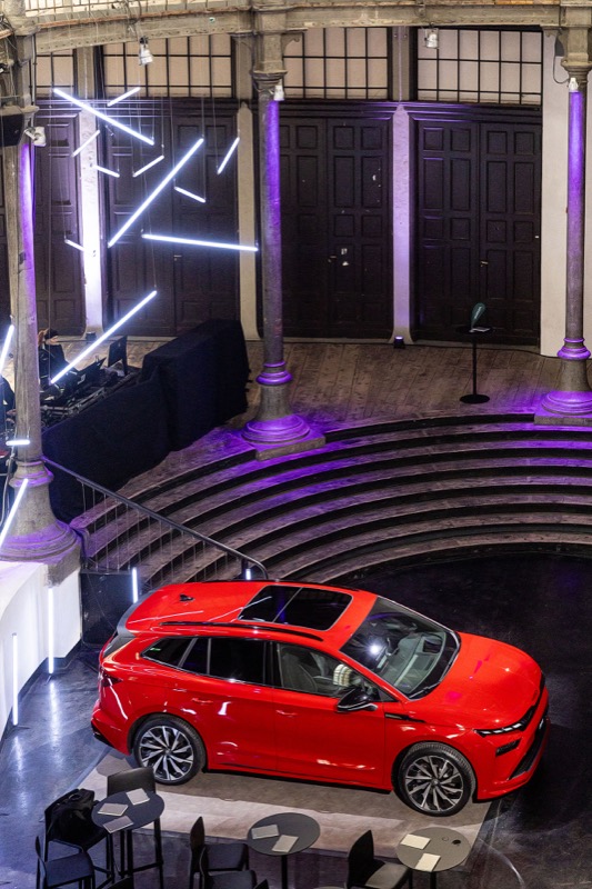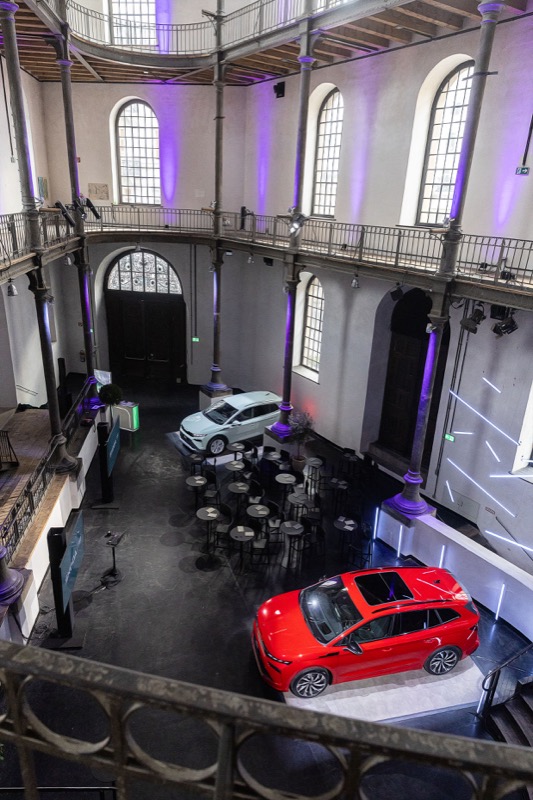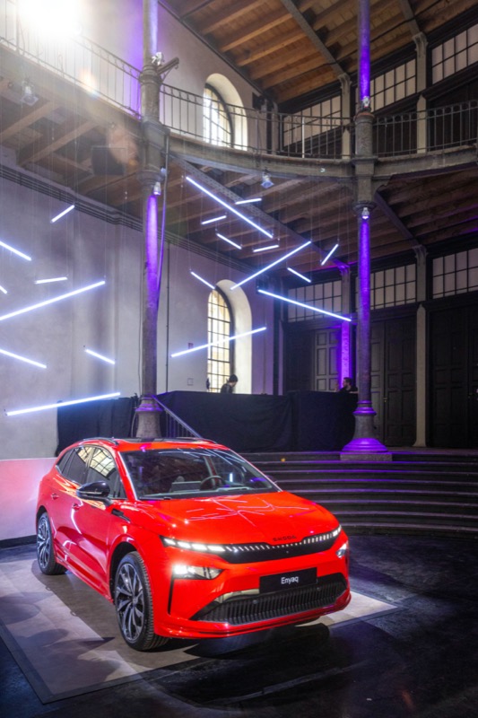 Škoda lud Vertreter der Presse zur Präsentation des neuen rein elektrischen Modells im wichtigen Segment der Kompakt-SUV in das Semperdepot in Wien, dem Škoda Enyaq.