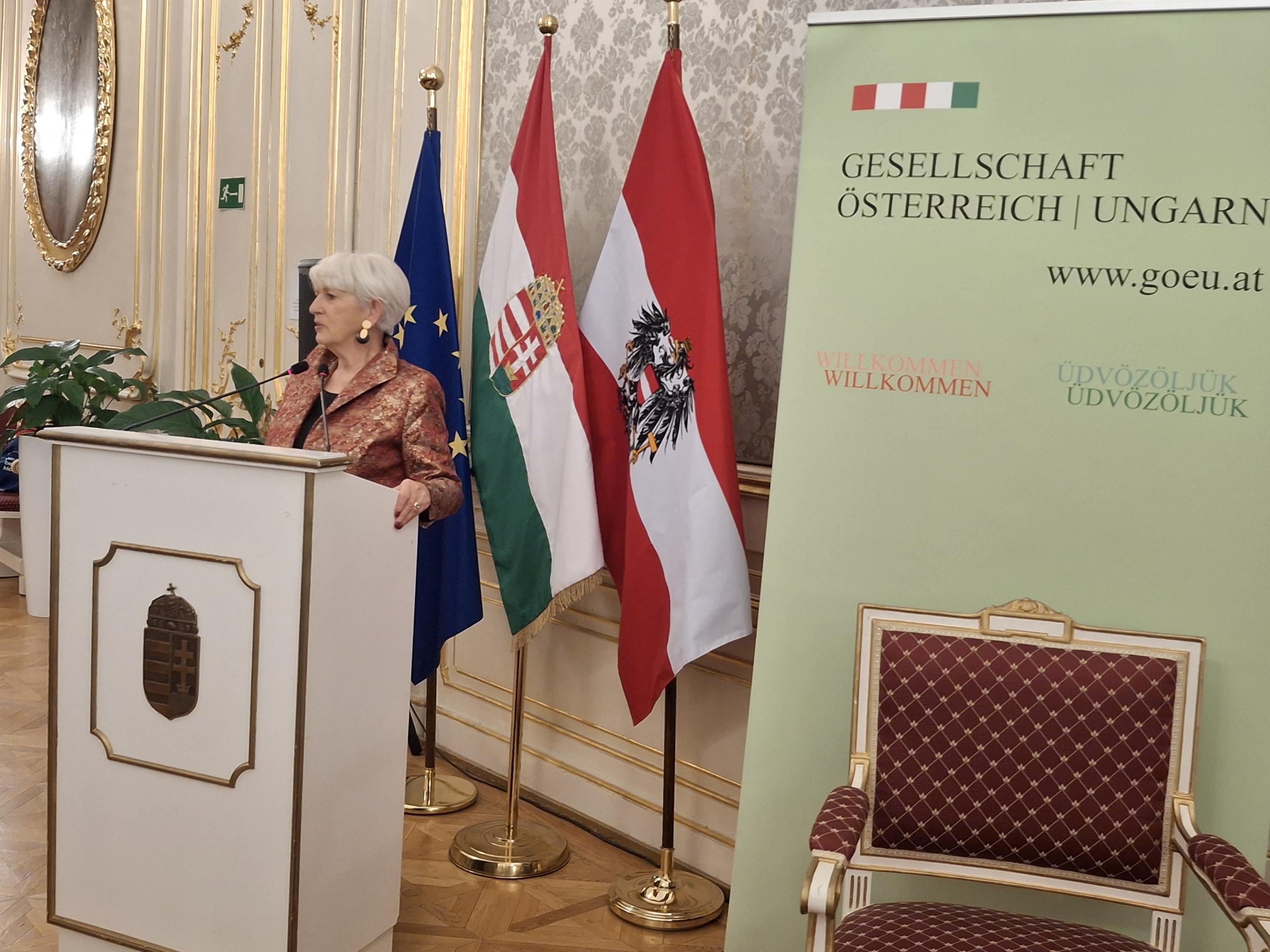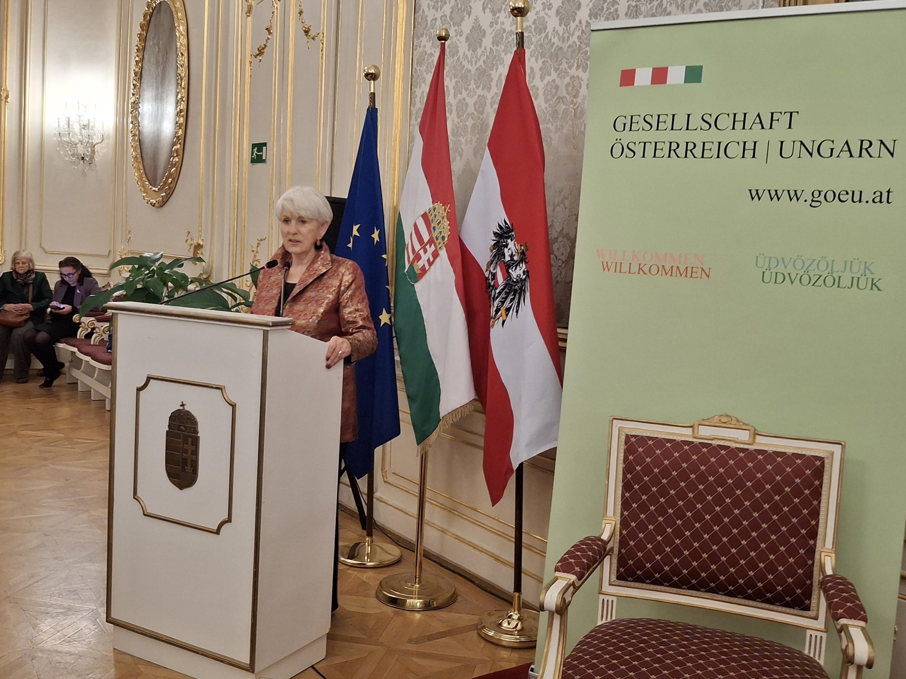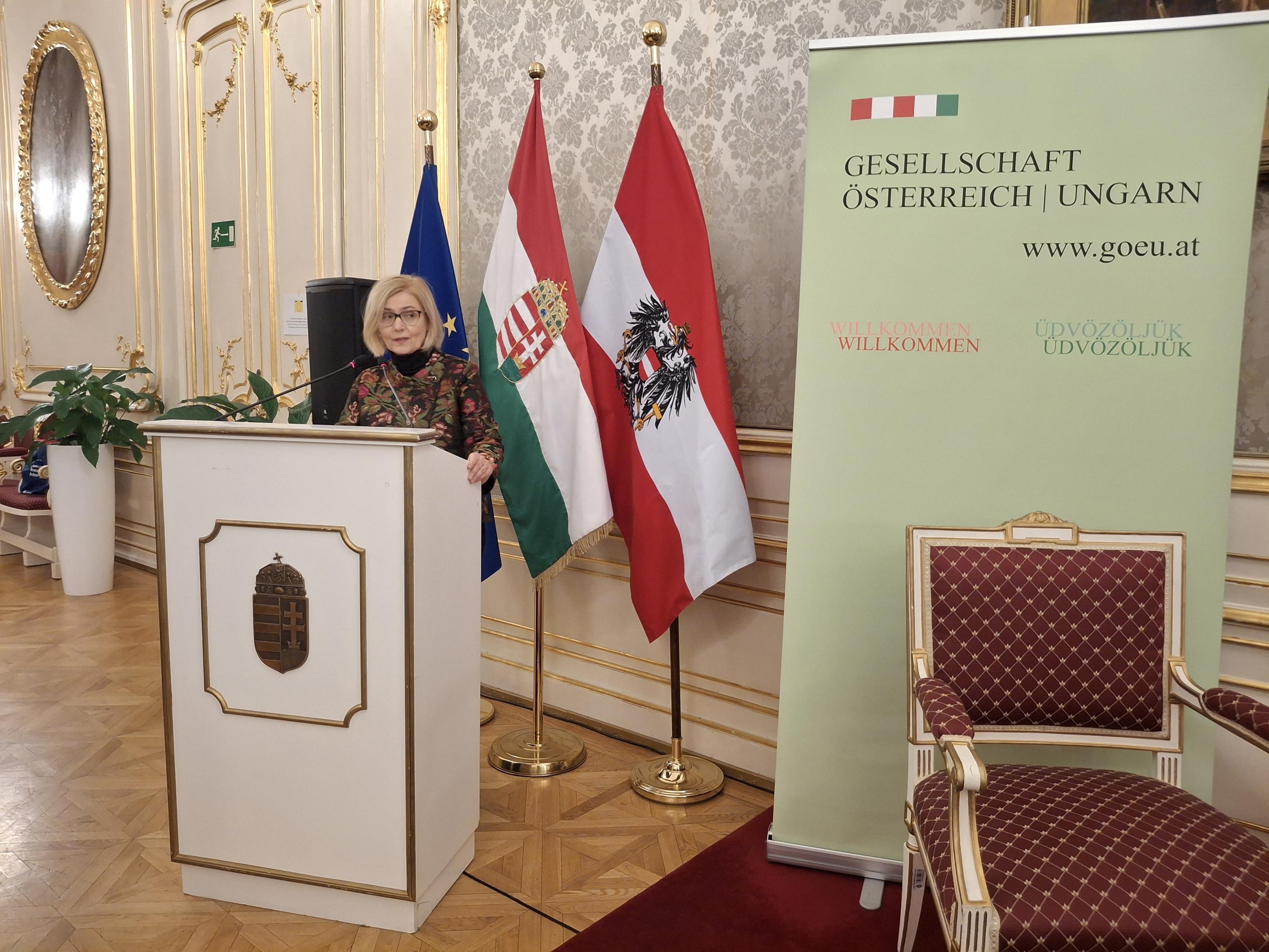 I.E. Edit Szilagyi Bátorfi, Botschafterin von Ungarn, hieß die Gäste willkommen und ließ in einer sehr interessanten Rede das vergangene Jahr und die EU-Präsidentschaft Ungarns Revue passieren.