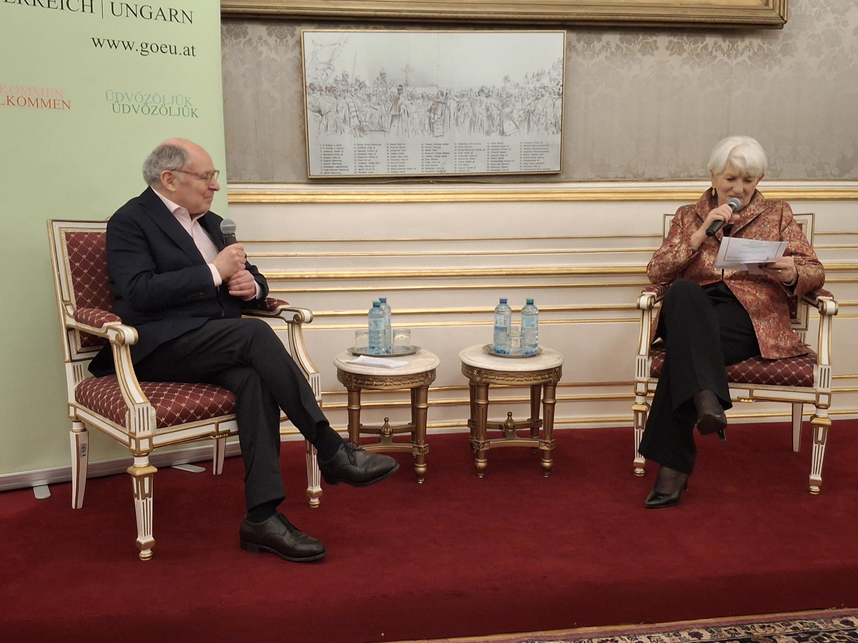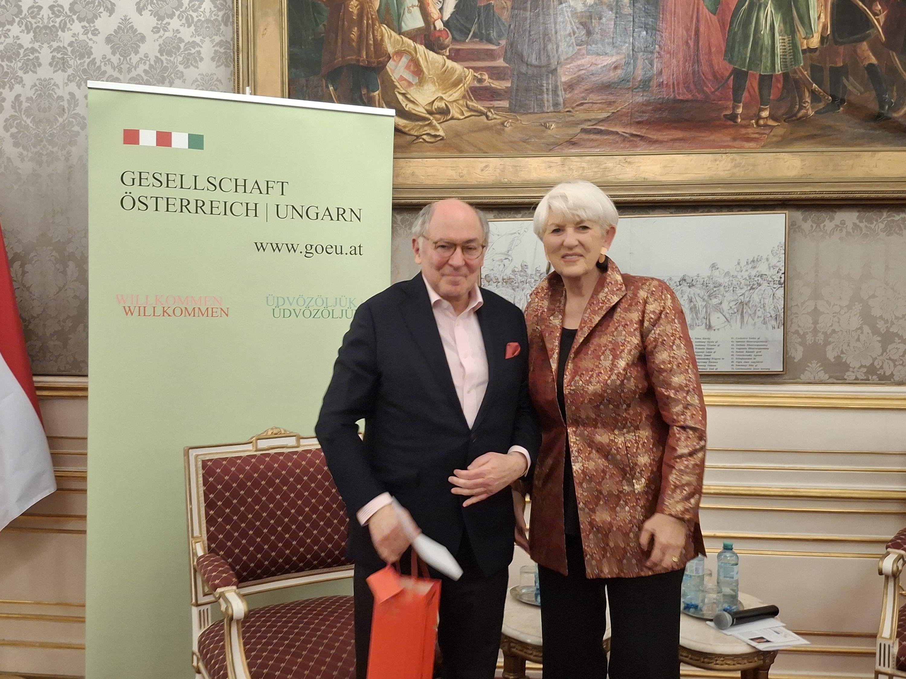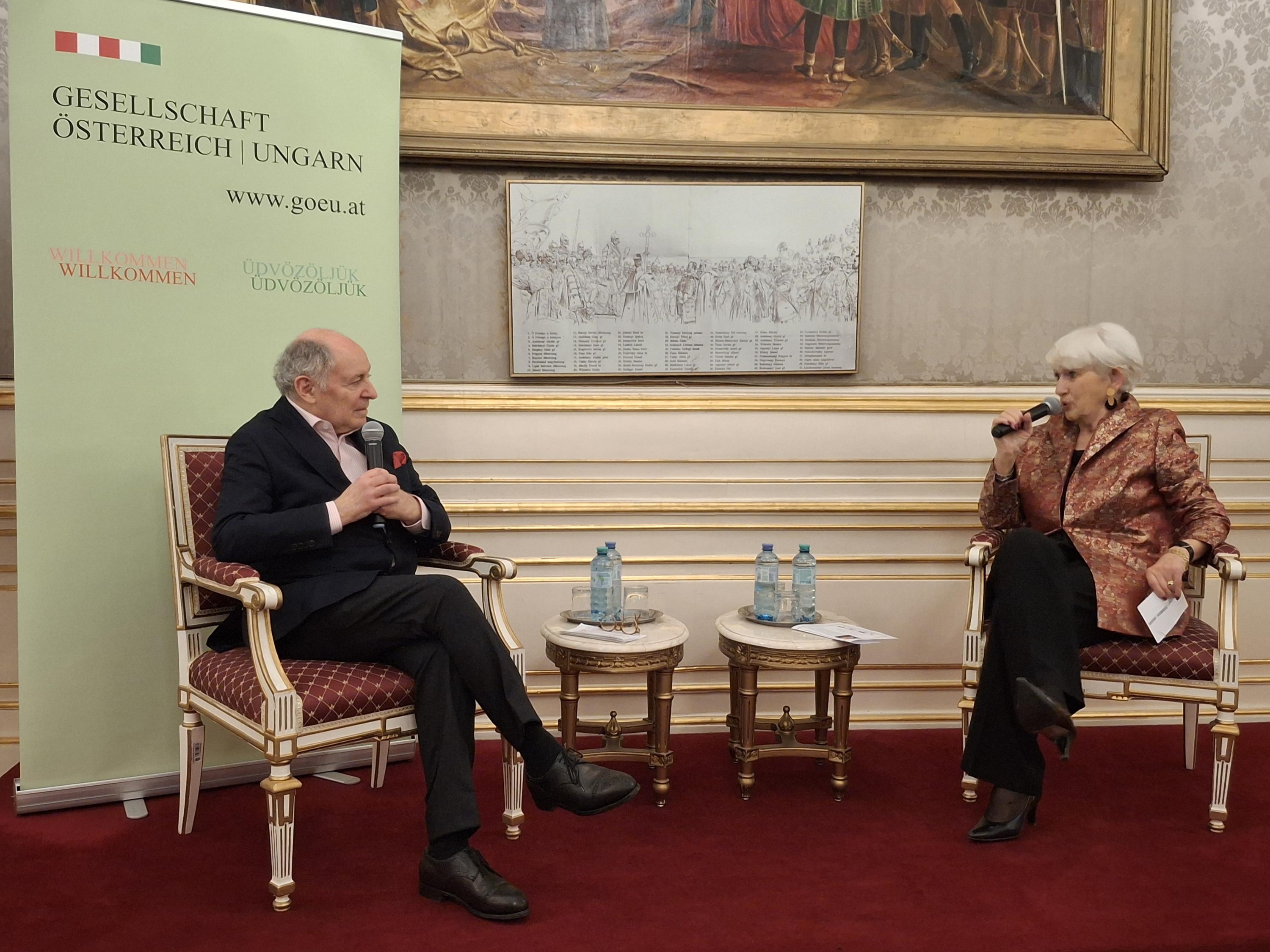 Nach einer kurzen Begrüßung und den obligatorischen Neujahrswünschen der Präsidentin BM a.D. Maria Rauch-Kallat moderierte sie das Gespräch mit Prof. Georg Markus. Dabei ging es vor allem um Österreichisch-ungarische Bezüge in seinen zahlreichen Büchern und Veröffentlichungen. Es sind oft seltsame Wege, wie Prof. Markus zu Informationen kommt, die er dann akribisch recherchiert.