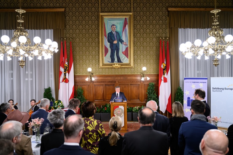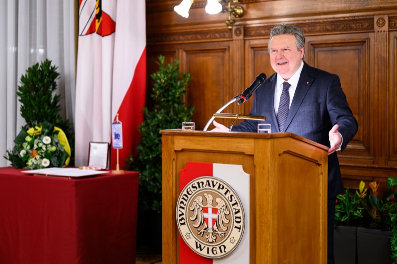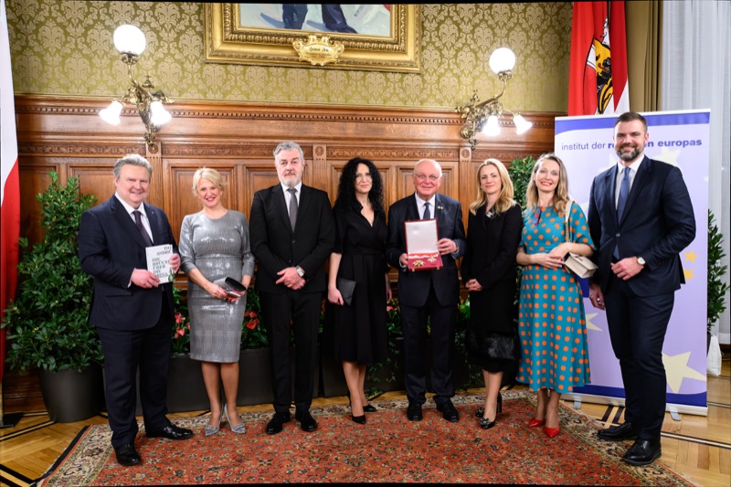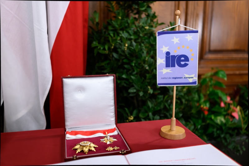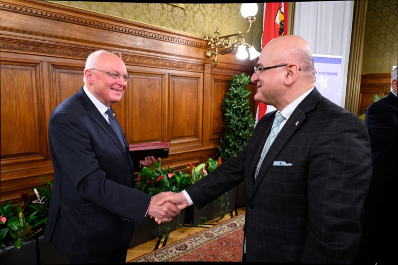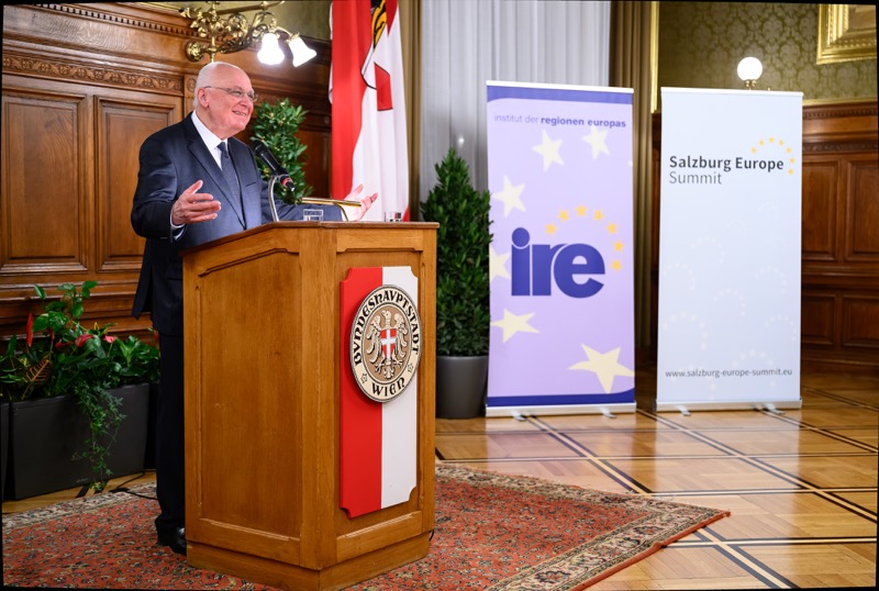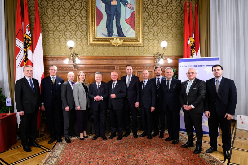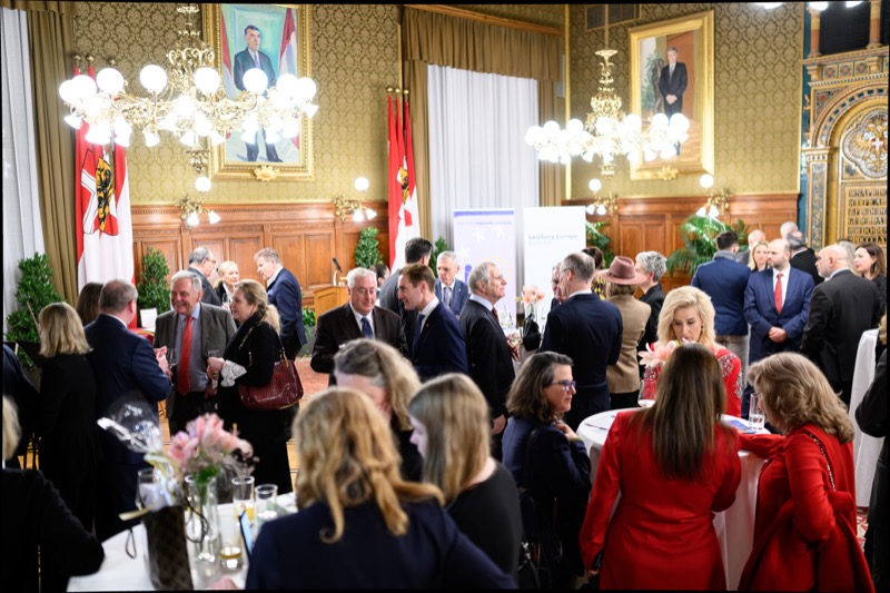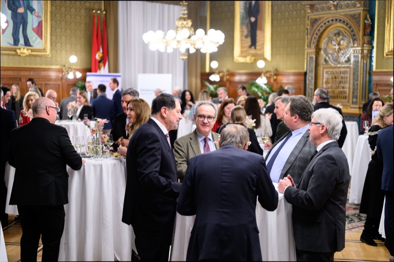 Der Gründer und Vorsitzende des IRE - Institut der Regionen Europas und ehemalig Landeshauptmann von Salzburg, Franz Schausberger, lud gemeinsam mit der Stadt Wien zu einem festlichen Empfang und Abendessen unter dem Ehrenschutz von Bürgermeister Michael Ludwig in den Stadtsenats-Sitzungssaal im Wiener Rathaus.