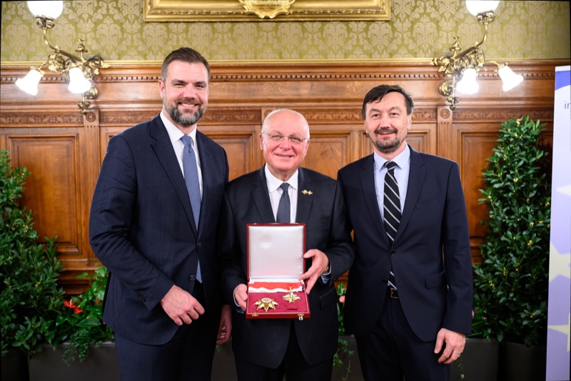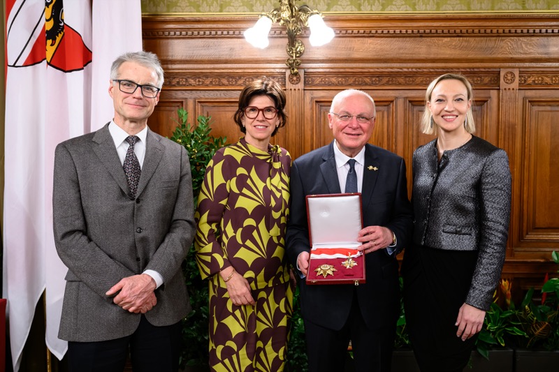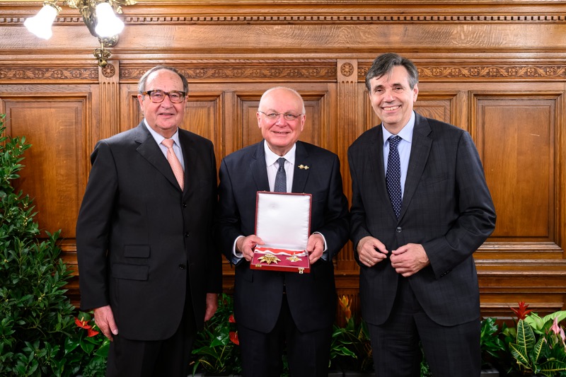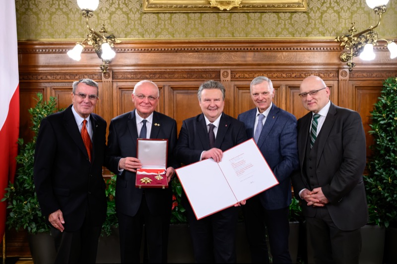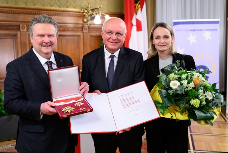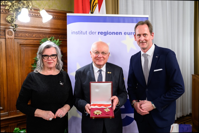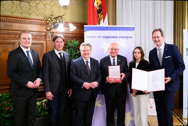 Im Rahmen dieses jährlichen Neujahrsempfangs des Instituts der Regionen Europas (IRE) im Wiener Rathaus, verlieh der Bürgermeister der Stadt Wien, Michael Ludwig, das Große Goldene Verdienstzeichen des Landes Wien mit dem Stern an Franz Schausberger.