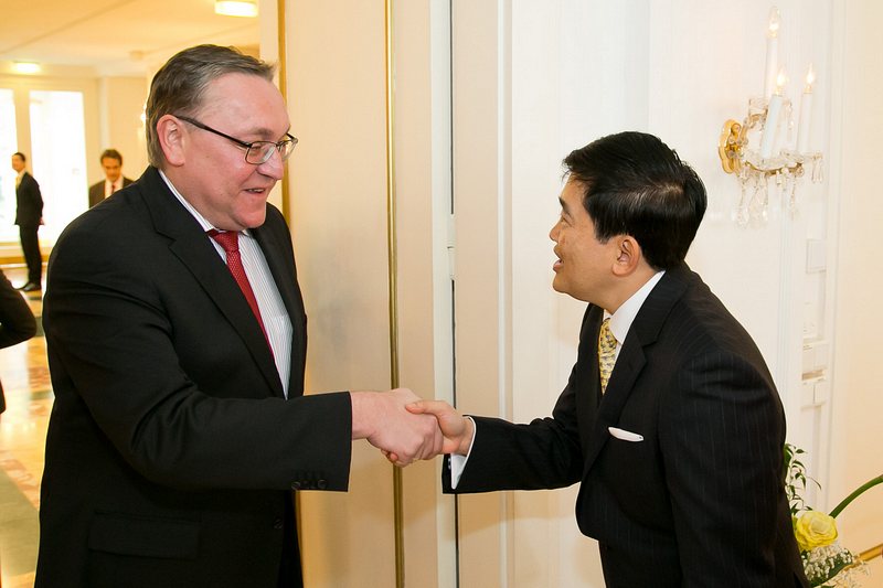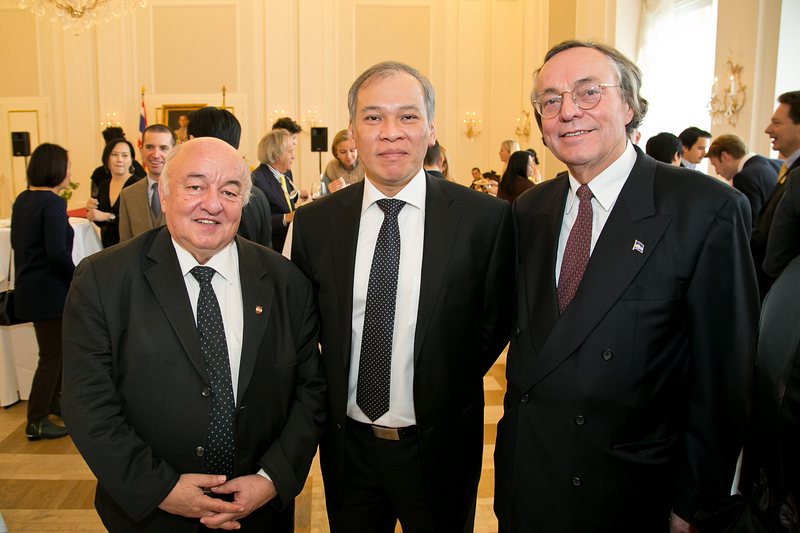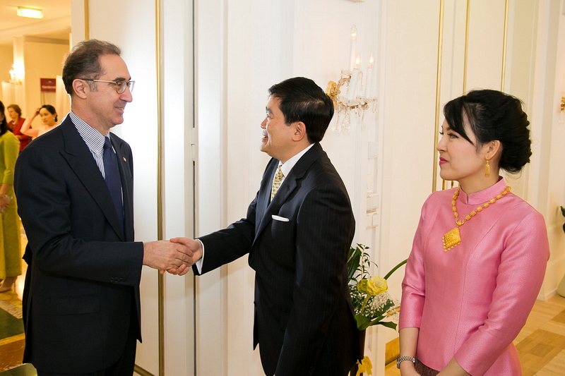 Anlässlich des 88. Geburtstages von Seiner Majestät König Bhumibol Adulyadej von Thailand, luden S.E. Arthayudh Srisamoot, Botschafter von Thailand in Österreich, und Kamoltip Srisamot zu einem Empfang in den Kursalon Wien.