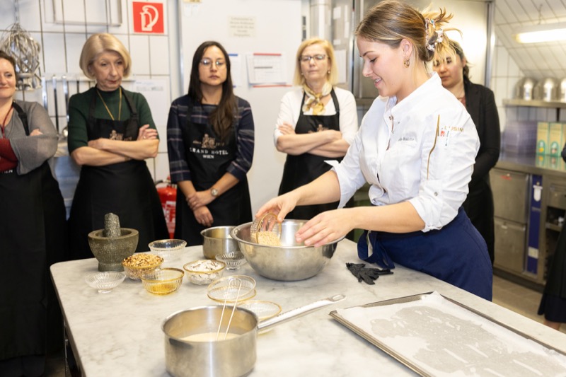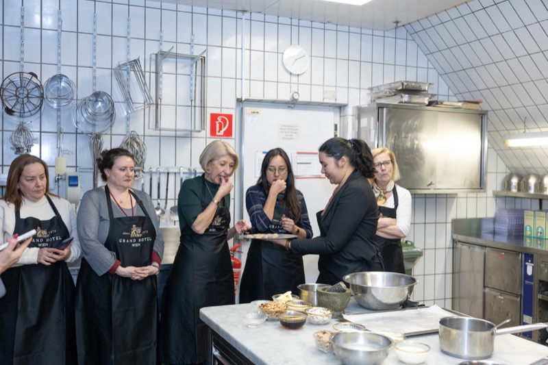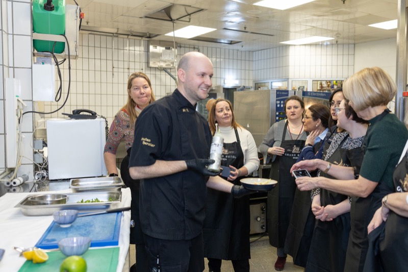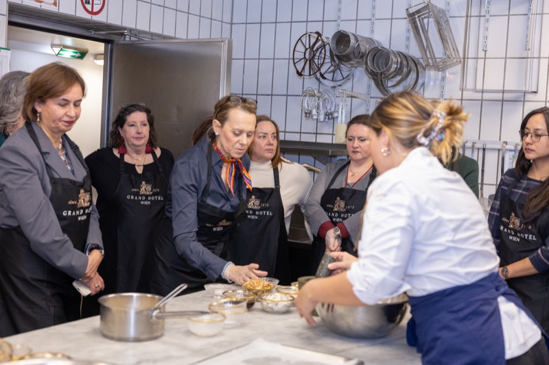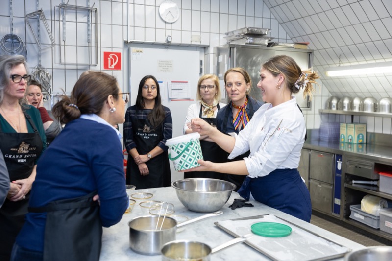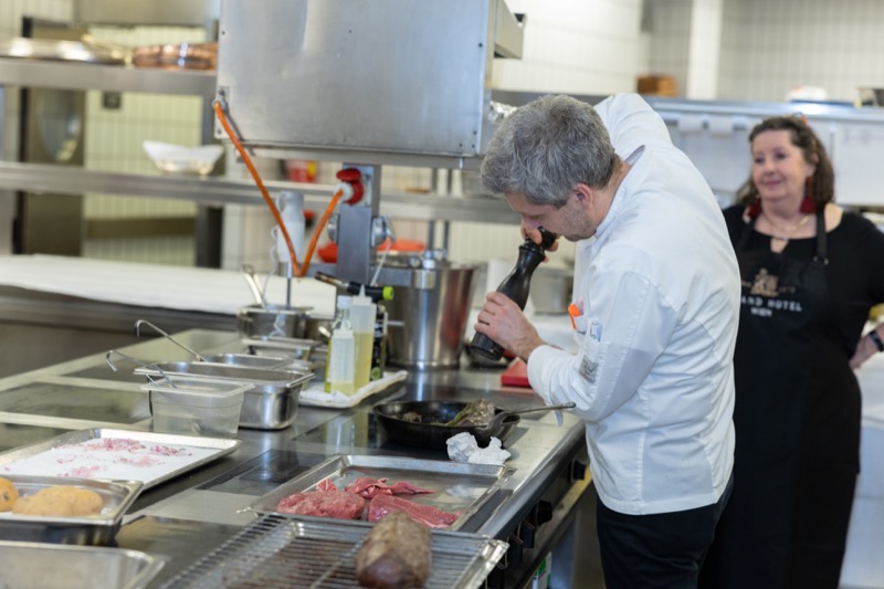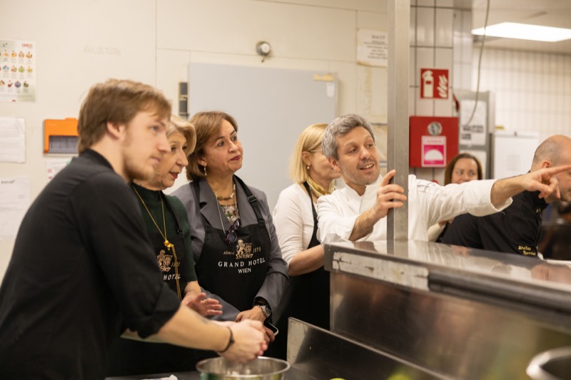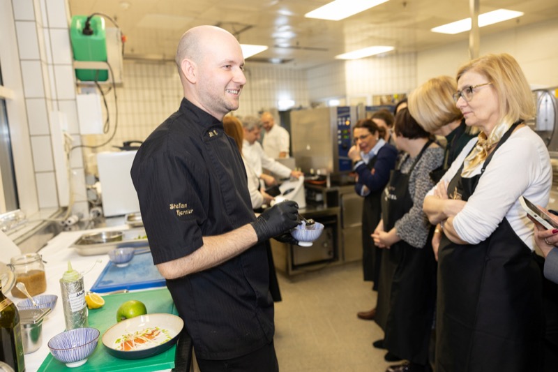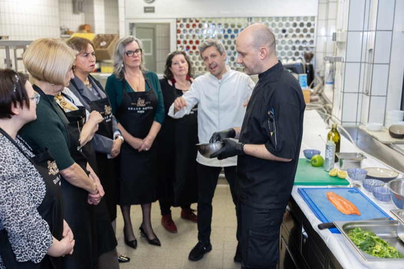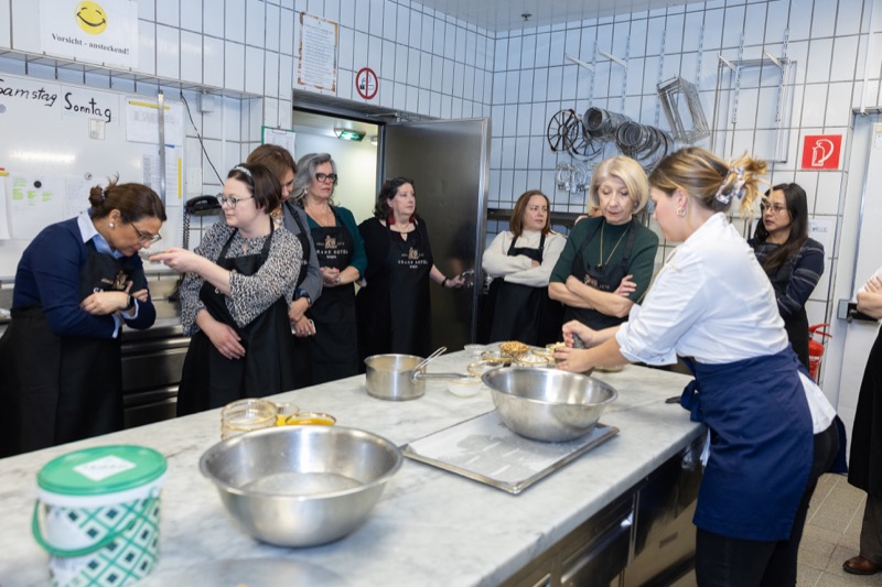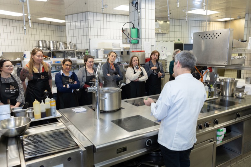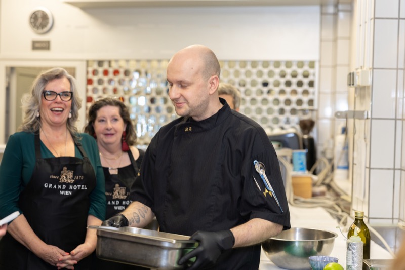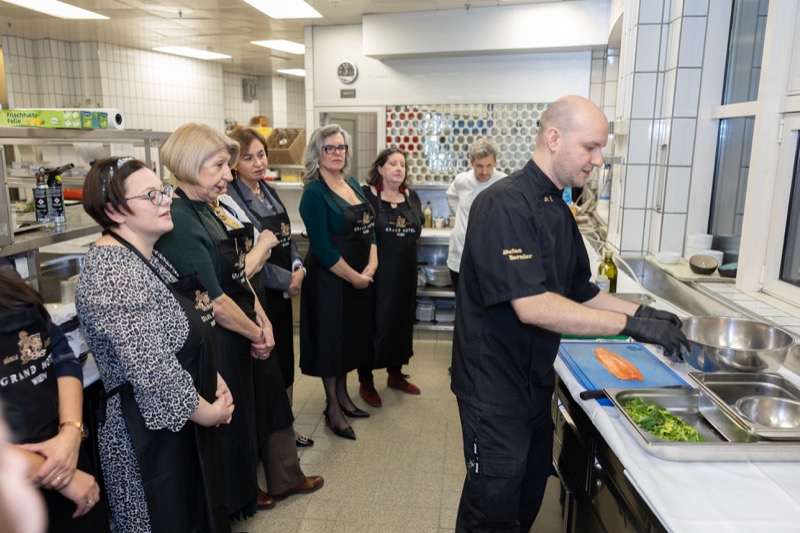 In einem kleinen und intimen Kreis konnten die Damen hinter die Kulissen schauen und wurden von dem preisgekrönten Chefkoch des Grand Hotels, Jürgen Lengauer, in die Geheimnisse eines Drei-Gänge-Valentinstagsmenüs eingeweiht, welches gemeinsam zubereitet und dann auch gemeinsam genossen wurde.